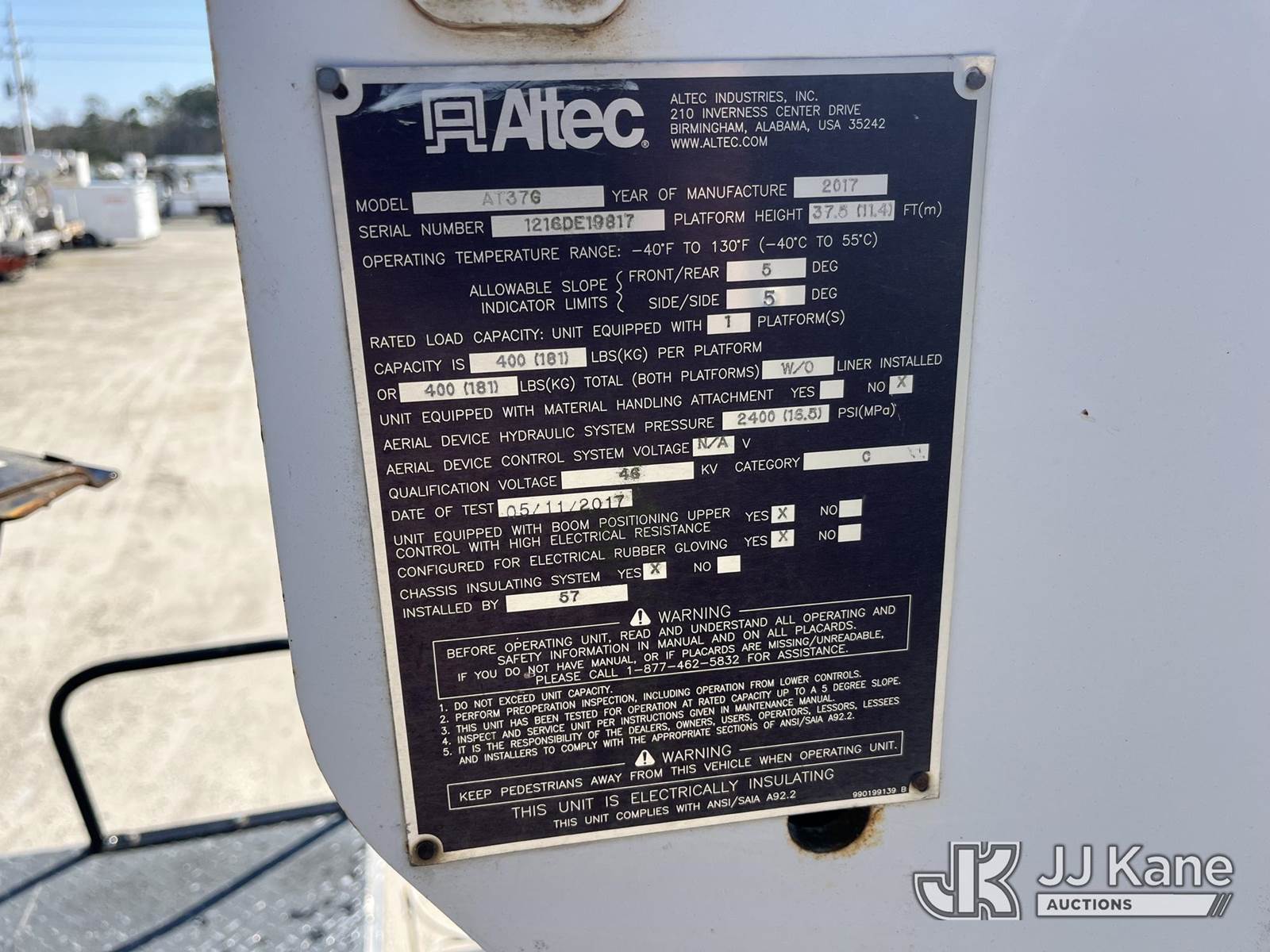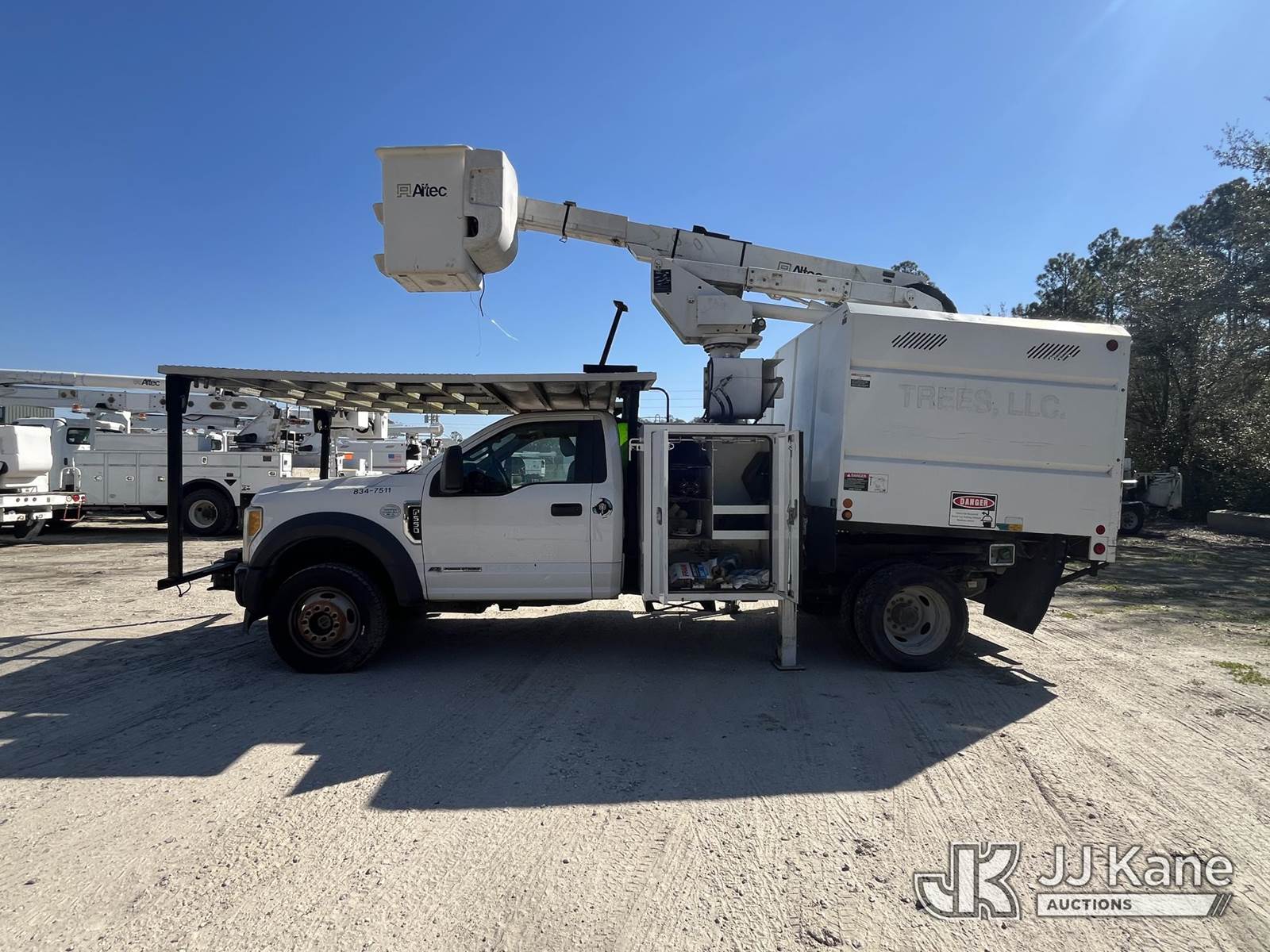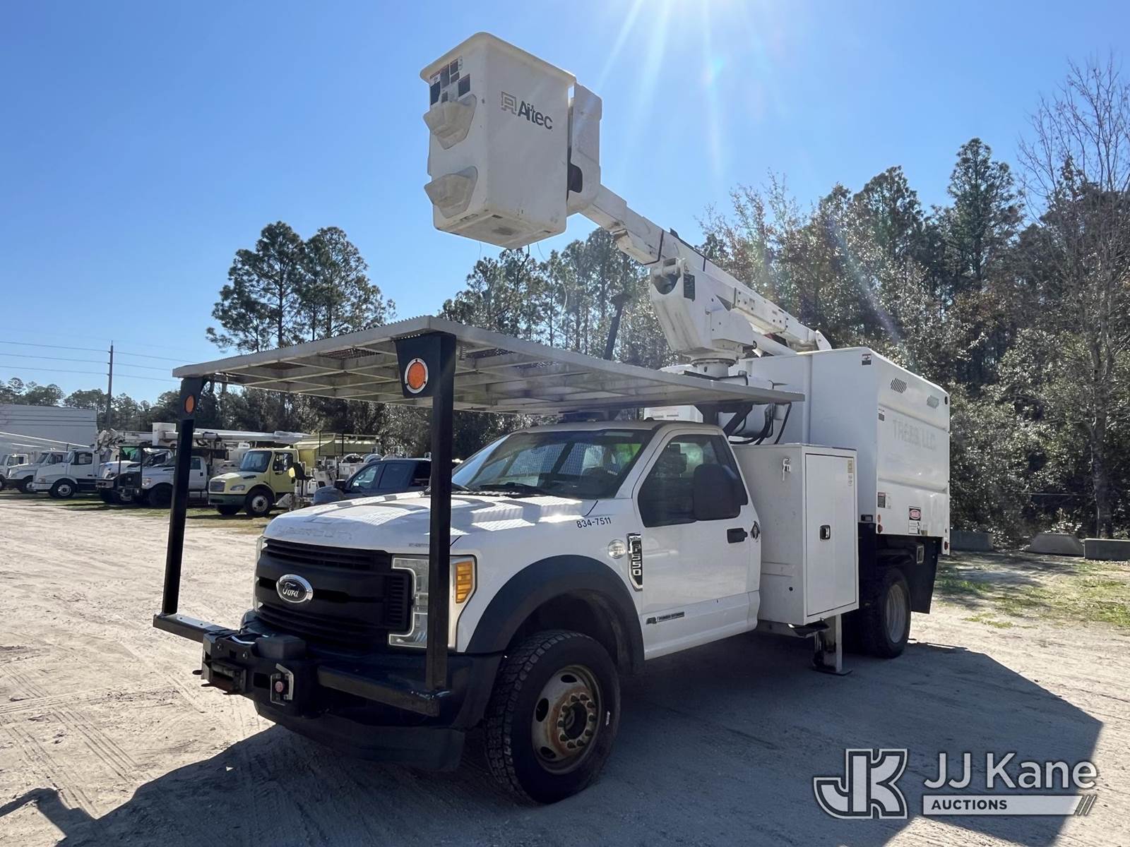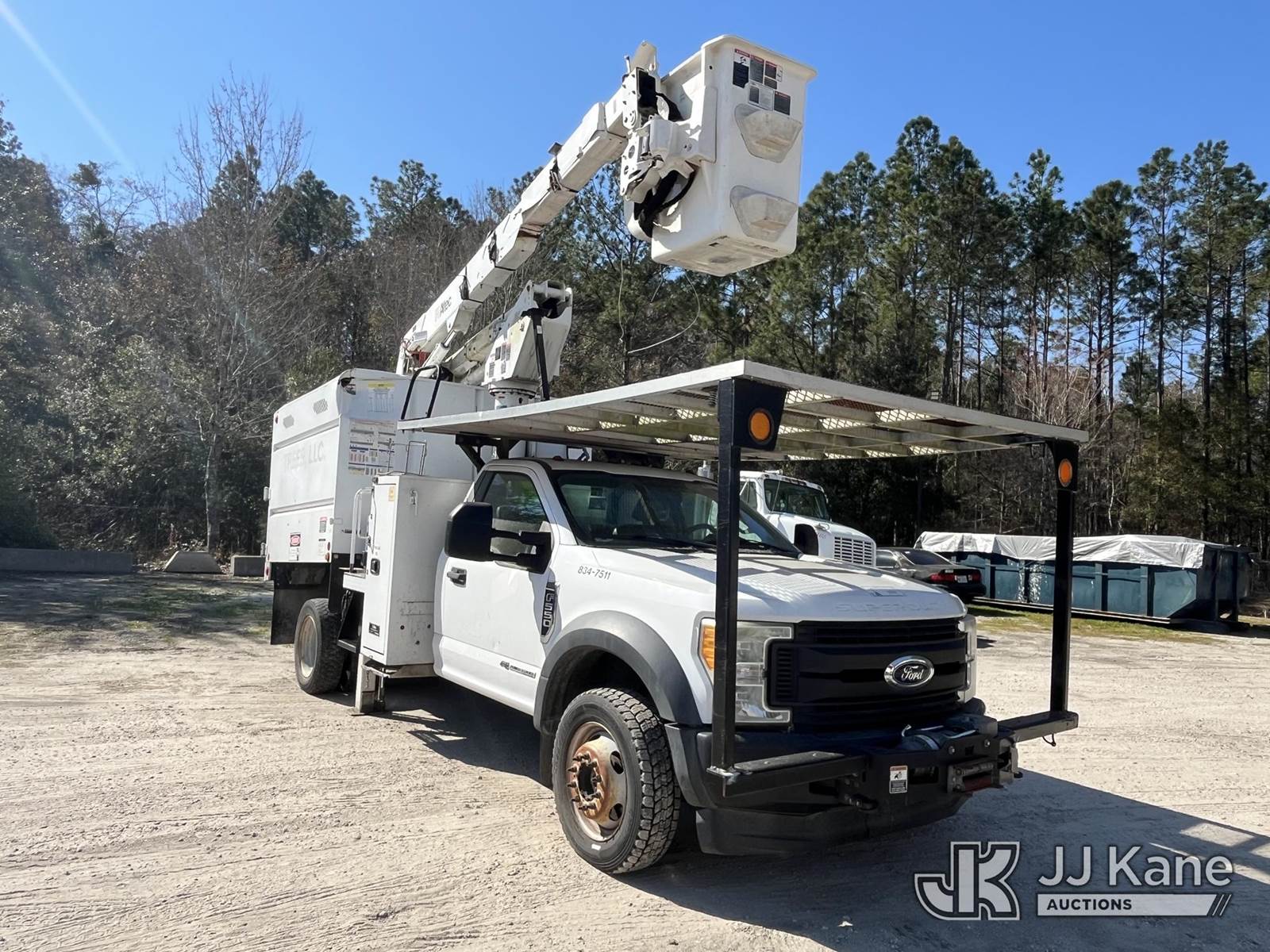 Altec AT37G, 42 ft, Articulating & Telescopic Bucket Truck s/n 1216DE19817, with single man bucket, mounted behind cab on 2017 Ford F-550 Chipper Dump Truck, 6.7L diesel, 4wd, Auto, A/C, with front winch, (119,045 miles) (Runs, Moves In 4Wheel Drive) ( Lower Boom Does Not Raise - Upper Boom Will Raise, Check Engine Light On, Body Damage) (Seller States: Transmission Needs Replaced) This is a Titled Item NOTE: This unit is being sold AS IS/WHERE IS via Timed Auction and is located in Jacksonville, FL. Inspection & preview days for this unit are by appointment only; please contact us at contact@jjkane.com or 84-Go-JJKane for more details. For more information & removal arrangements please contact James Hobson @ (904) 634-7433. (Missing manuals, See Auction Company for Manufacturers Information to obtain manuals) (Buyer is responsible for removal. Assistance by consignor or JJ Kane Auctions is not assured.)