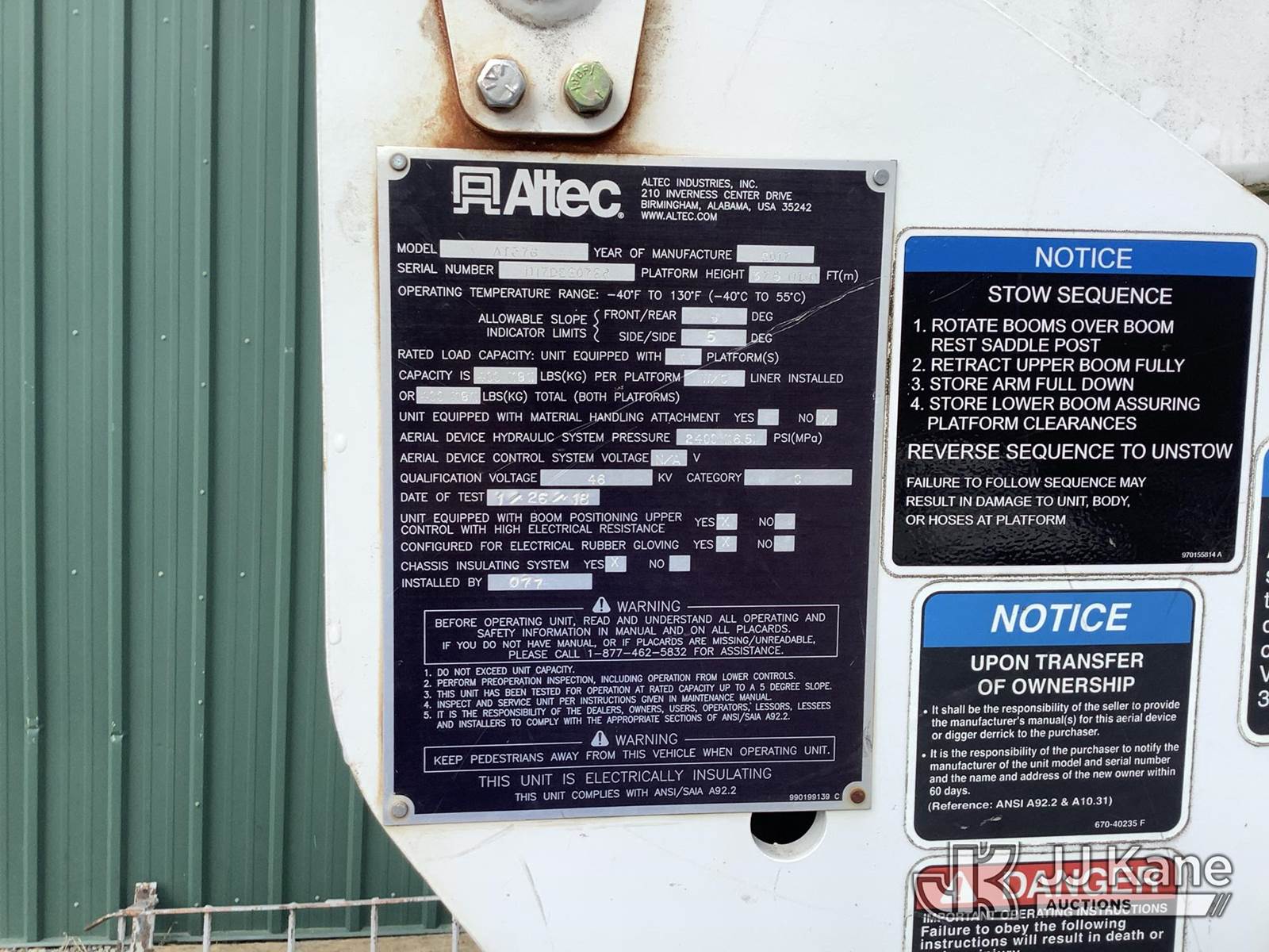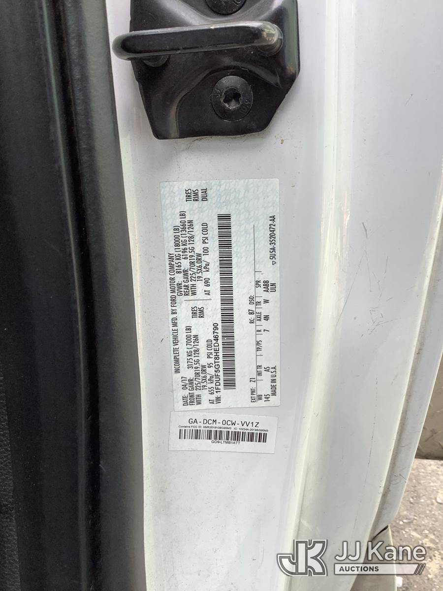 Altec AT37G, 42 ft, Articulating & Telescopic Bucket Truck s/n 1117DE20728, with single-man bucket, mounted behind cab on 2017 Ford F550 Service Truck, 6.7L V8 Diesel, Auto, A/C, (105,445 miles) (Runs, Moves & Operates, Check Engine Light On) (Removal is by Appointment Only, Buyer MUST make a appointment prior to picking up, Buyer/Transporter Must have PAID IN FULL RELEASE. No onsite assistance available, Please Come prepared.) This is a Titled Item NOTE: This unit is being sold AS IS/WHERE IS via Timed Auction and is located in Harmans, MD. Inspection & preview days for this unit are by appointment only; please contact us at contact@jjkane.com or 84-Go-JJKane for more details. For pre-sale questions, please contact the on-site office @ (443) 557-0025 or Kevin.Waggoner@JJKane.com. (Missing manuals, See Auction Company for Manufacturers Information to obtain manuals) (Buyer is responsible for removal. Assistance by consignor or JJ Kane Auctions is not assured.)