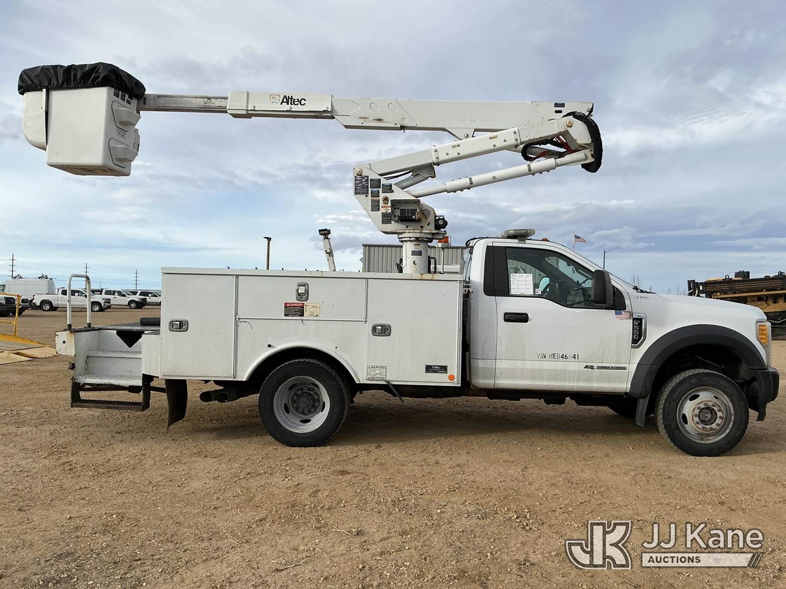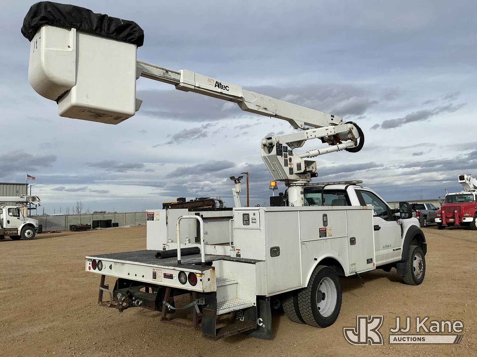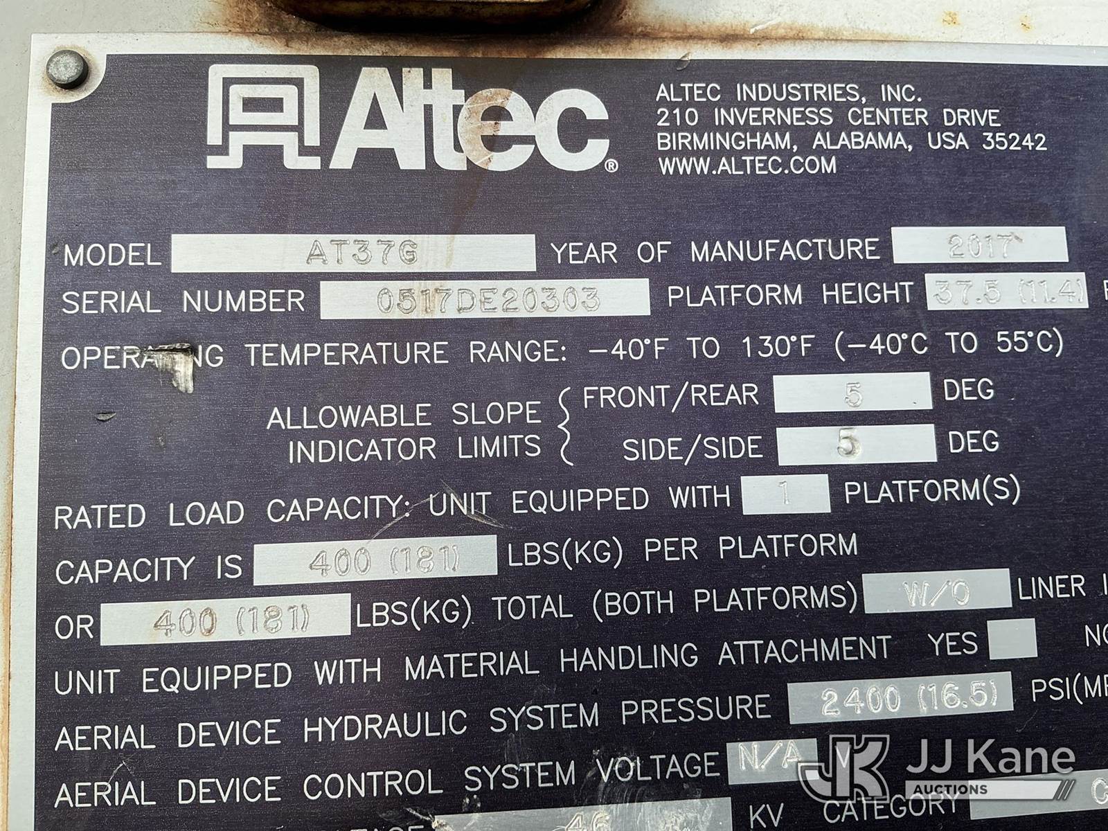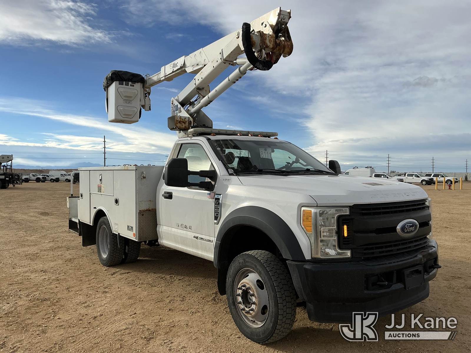Altec AT37G, 42 ft, Articulating & Telescopic Bucket Truck s/n 0517DE20303, with Single Man Bucket, mounted behind cab on 2017 Ford F-550 Service Truck, 6.7L Diesel 4wd, A/C, with Ultimate Power Inverter & Charger, (95,410 miles) (Runs, Moves & Upper Operates) (No Emissions Provided See Bidder Agreement) The manufacturer has notified JJ Kane that this equipment is subject to an open recall. CSN 855 Fuel Line and Brake Line Inspection The equipment should not be operated until this is addressed. Buyer is responsible for reviewing the recall notice and contacting the manufacturer to schedule the recommended corrective actions. Associated costs may be covered by the manufacturer in some cases.) (Reads 9,377 hours) This is a Titled Item NOTE: This unit is being sold AS IS/WHERE IS via Timed Auction and is located in Fort Lupton, CO. Inspection & preview days for this unit are the 2 business days prior to the first day of items closing for this auction, item is located at 2105 Northland Dr Fort Lupton, CO 80621 and hours of operations are 8a-4p. For pre-sale questions, please contact Dakota Hoffman @ (720) 621-0786. Dealer License Number 47109. (Missing manuals, See Auction Company for Manufacturers Information to obtain manuals) (Buyer is responsible for removal. Assistance by consignor or JJ Kane Auctions is not assured.)