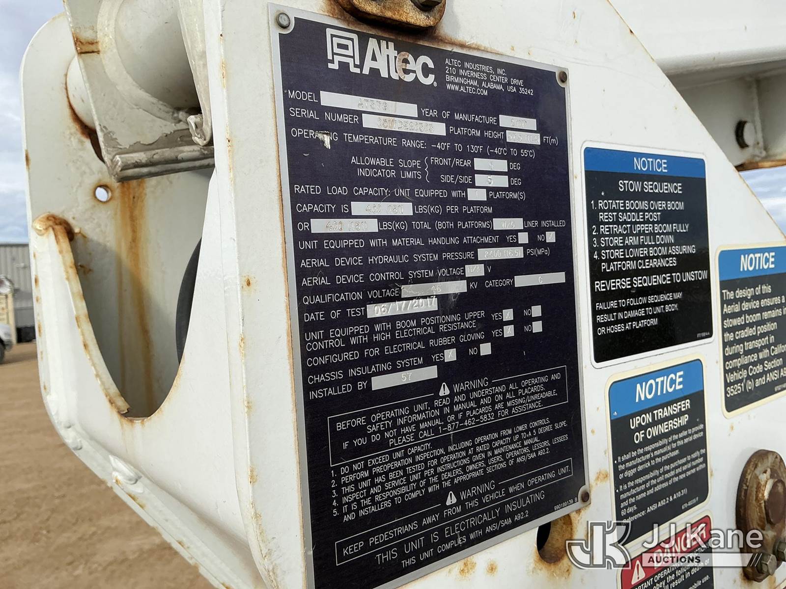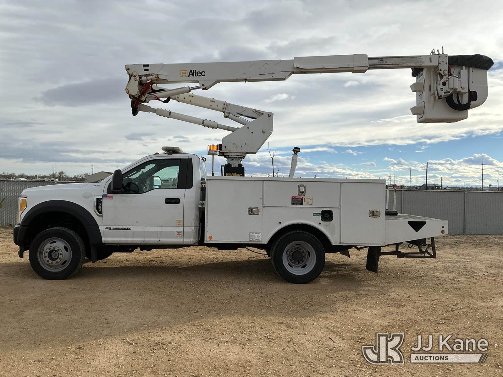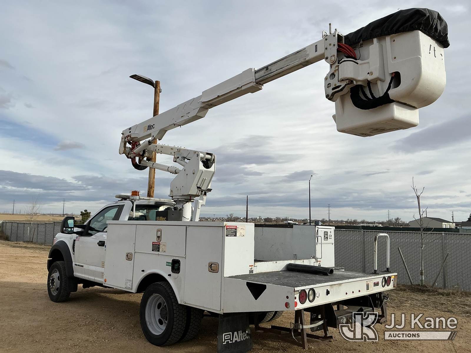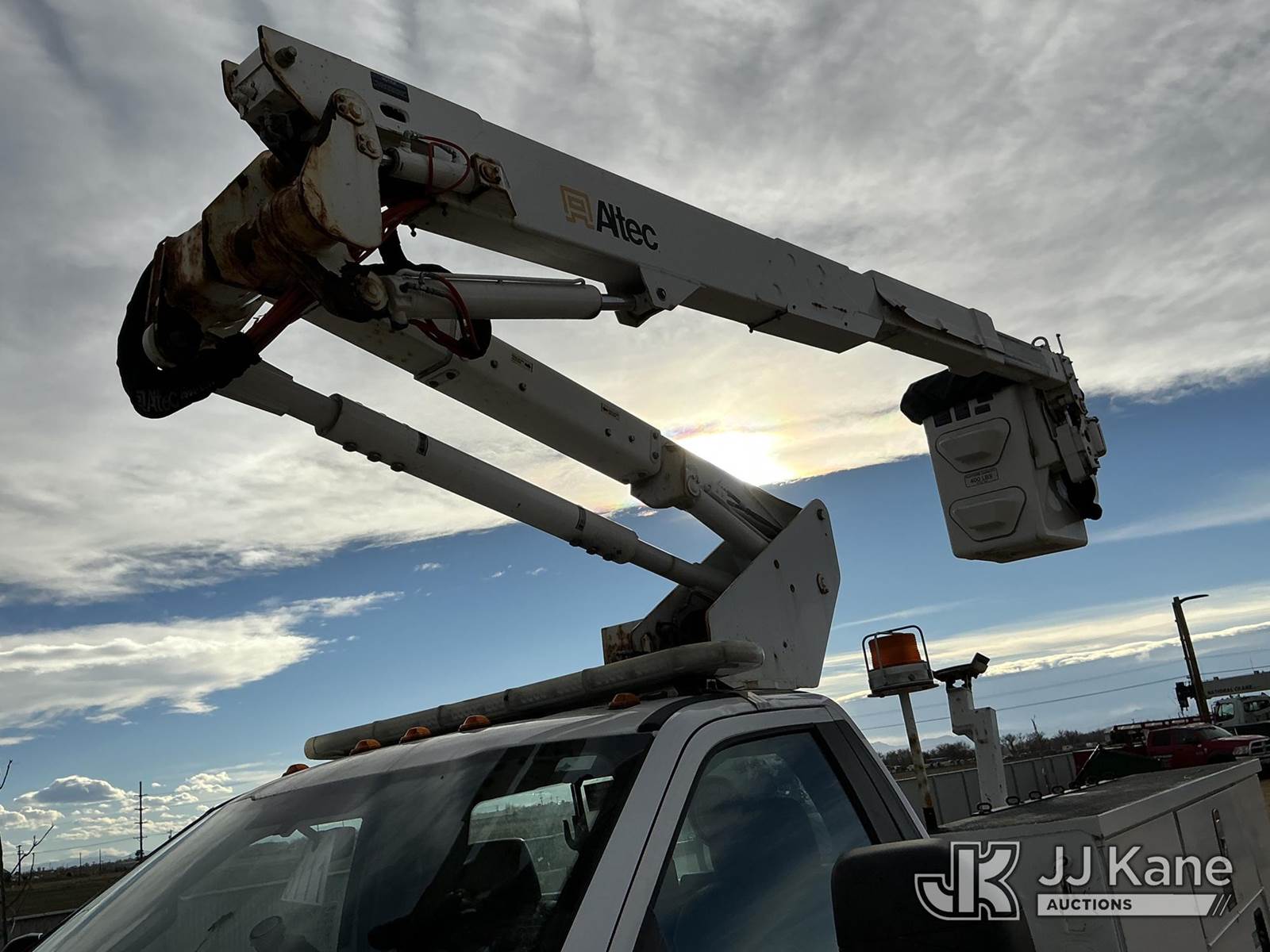 Altec AT37G, 42 ft, Articulating & Telescopic Bucket Truck s/n 0517DE20303, with Single Man Bucket, mounted behind cab on 2017 Ford F-550 Service Truck, 6.7L Diesel 4wd, A/C, with Ultimate Power Inverter & Charger, (95,410 miles) (Runs, Moves & Upper Operates) (No Emissions Provided See Bidder Agreement) The manufacturer has notified JJ Kane that this equipment is subject to an open recall. CSN 855 Fuel Line and Brake Line Inspection The equipment should not be operated until this is addressed. Buyer is responsible for reviewing the recall notice and contacting the manufacturer to schedule the recommended corrective actions. Associated costs may be covered by the manufacturer in some cases.) (Reads 9,377 hours) This is a Titled Item NOTE: This unit is being sold AS IS/WHERE IS via Timed Auction and is located in Fort Lupton, CO. Inspection & preview days for this unit are the 2 business days prior to the first day of items closing for this auction, item is located at 2105 Northland Dr Fort Lupton, CO 80621 and hours of operations are 8a-4p. For pre-sale questions, please contact Dakota Hoffman @ (720) 621-0786. Dealer License Number 47109. (Missing manuals, See Auction Company for Manufacturers Information to obtain manuals) (Buyer is responsible for removal. Assistance by consignor or JJ Kane Auctions is not assured.)