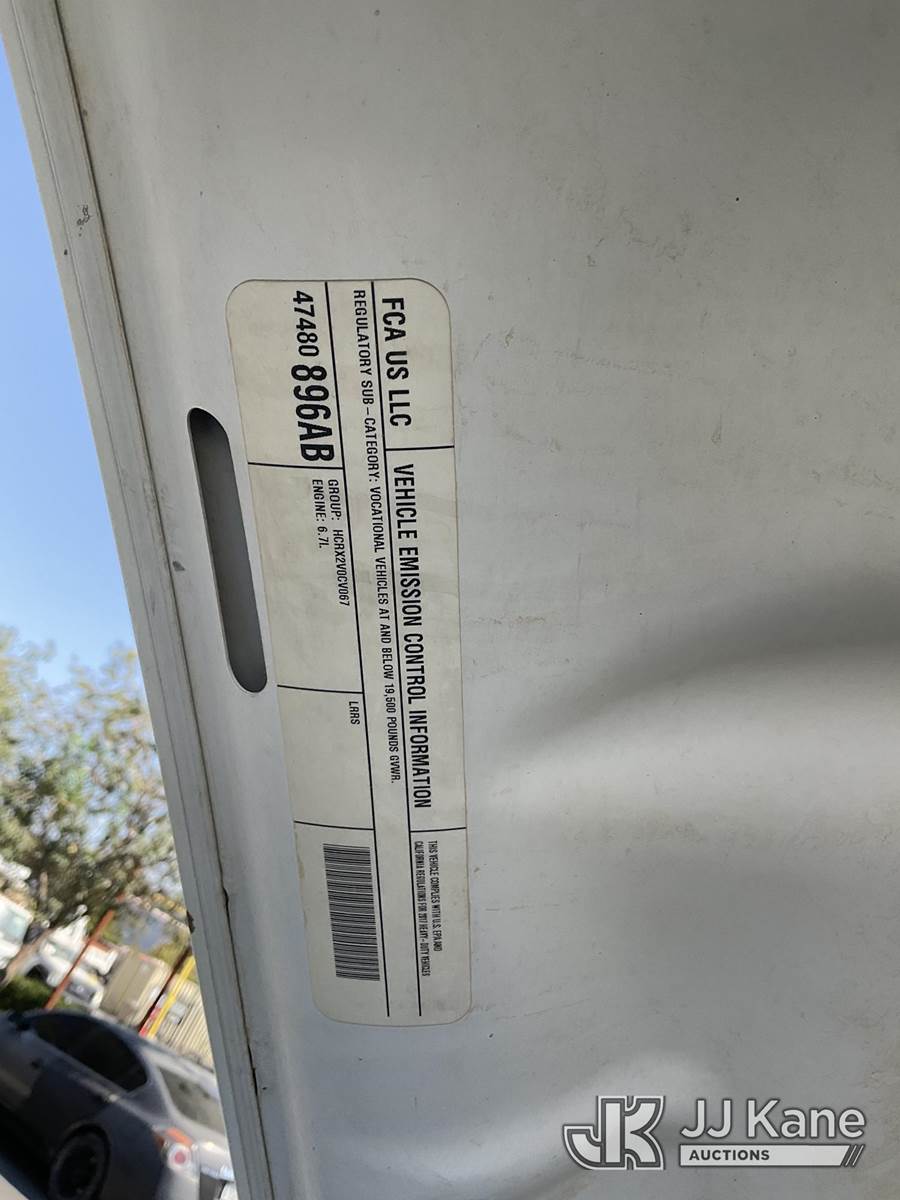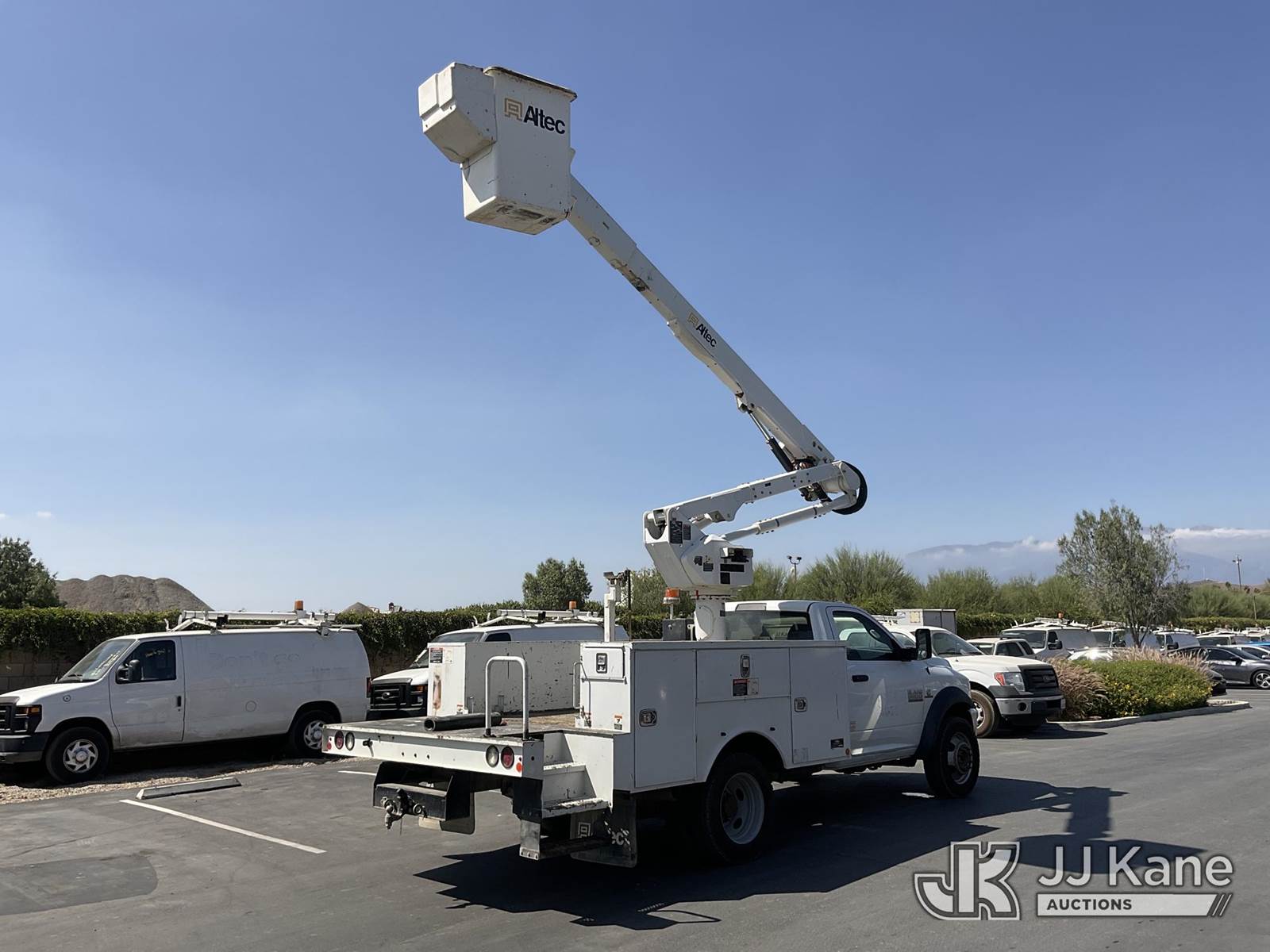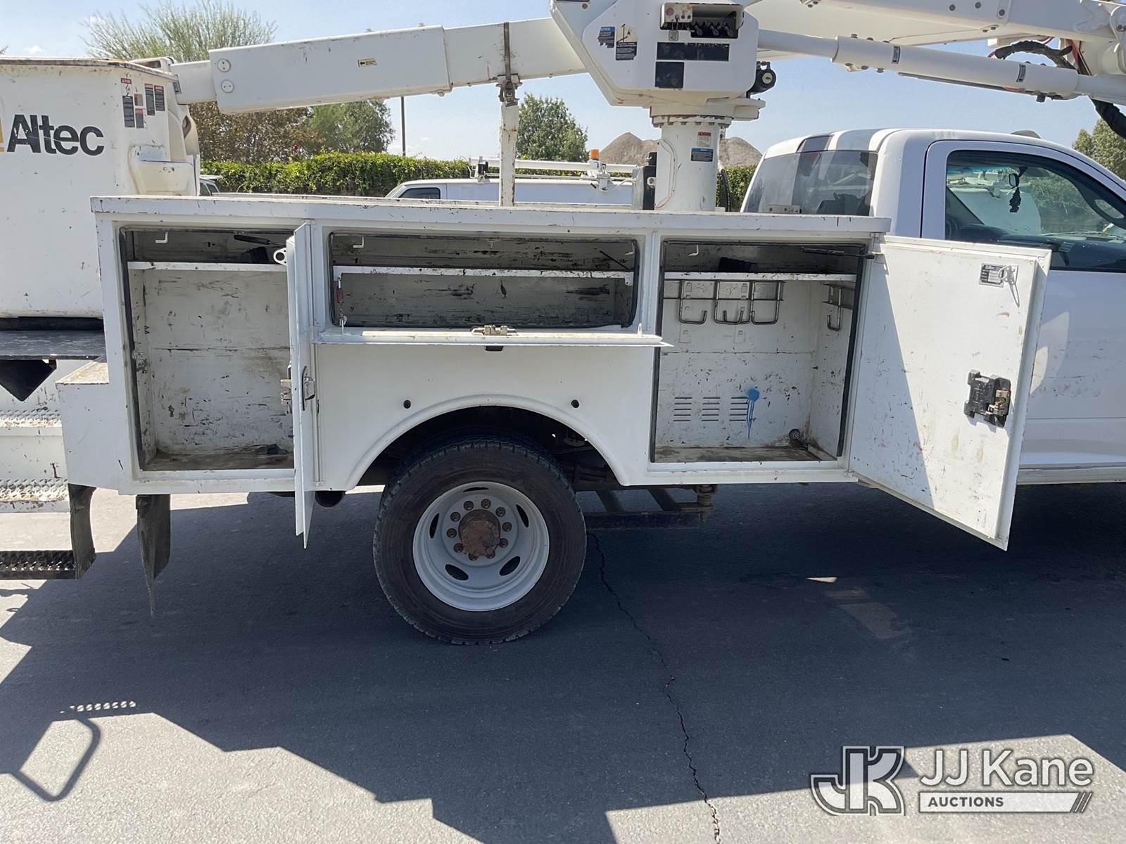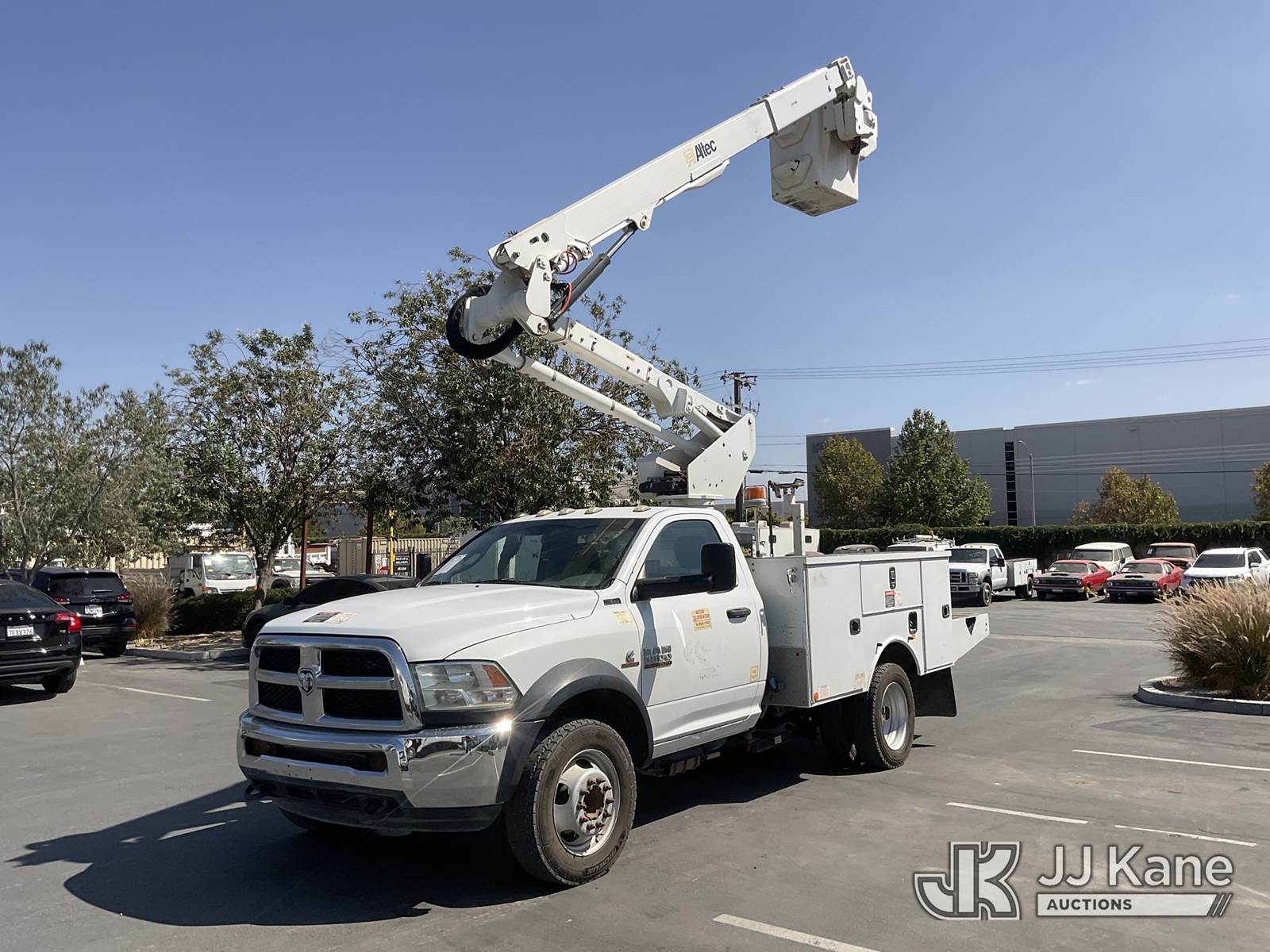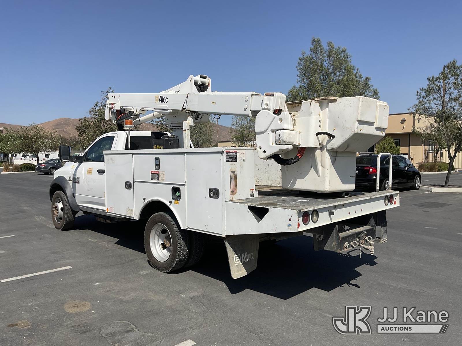 Altec AT40G, 45 ft, Articulating & Telescopic Bucket s/n 0317EY2457, with single man bucket, mounted behind cab on 2017 RAM 5500 Regular Cab SWB 2WD DRW Service Truck, 6.7L L6 OHV 24V TURBO DIESEL Auto, A/C, with tow package, (156,721 miles) (Runs & Moves, Upper Operates) (Steering Bushings Need To Be Replaced) (Bidding Restricted to Licensed Vehicle Dealers Only), May be subject to ARB Regulations This is a Titled Item NOTE: This unit is being sold AS IS/WHERE IS via Timed Auction and is located in Jurupa Valley, CA. Inspection & preview days for this unit are the 2 business days prior to the first day of items closing for this auction, item is located at 4510 Muth Way Jurupa Valley, CA 92509 and hours of operations are 8a-4p. For pre-sale questions, please contact please contact Office Staff @ (310) 353-7140. Dealer License Number 45696. (Manuals provided in cab) (Buyer is responsible for removal. Assistance by consignor or JJ Kane Auctioneers is not assured.)