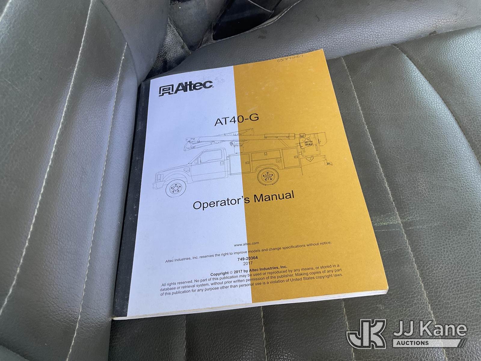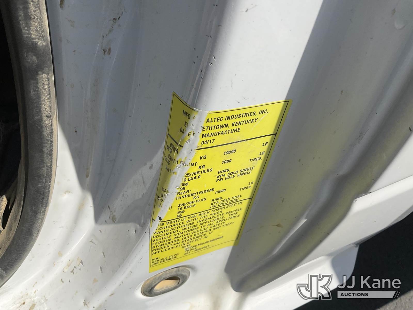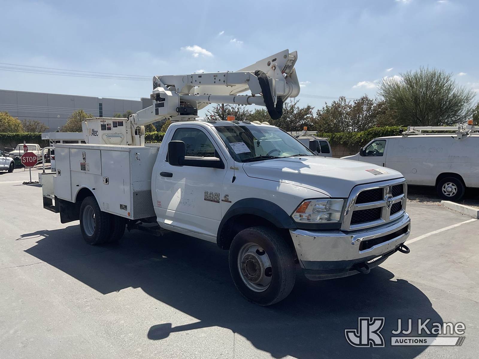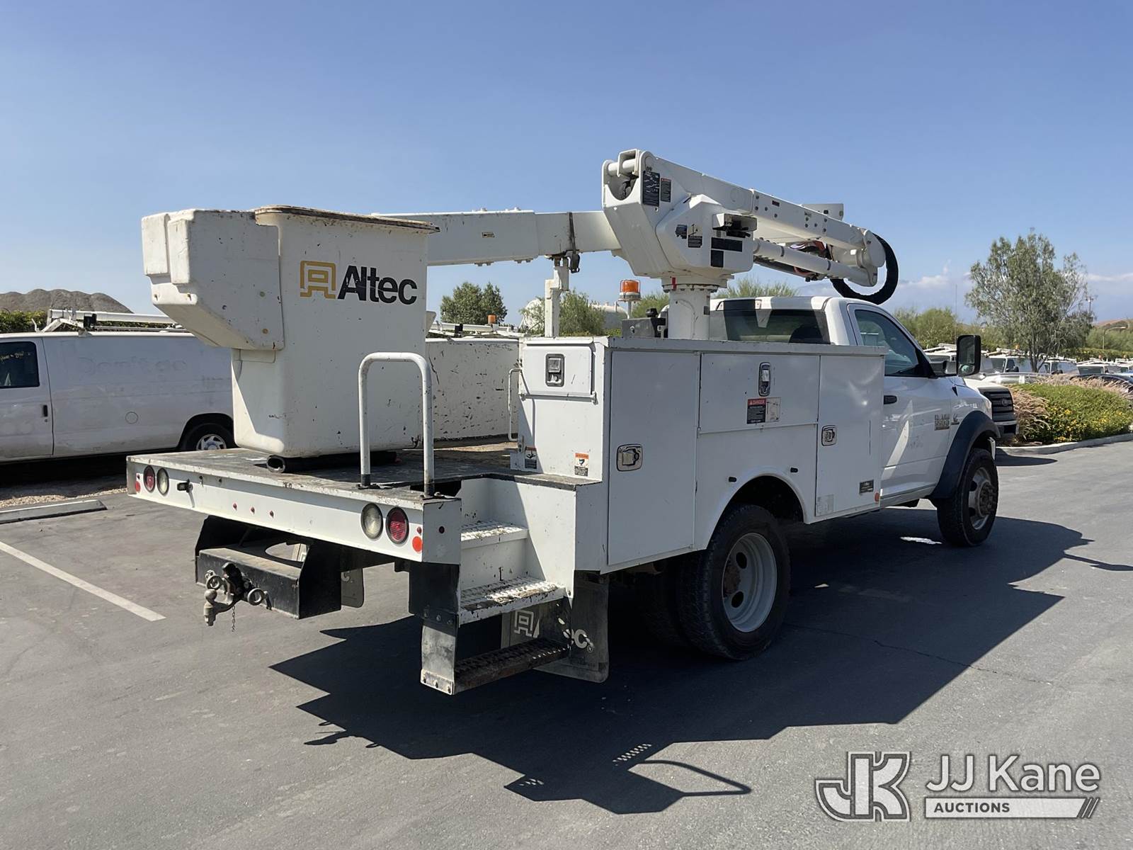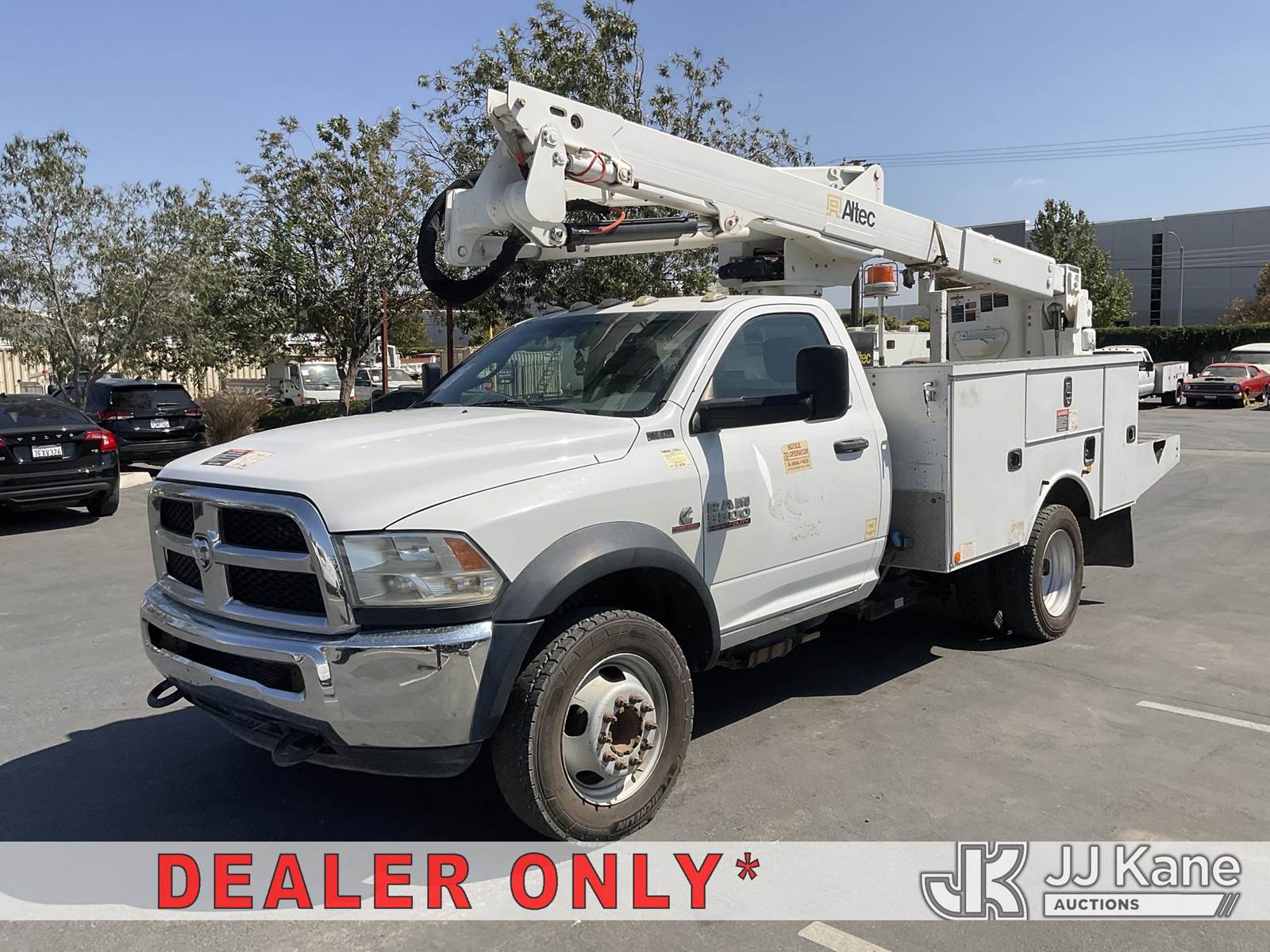 Altec AT40G, 45 ft, Articulating & Telescopic Bucket s/n 0317EY2457, with single man bucket, mounted behind cab on 2017 RAM 5500 Regular Cab SWB 2WD DRW Service Truck, 6.7L L6 OHV 24V TURBO DIESEL Auto, A/C, with tow package, (156,721 miles) (Runs & Moves, Upper Operates) (Steering Bushings Need To Be Replaced) (Bidding Restricted to Licensed Vehicle Dealers Only), May be subject to ARB Regulations This is a Titled Item NOTE: This unit is being sold AS IS/WHERE IS via Timed Auction and is located in Jurupa Valley, CA. Inspection & preview days for this unit are the 2 business days prior to the first day of items closing for this auction, item is located at 4510 Muth Way Jurupa Valley, CA 92509 and hours of operations are 8a-4p. For pre-sale questions, please contact please contact Office Staff @ (310) 353-7140. Dealer License Number 45696. (Manuals provided in cab) (Buyer is responsible for removal. Assistance by consignor or JJ Kane Auctioneers is not assured.)