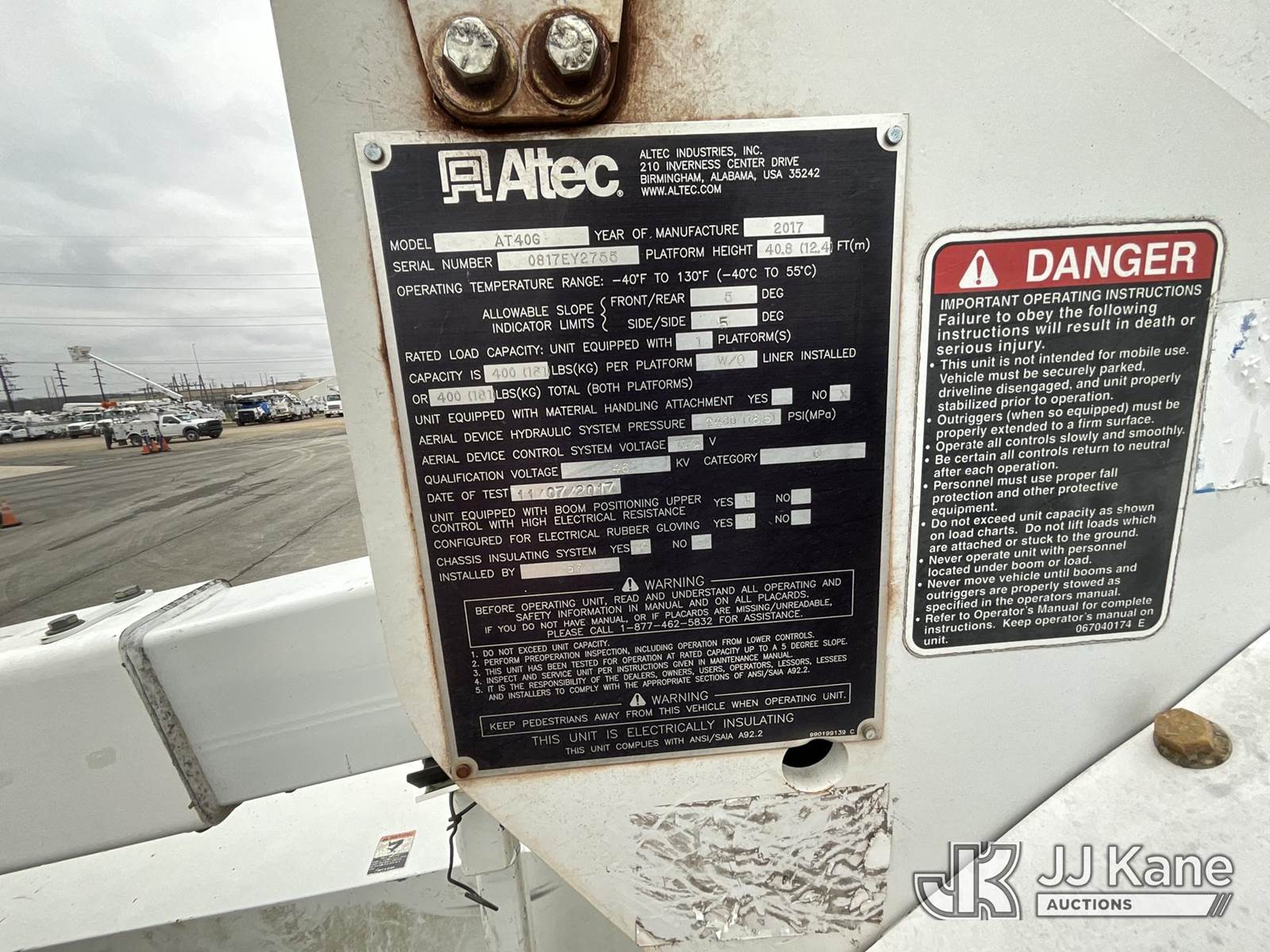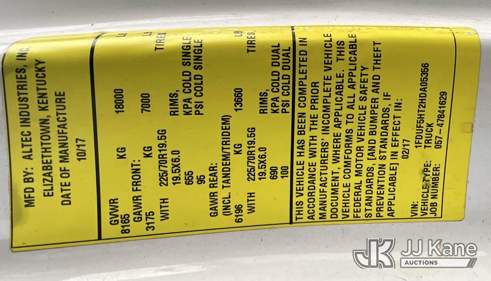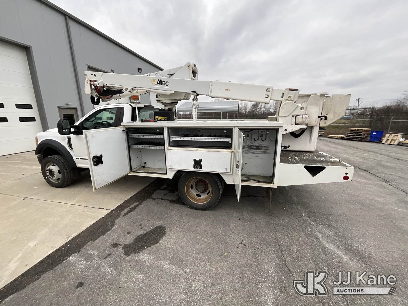 Altec AT40G, 45 ft, Articulating & Telescopic Bucket Truck s/n 0817EY2755, with single-man bucket, mounted behind cab on 2017 Ford F-550 Regular Cab DRW 4WD Service Truck, 6.7L V8 OHV 16V DIESEL Auto, A/C, (126,920 miles) (Runs, Moves & Upper Operates) This is a Titled Item NOTE: This unit is being sold AS IS/WHERE IS via Timed Auction and is located in Elizabethtown, KY. Inspection & preview days for this unit are by appointment only; please contact us at contact@jjkane.com or 84-Go-JJKane for more details. Kentucky Auctioneer Michael Whitebread - License # 256617 (Missing manuals, See Auction Company for Manufacturers Information to obtain manuals) (Buyer is responsible for removal. Assistance by consignor or JJ Kane Auctioneers is not assured.)