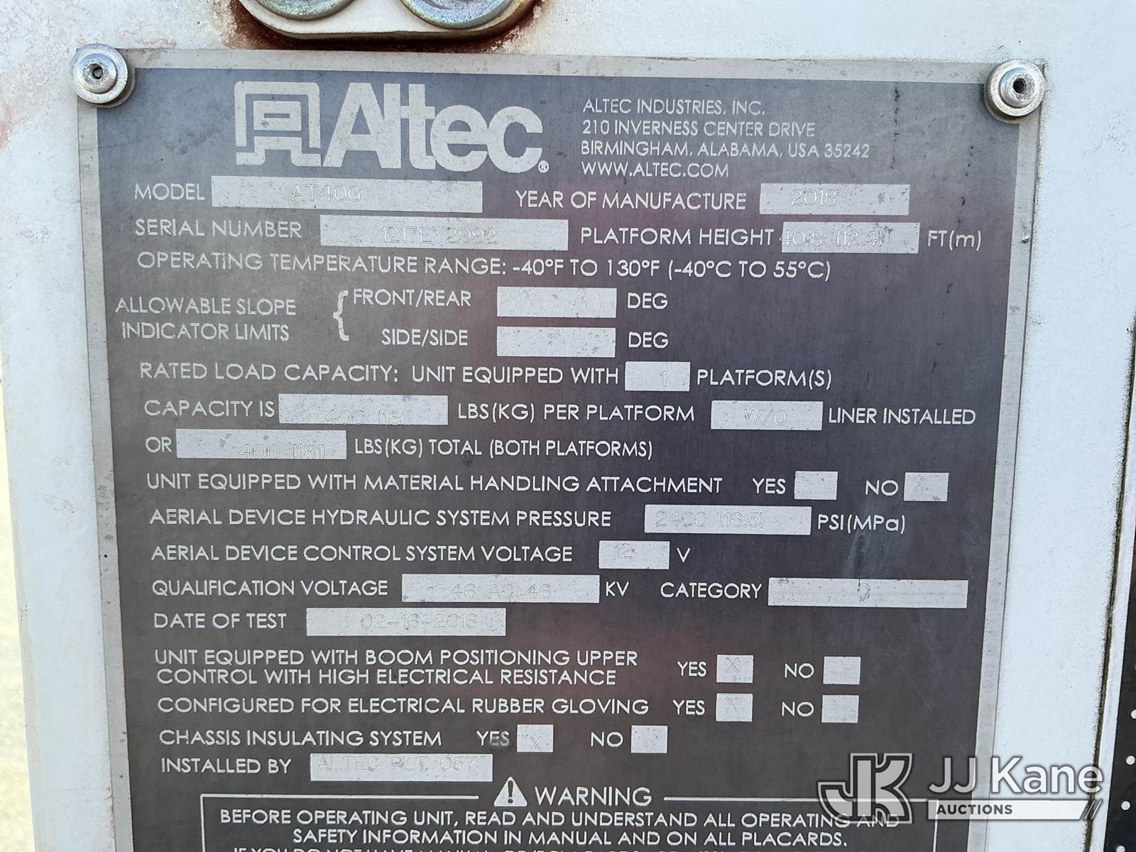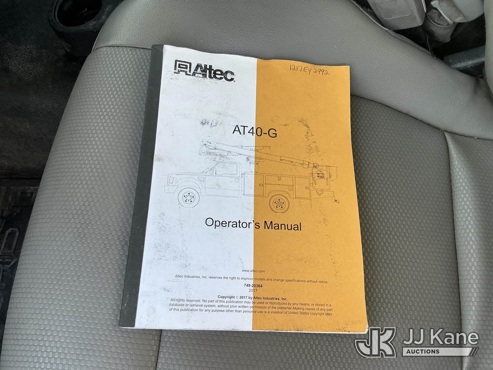 Altec AT40G, 45 ft, Articulating & Telescopic Bucket Truck s/n 1217EY2992, with single-man bucket, mounted behind cab on 2017 Ford F550 Service Truck, 6.7L diesel Auto, A/C, (137,727 miles (unverified)) (Runs, Moves & Upper Operates) (Check Engine Light On, Paint/Body Damage) (Seller States: Needs Fuel Pump & Fuel Injection Pump) This is a Titled Item NOTE: This unit is being sold AS IS/WHERE IS via Timed Auction and is located in China Grove, NC. For more information & removal arrangements please contact Office Staff @ 704-674-1113. (Manuals provided in cab) (Buyer is responsible for removal. Assistance by consignor or JJ Kane Auctions is not assured.)