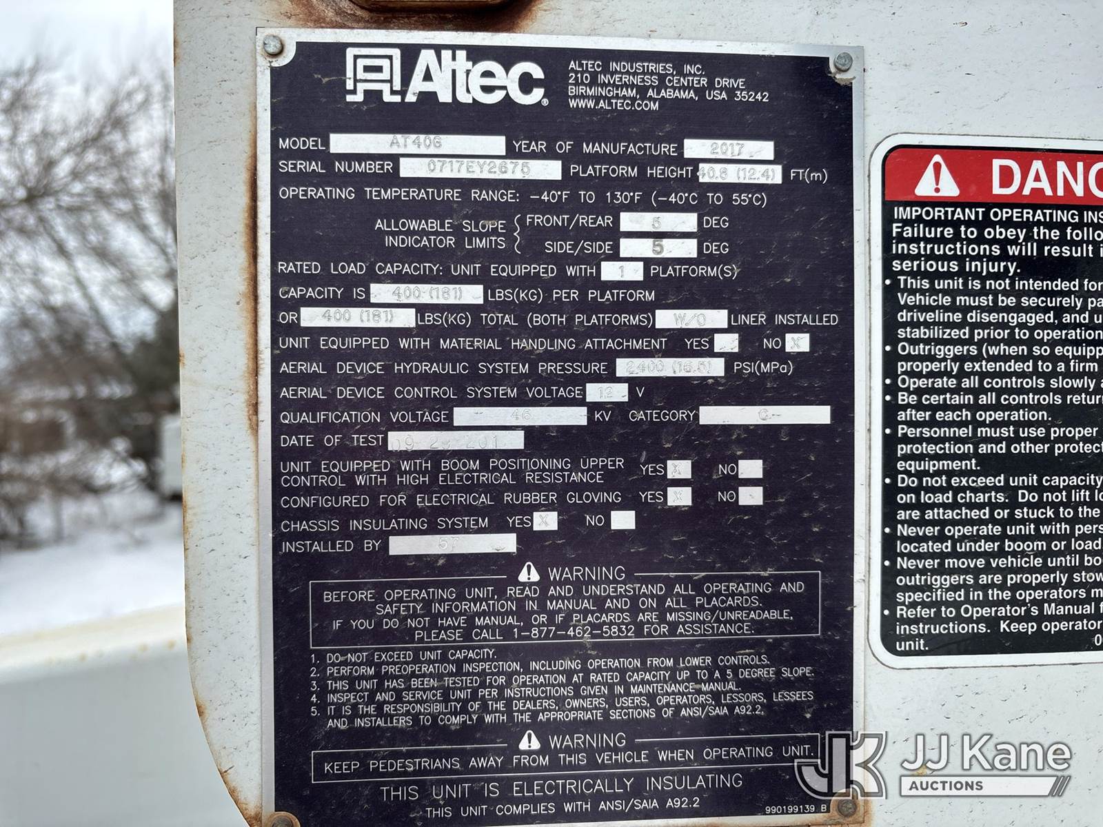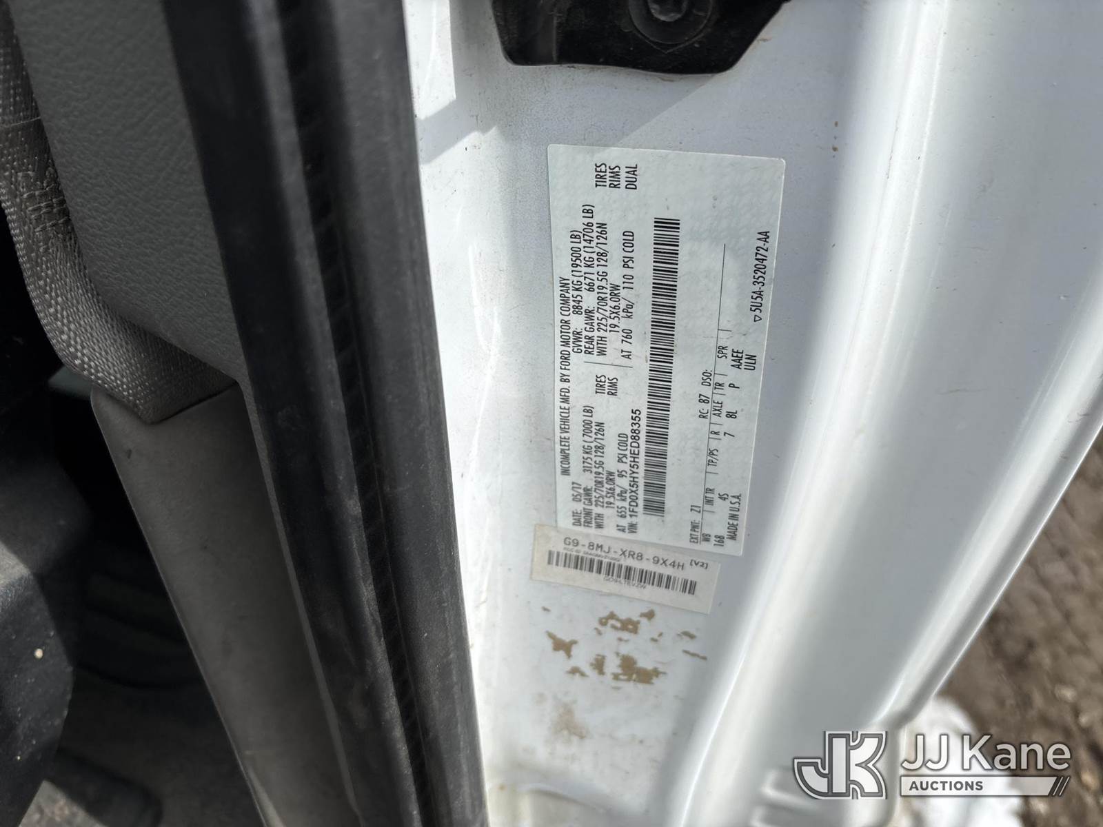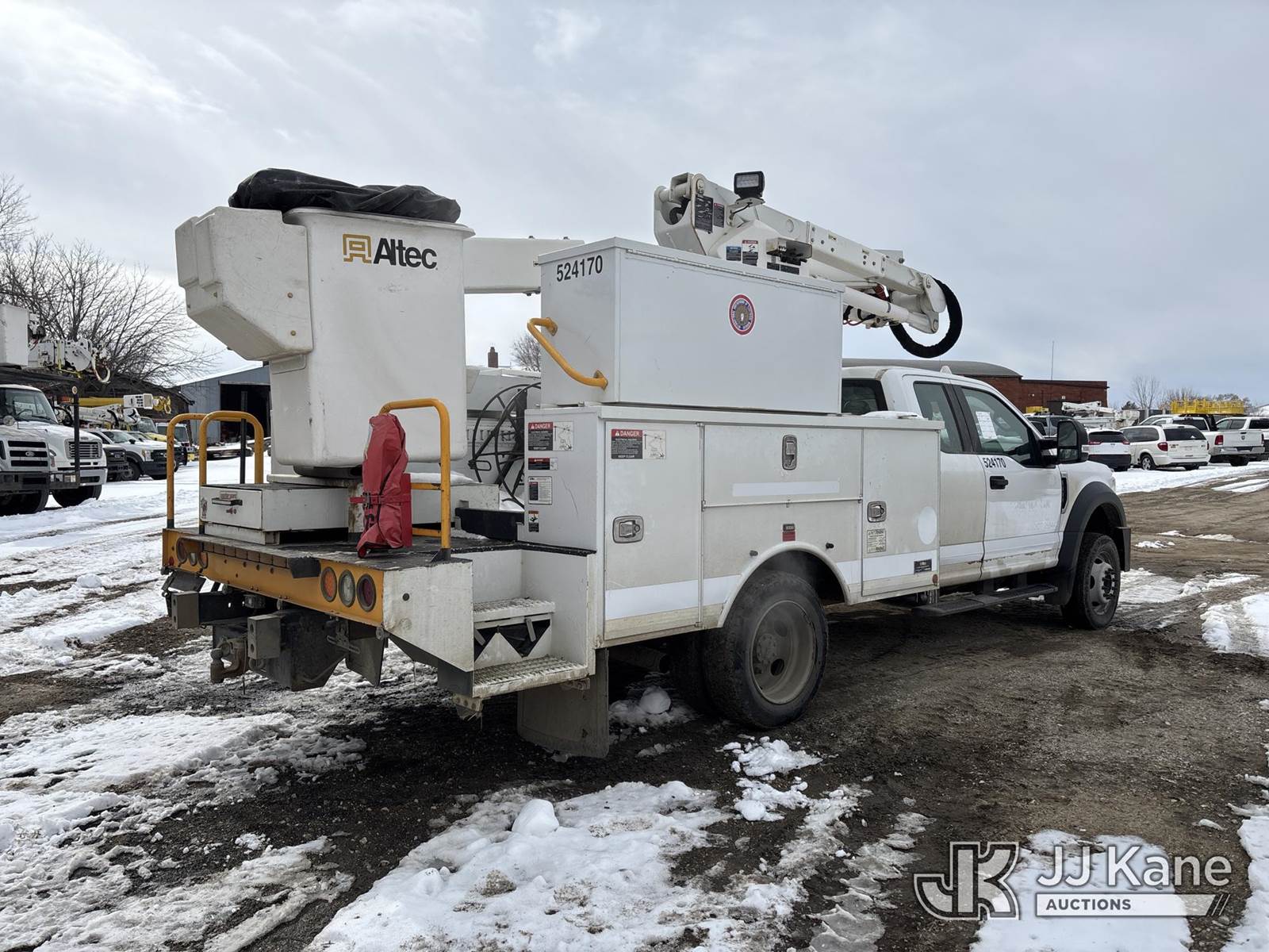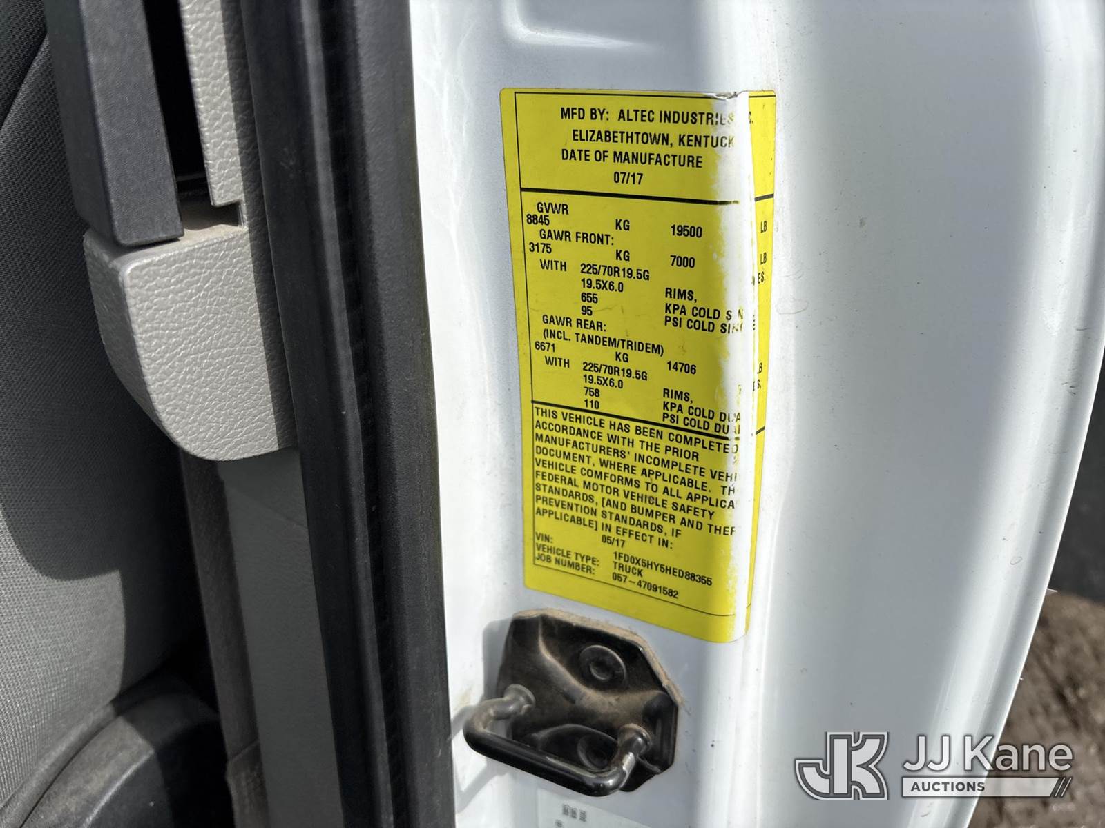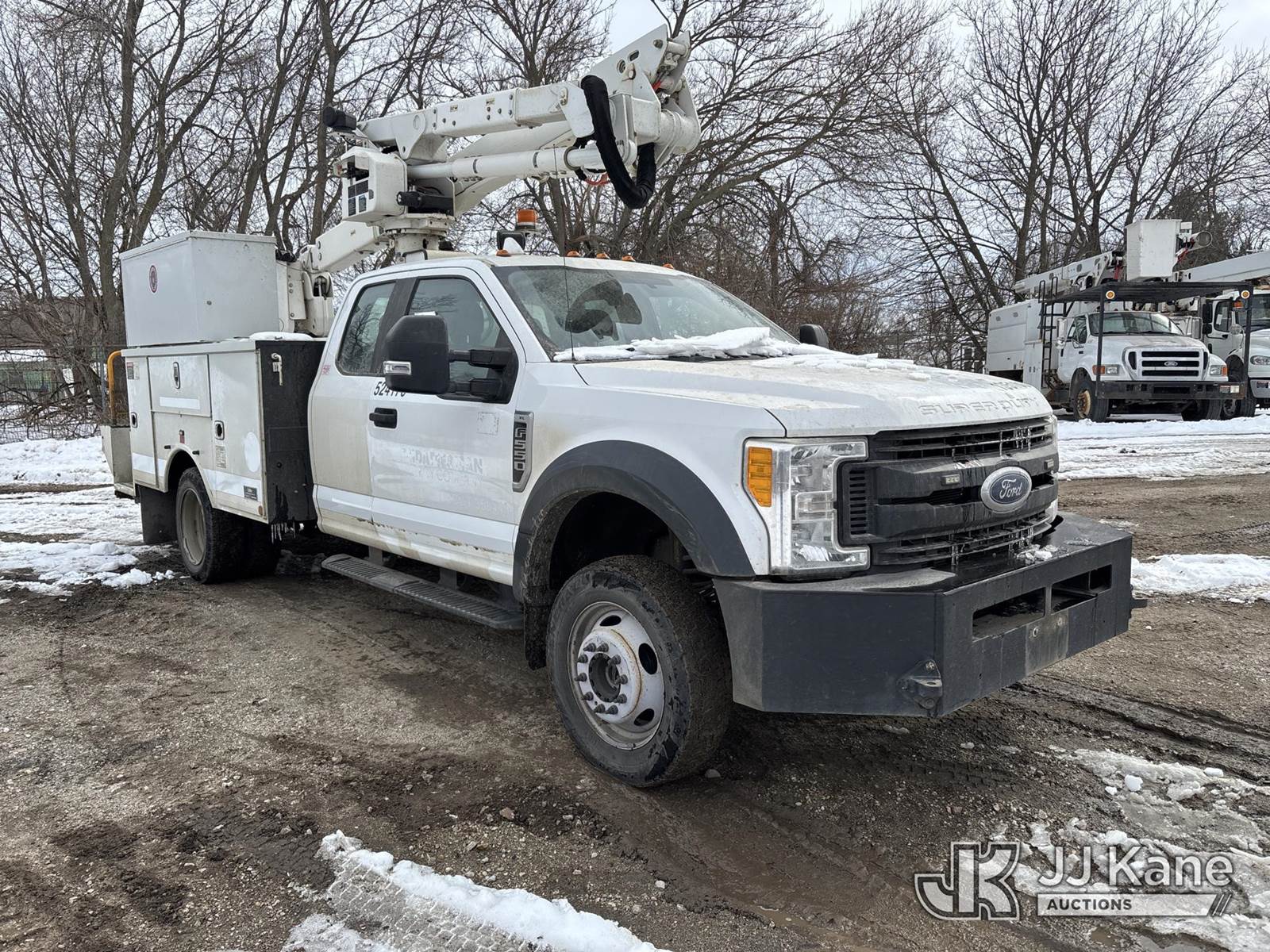 Altec AT40G, 45 ft, Articulating & Telescopic Bucket Truck s/n 0717EY2676, with single man bucket, mounted behind cab on 2017 Ford F-550 Extended-Cab Service Truck, 10-cyl gas, 4wd, Auto, A/C, (157,919 miles) (OPEN RECALL - REQUIRES INSPECTION BEFORE OPERATION) (Runs, Moves & Upper Condition Unknown)(PTO Will Not Engage, Jump To Start, Check Engine & Low Pressure Oil Lights On, Engine Knock) (The manufacturer has notified JJ Kane that this equipment is subject to an open recall. CSN 855 Fuel Line and Brake Line Inspection The equipment should not be operated until this is addressed. Buyer is responsible for reviewing the recall notice and contacting the manufacturer to schedule the recommended corrective actions. Associated costs may be covered by the manufacturer in some cases.) This is a Titled Item NOTE: This unit is being sold AS IS/WHERE IS via Timed Auction and is located in Des Moines, IA. Inspection & preview days for this unit are the 2 business days prior to the first day of items closing for this auction, item is located at 1600 NE 66th Ave Des Moines, IA 50313 and hours of operations are 8a-4p. For pre-sale questions, please contact Eric Stewart @ (515) 626-0492. (Manuals provided in cab) (Buyer is responsible for removal. Assistance by consignor or JJ Kane Auctions is not assured.)