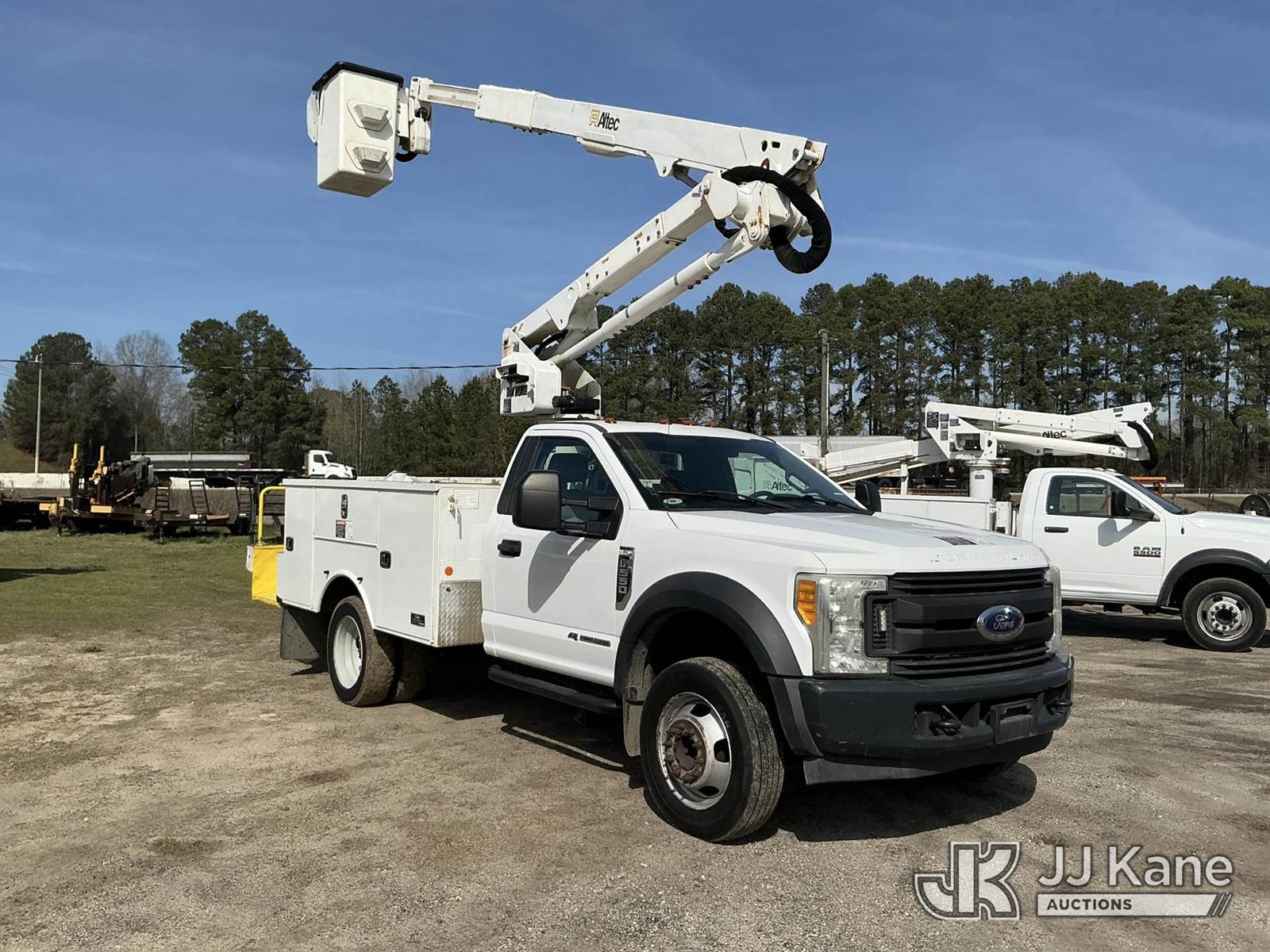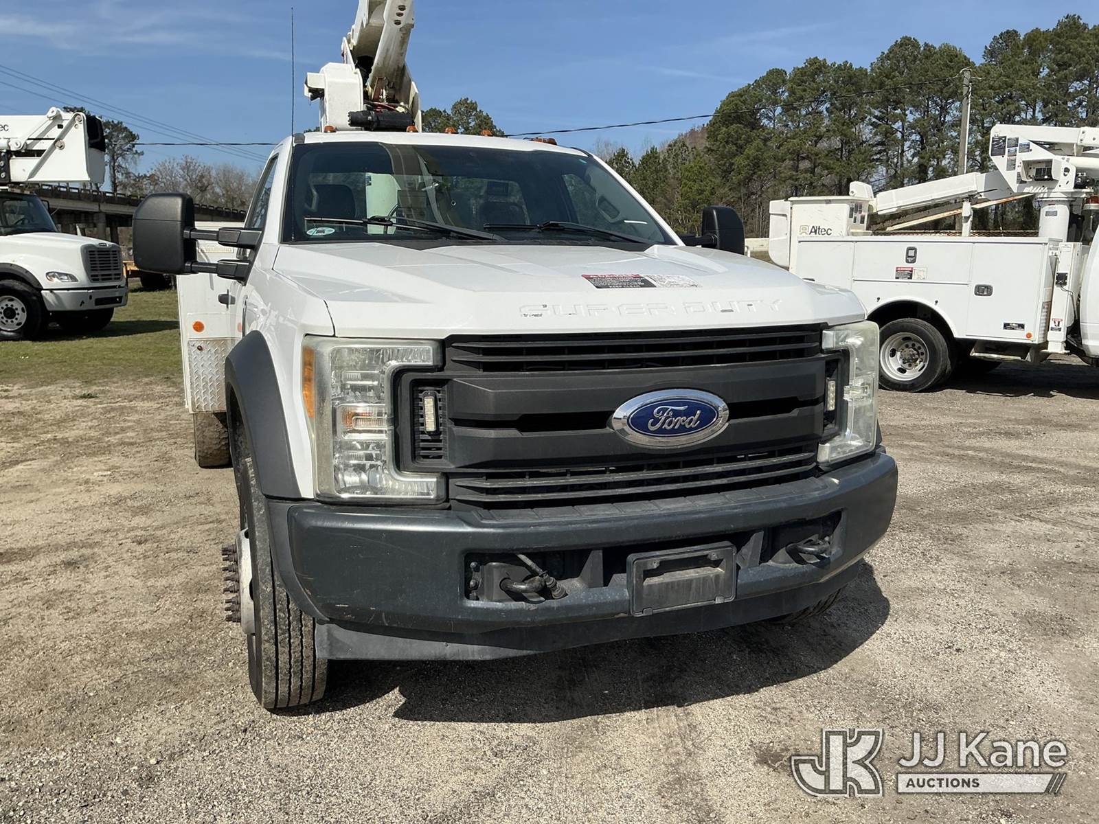 Altec AT40G, 45 ft, Articulating & Telescopic Bucket Truck s/n 1216EY2199, with single man bucket, mounted behind cab on 2017 Ford F550 Service Truck, 6.7L diesel, Auto, A/C, (146,427 miles) (Runs, Moves, Upper Operates) (Missing Upper Plate, Check Engine Light On) ( The manufacturer has notified JJ Kane that this equipment is subject to an open recall. CSN 855 Fuel Line and Brake Line Inspection The equipment should not be operated until this is addressed. Buyer is responsible for reviewing the recall notice and contacting the manufacturer to schedule the recommended corrective actions. Associated costs may be covered by the manufacturer in some cases.) This is a Titled Item NOTE: This unit is being sold AS IS/WHERE IS via Timed Auction and is located in Florence, SC. Inspection & preview days for this unit are by appointment only; please contact us at contact@jjkane.com or 84-Go-JJKane for more details. (Manuals provided in cab) (Buyer is responsible for removal. Assistance by consignor or JJ Kane Auctions is not assured.)