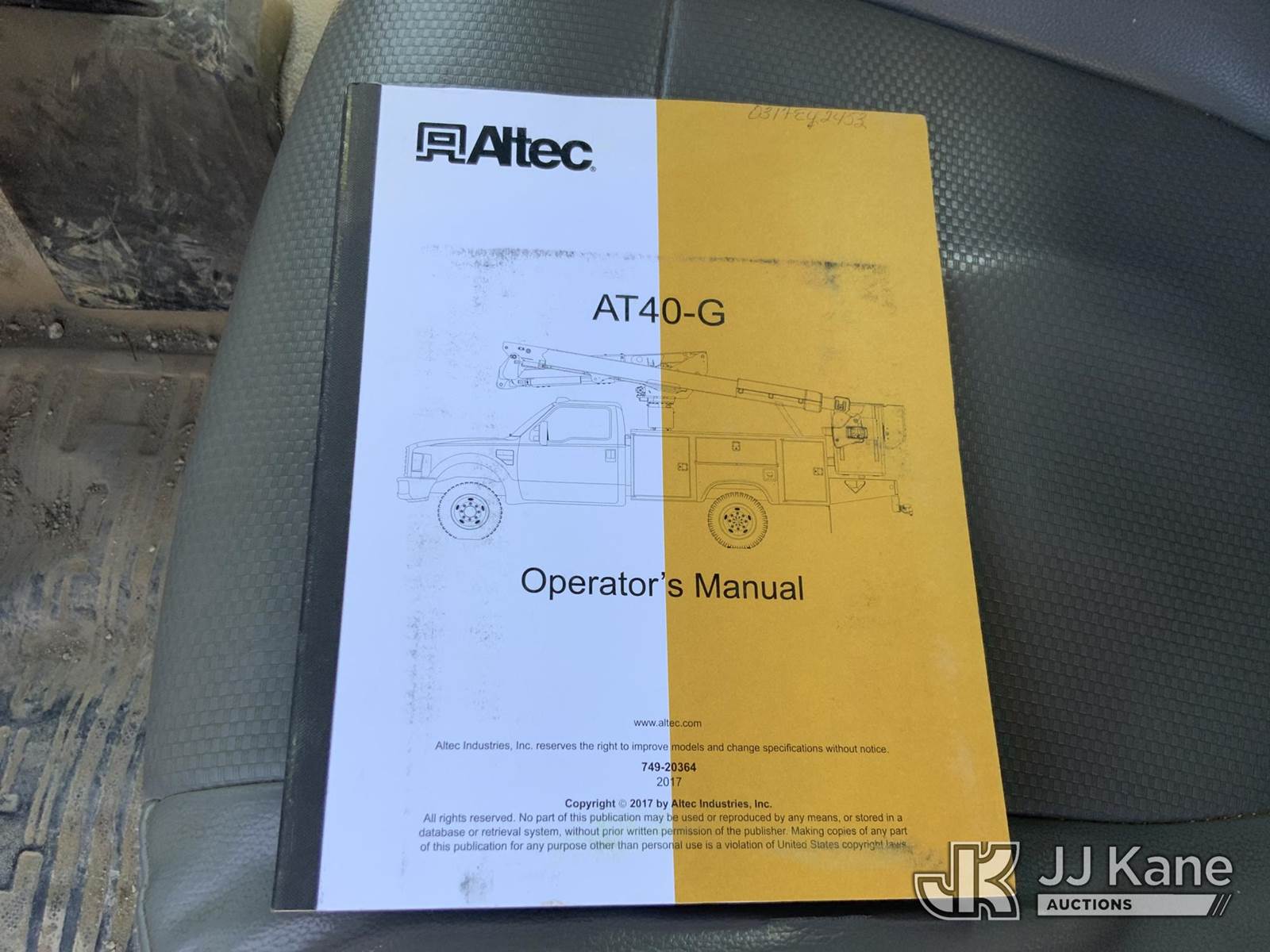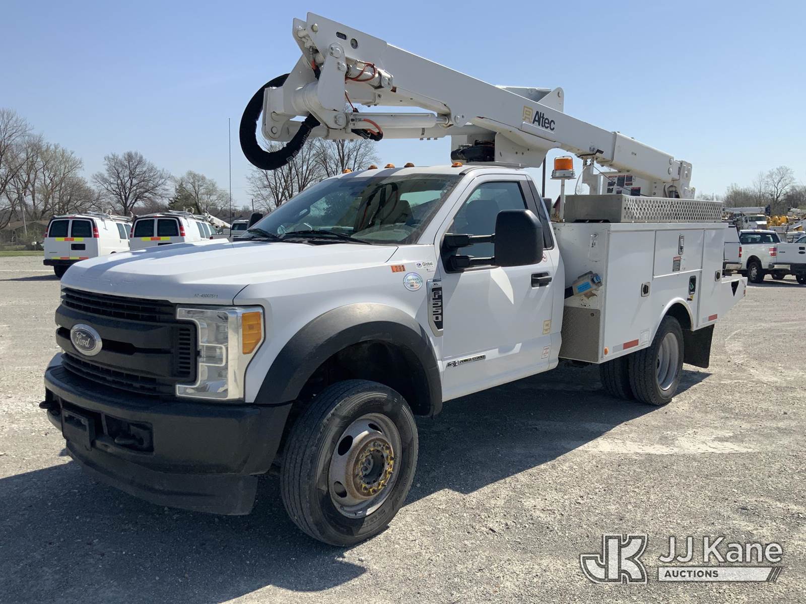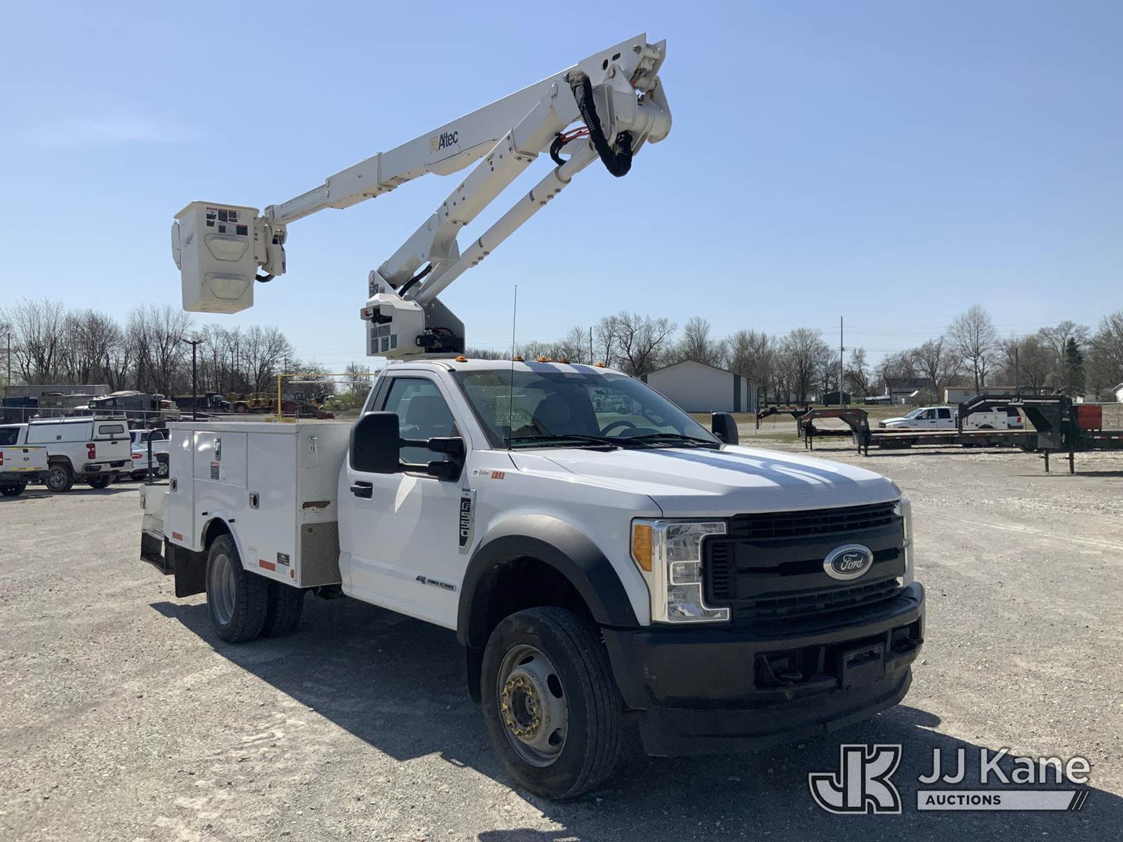 Altec AT40G, 45 ft, Articulating & Telescopic Bucket Truck s/n 0317EY2453, with single-man bucket, mounted behind cab on 2017 Ford F550 4x4 Service Truck, s/n 1FDUF5HT3HEC49205, 6.7L V8 OHV 16V DIESEL, Auto, A/C, (99,941 miles) (Runs, Moves & Upper Operates) (Check Engine Light On) NOTE: This unit is being sold AS IS/WHERE IS via Timed Auction and is located in Hawk Point, MO. Inspection & preview days for this unit are the 2 business days prior to the first day of items closing for this auction, item is located at 25 State Highway A Hawk Point, MO 63349 and hours of operations are 8a-4p. For pre-sale questions, please contact Adam Stanek at (636) 295-1594. (Manuals provided in cab) (Buyer is responsible for removal. Assistance by consignor or JJ Kane Auctions is not assured.)