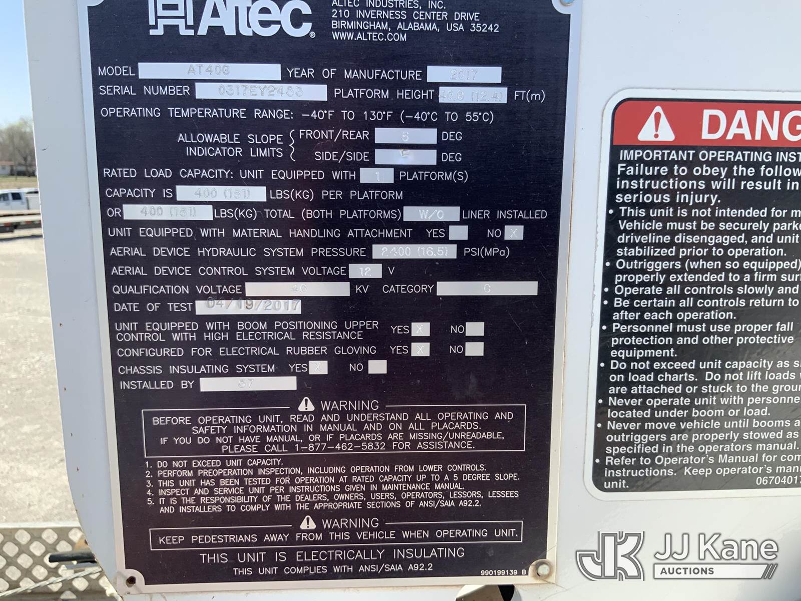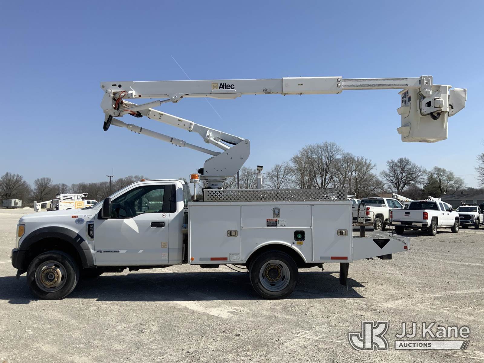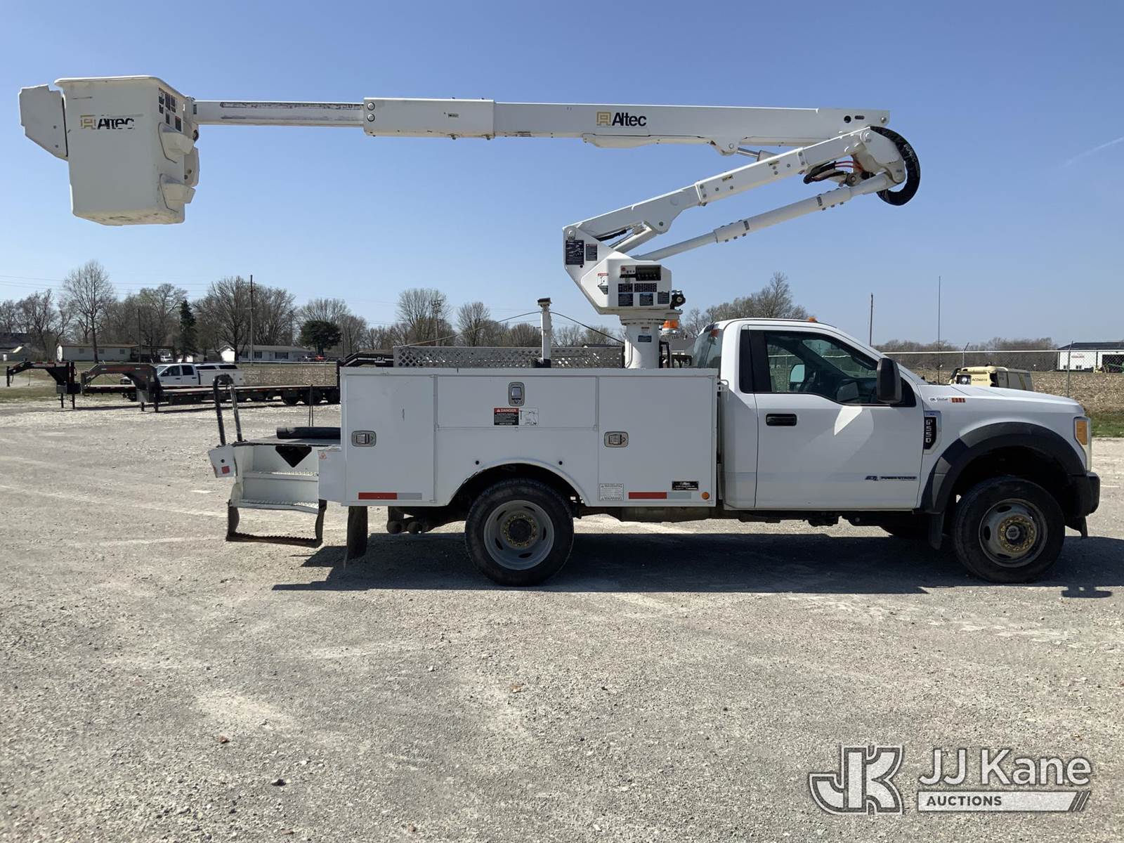 Altec AT40G, 45 ft, Articulating & Telescopic Bucket Truck s/n 0317EY2453, with single-man bucket, mounted behind cab on 2017 Ford F550 4x4 Service Truck, s/n 1FDUF5HT3HEC49205, 6.7L V8 OHV 16V DIESEL, Auto, A/C, (99,941 miles) (Runs, Moves & Upper Operates) (Check Engine Light On) NOTE: This unit is being sold AS IS/WHERE IS via Timed Auction and is located in Hawk Point, MO. Inspection & preview days for this unit are the 2 business days prior to the first day of items closing for this auction, item is located at 25 State Highway A Hawk Point, MO 63349 and hours of operations are 8a-4p. For pre-sale questions, please contact Adam Stanek at (636) 295-1594. (Manuals provided in cab) (Buyer is responsible for removal. Assistance by consignor or JJ Kane Auctions is not assured.)