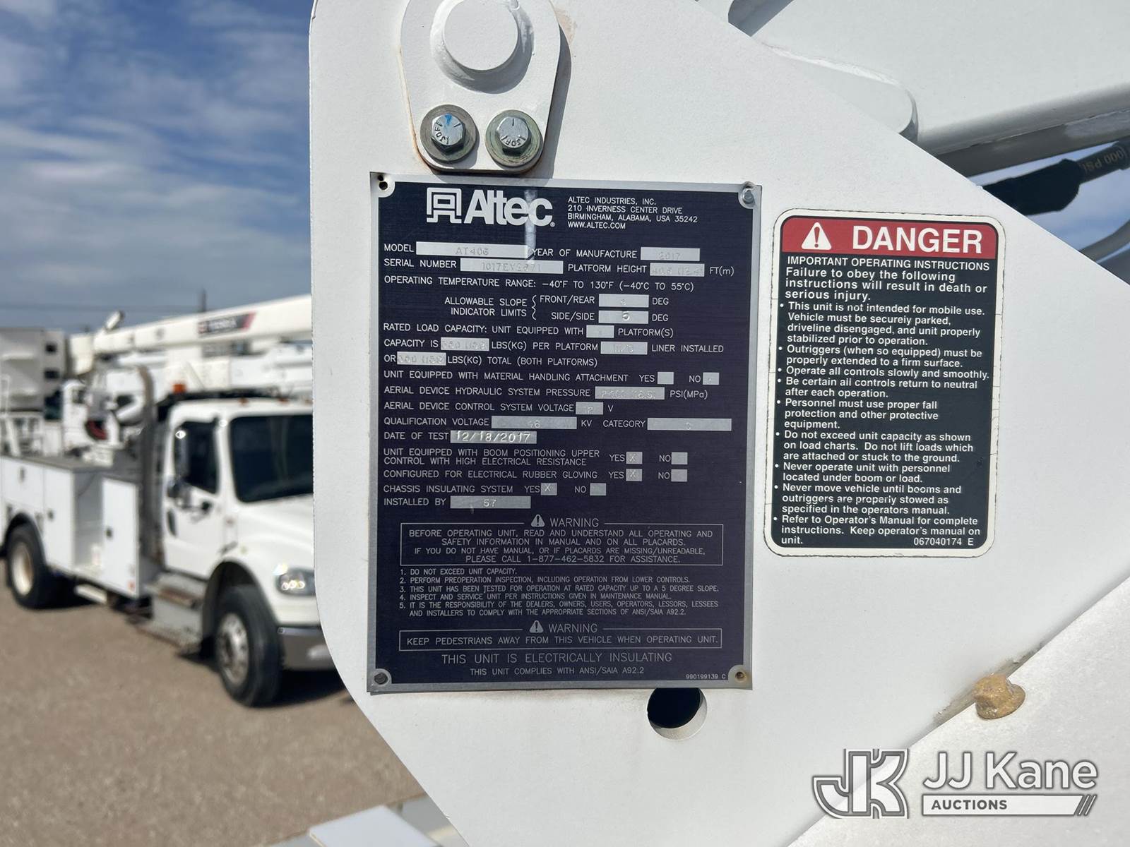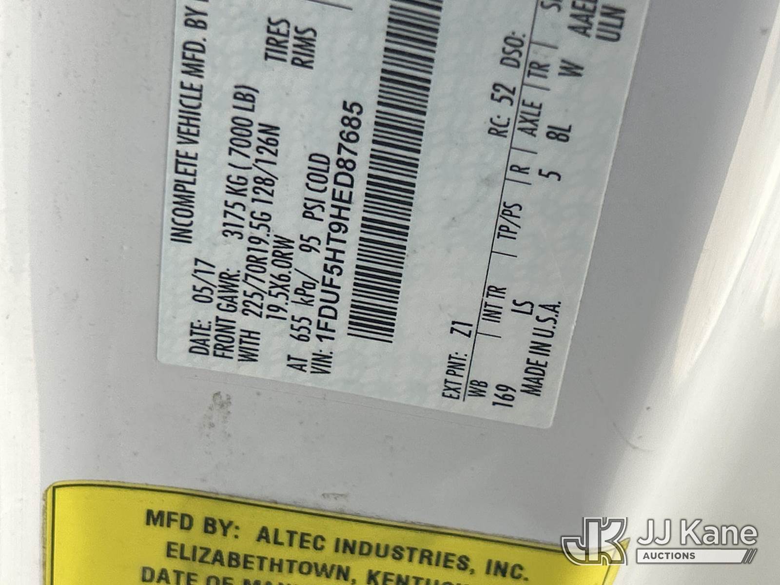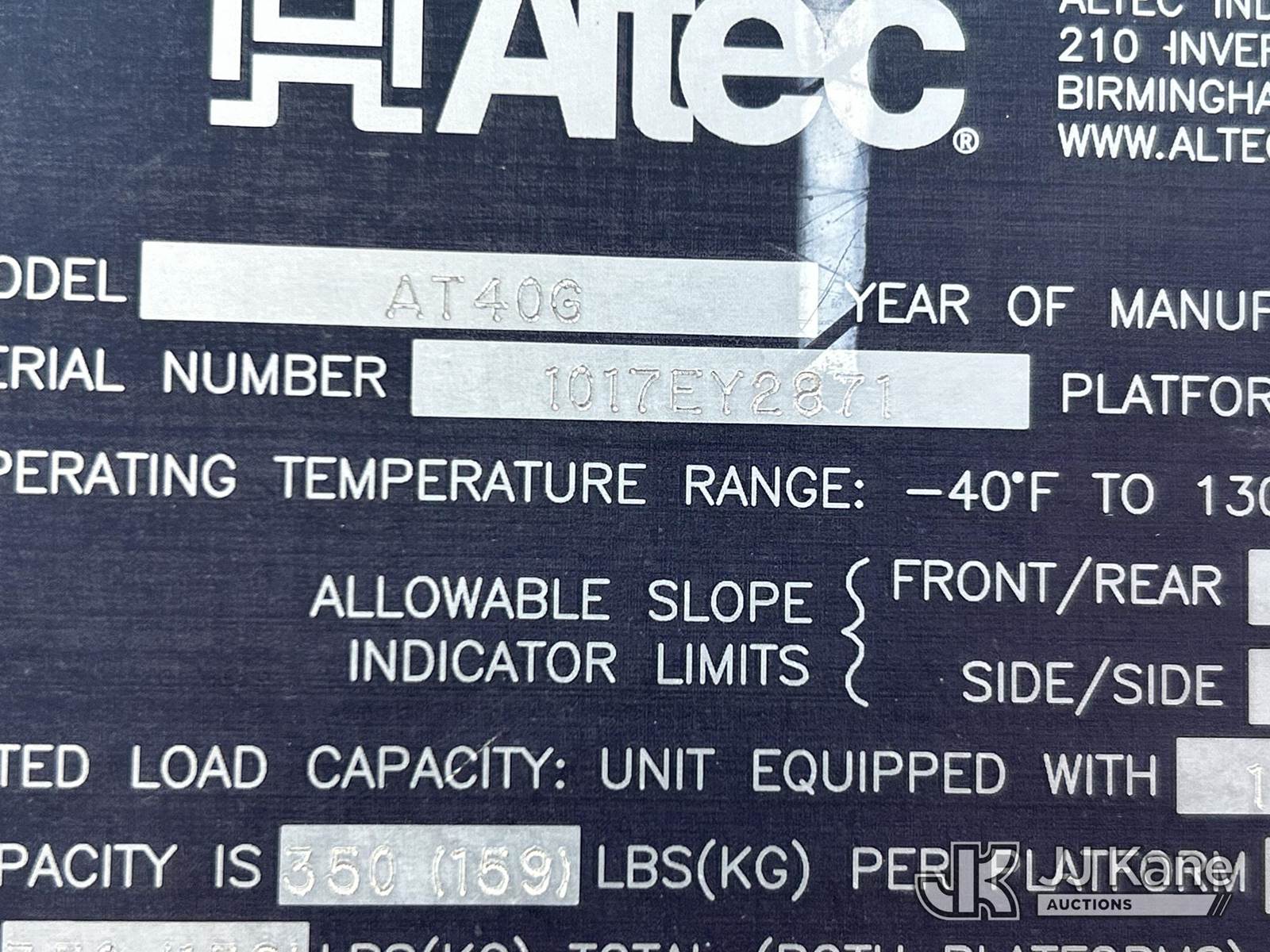 Altec AT40G, 45 ft, Material Handling Bucket Truck s/n 1017EY2871, with Single bucket, 2 hydraulic outriggers , rear mounted on 2017 Ford F-550 Service Truck, 6.7L Diesel 4WD, Auto, A/C, (80,966 miles) (Runs, Moves & Upper Operates) (Outriggers Operate) (TITLE DELAY) (Reads 11,574 hours) This is a Titled Item NOTE: This unit is being sold AS IS/WHERE IS via Timed Auction and is located in Waxahachie, TX. Inspection & preview days for this unit are the 2 business days prior to the first day of items closing for this auction, item is located at 999 Solon Rd Waxahachie, TX 75165 and hours of operations are 8a-4p. For pre-sale questions, please contact Alex Bayless @ (469) 550-4938. (Missing manuals, See Auction Company for Manufacturers Information to obtain manuals) Sales Tax Collected Based on Residency Title To Come From Leasing Company In 30 Days(Buyer is responsible for removal. Assistance by consignor or JJ Kane Auctions is not assured.)