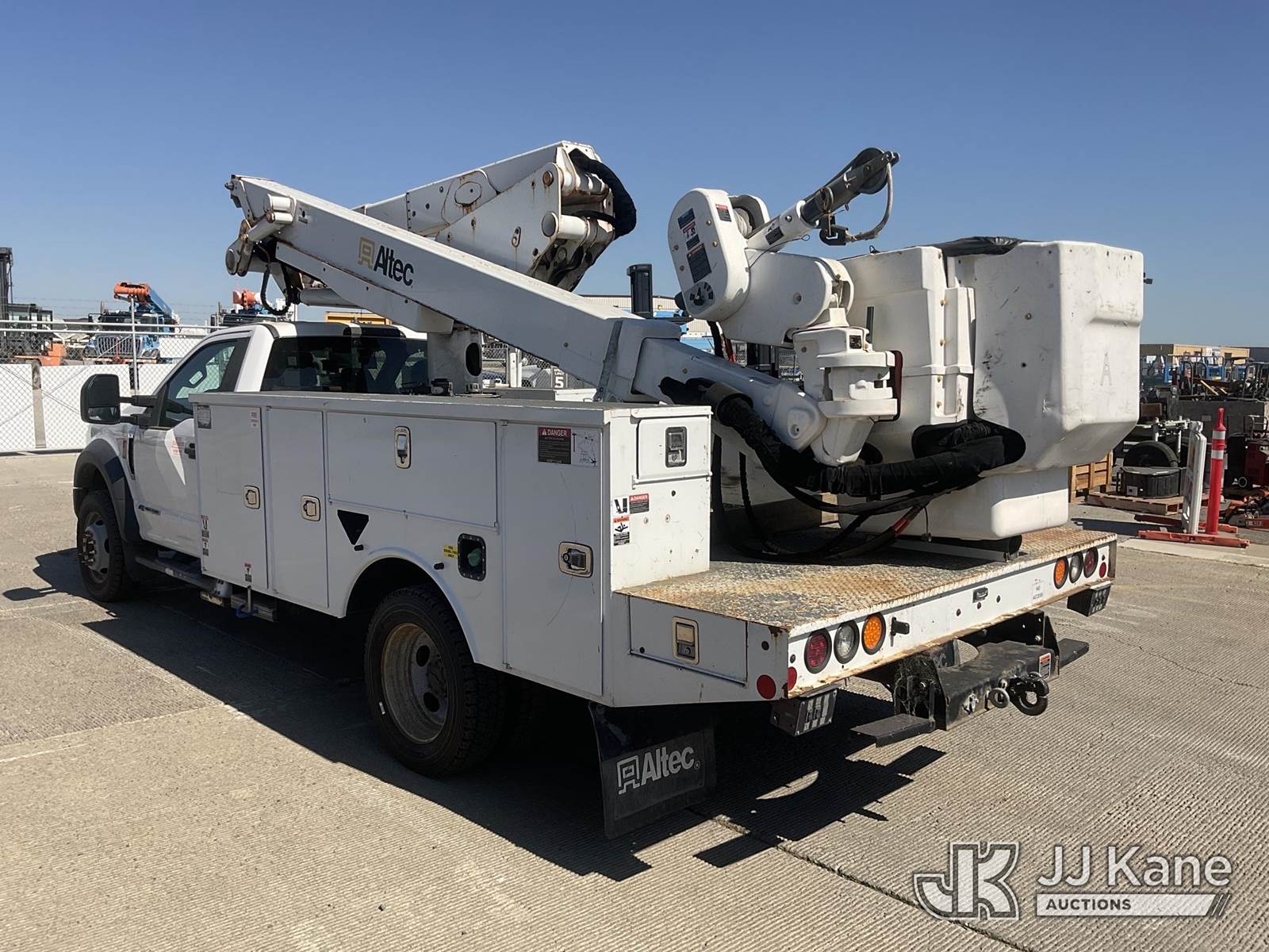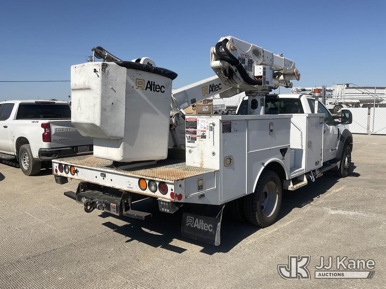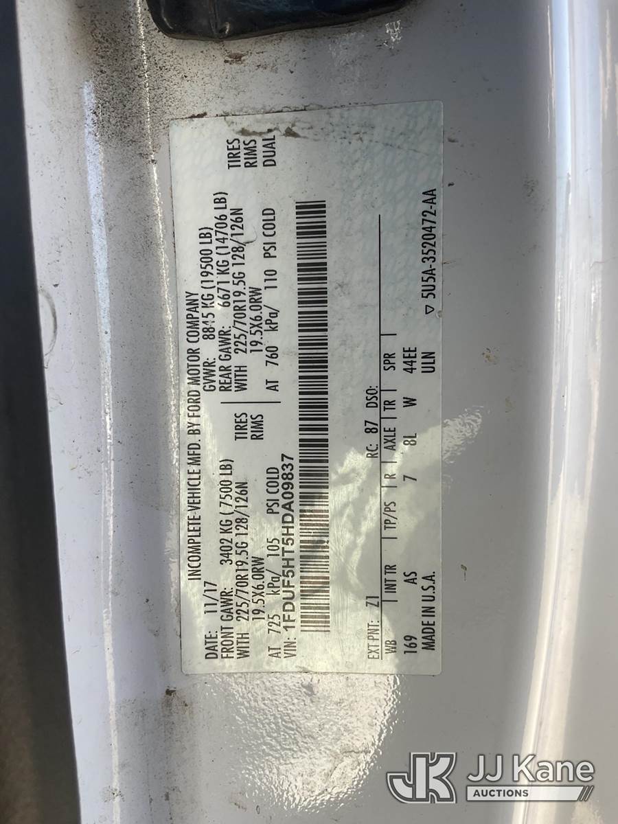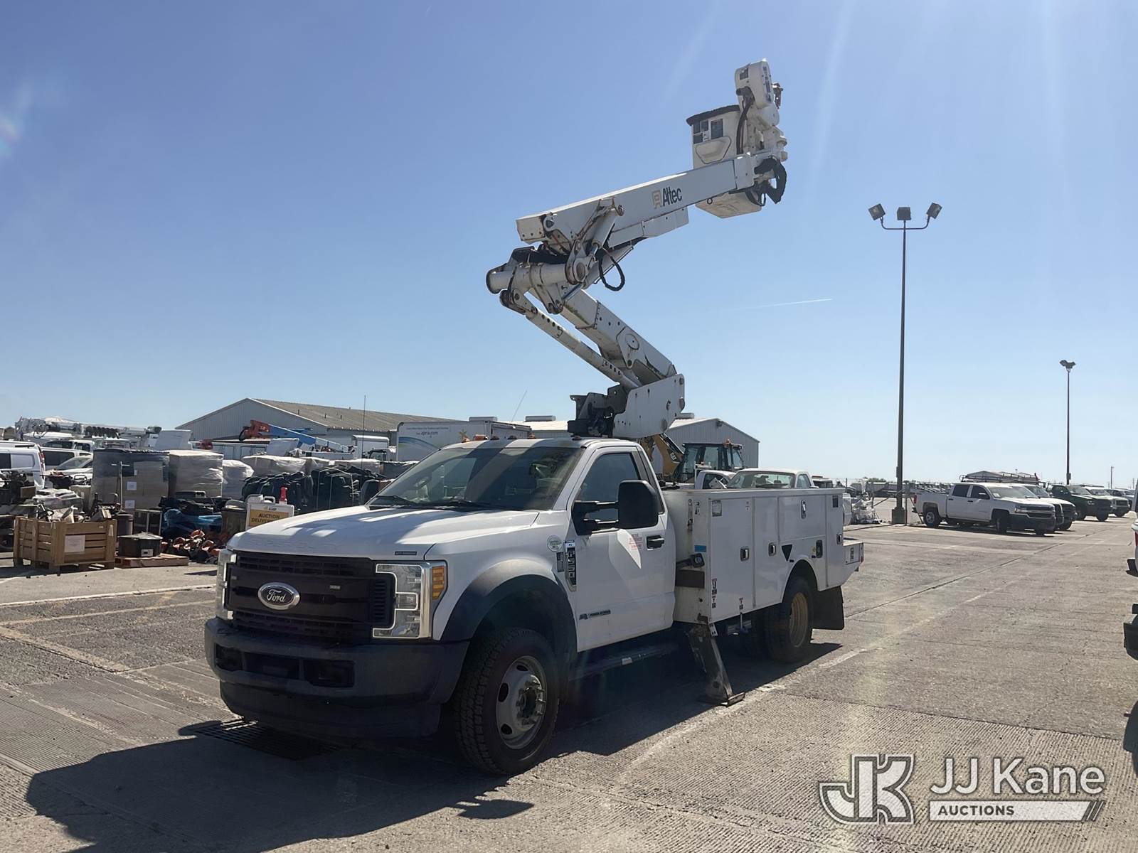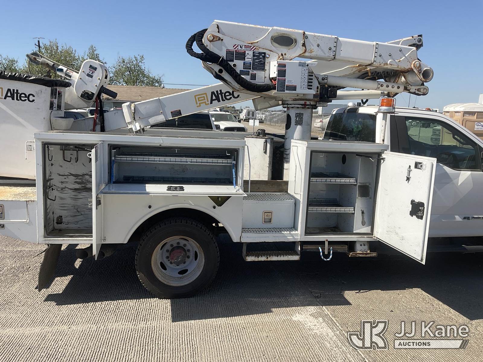 Altec AT41M, 45 ft, Articulating & Telescopic Material Handling Bucket Truck s/n 0418GX0646, with single-man bucket, mounted behind cab on 2017 Ford F-550 Regular Cab DRW 4WD Service Truck, s/n 1FDUF5HT5HDA09837, 6.7L V8 OHV 16V DIESEL, Auto, A/C, with Tow Package, (89,456 miles) (Runs, Moves & Upper Operates, Passenger Side Outrigger Does Not Operate, Rust Damage On Upper Unit) May be subject to ARB Regulations This is a Titled Item NOTE: This unit is being sold AS IS/WHERE IS via Timed Auction and is located in Dixon, CA. Inspection & preview days for this unit are the 2 business days prior to the first day of items closing for this auction, item is located at 8668 Sparling Ln Dixon, CA 95620 and hours of operations are 8a-4p. For pre-sale questions, please contact JJ Kane Staff at (707) 678-8060 (dixon@jjkane.com). Dealer License Number 45696. (Manuals provided in cab) (Buyer is responsible for removal. Assistance by consignor or JJ Kane Auctions is not assured.)