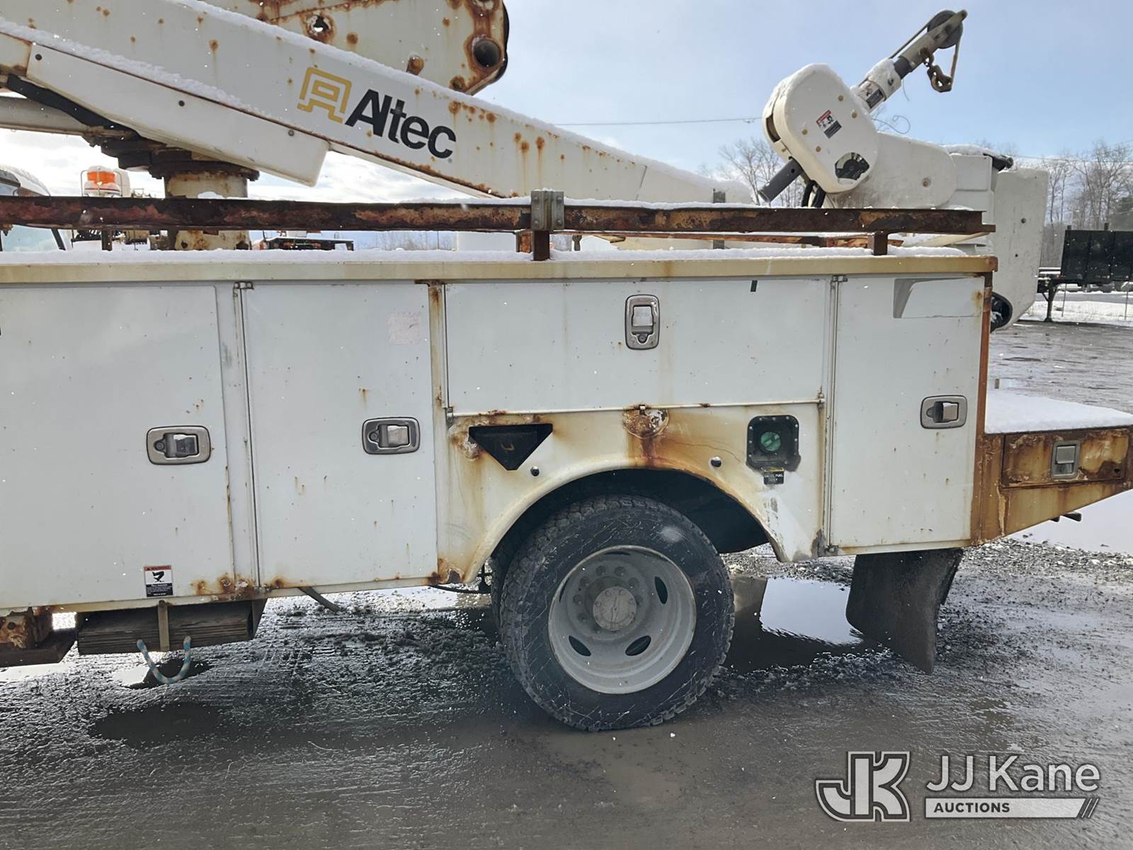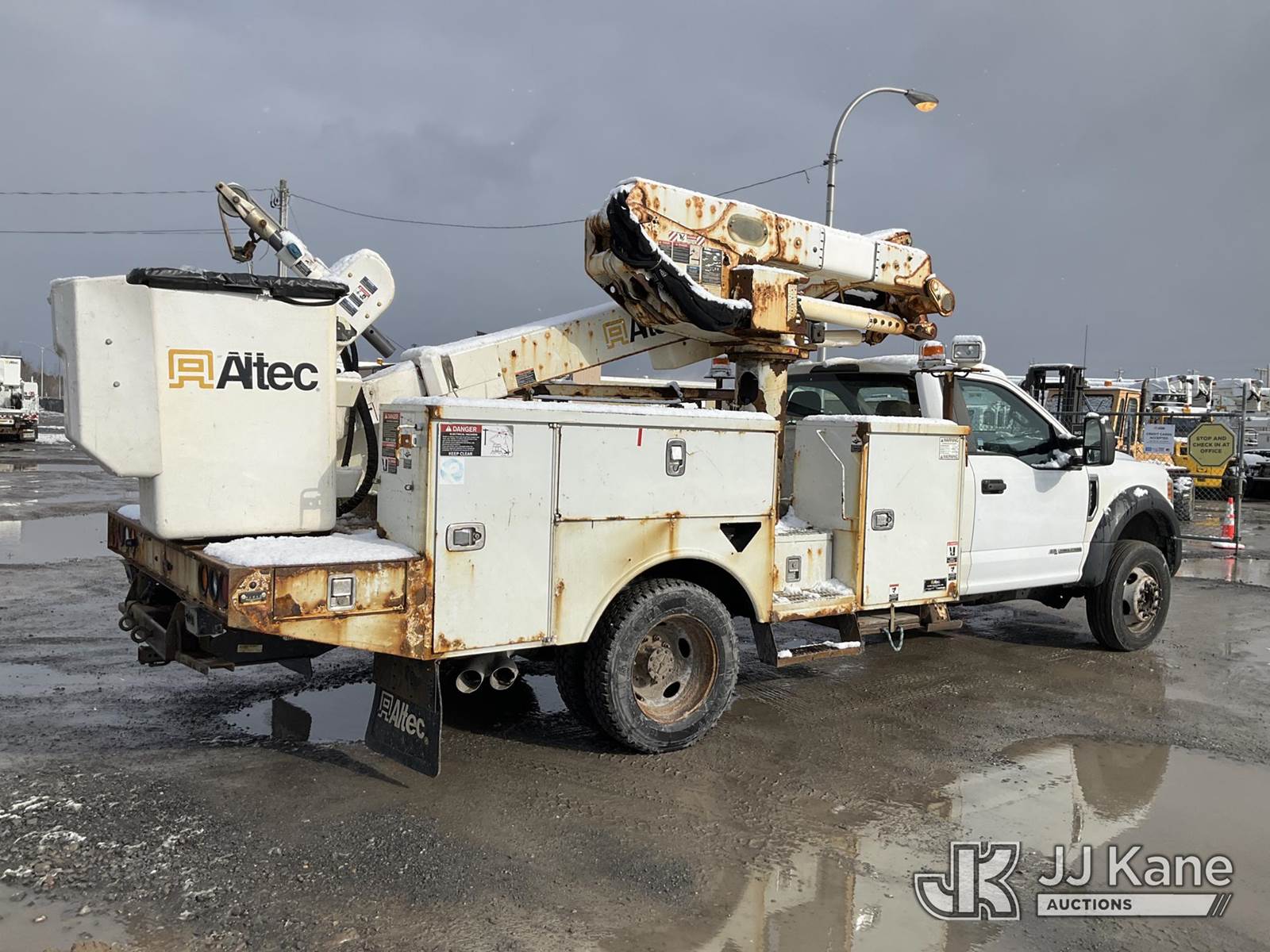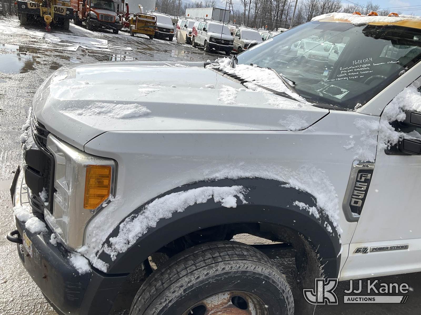 Altec AT41M, 46 ft, Articulating & Telescopic Material Handling Bucket Truck s/n 0617GX0204, with Single-Man Bucket, mounted behind cab on 2017 Ford F550 4x4 Service Truck, 6.7L diesel, Auto, A/C, (190,717 miles) (Runs, Moves & Upper Condition Unknown, PTO Not Engaging, Check Engine, Traction & Battery Light On) This is a Titled Item NOTE: This unit is being sold AS IS/WHERE IS via Timed Auction and is located in Rome, NY. Inspection & preview days for this unit are the 2 business days prior to the first day of items closing for this auction, item is located at 5835 Success Dr Rome, NY 13440 and hours of operations are 8a-4p. For pre-sale questions, please contact Ryan Jackson @ (315) 749-3790 or Ryan.Jackson@jjkane.com. (Missing manuals, See Auction Company for Manufacturers Information to obtain manuals) (Buyer is responsible for removal. Assistance by consignor or JJ Kane Auctions is not assured.)
