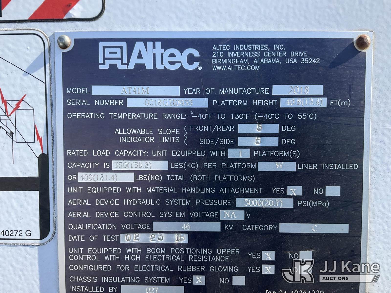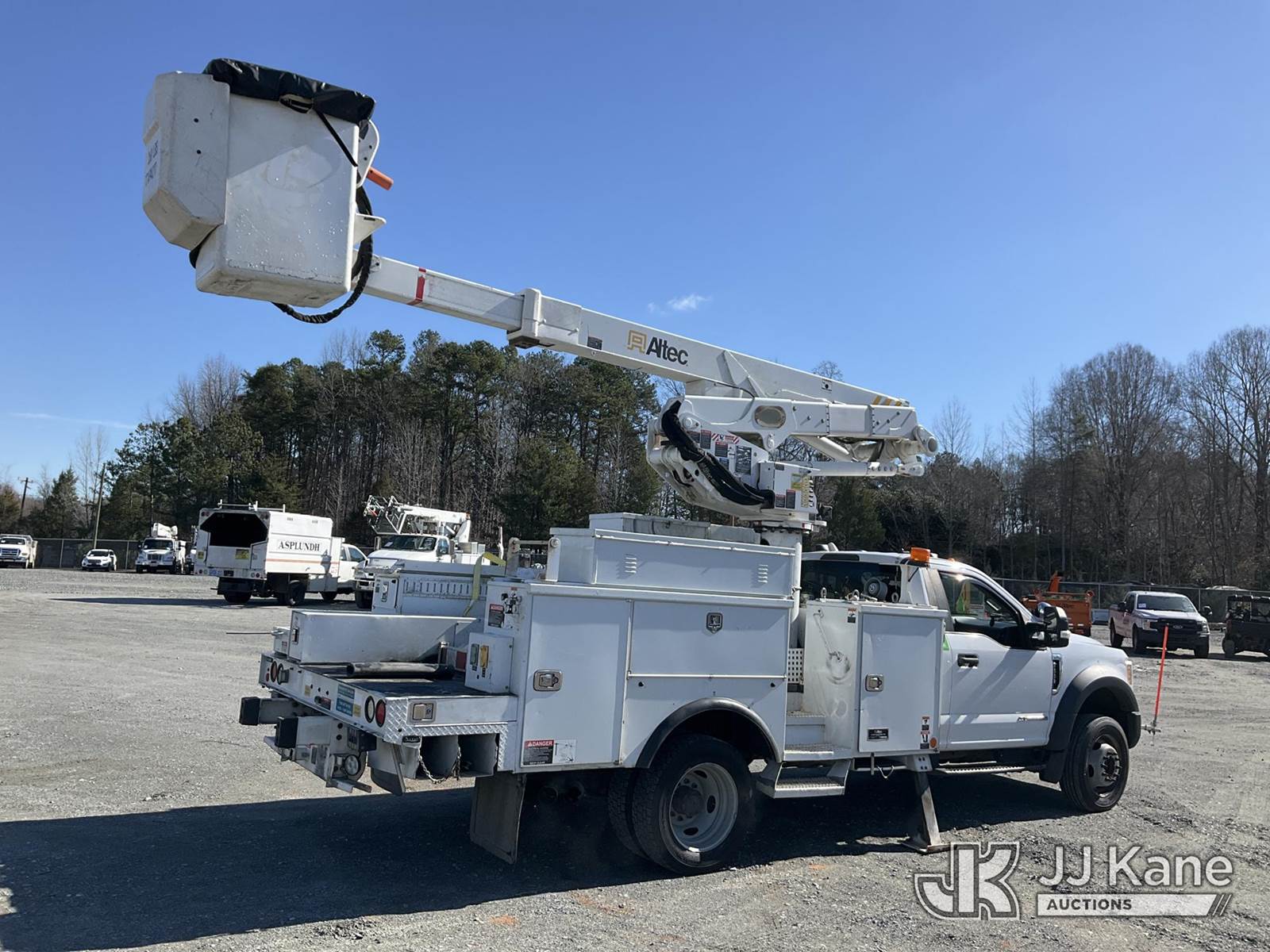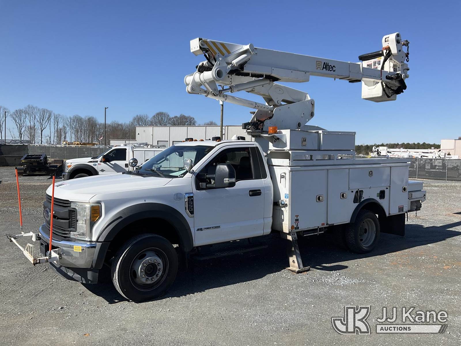 Altec AT41MH, 46 ft, Articulating & Telescopic Material Handling Bucket Truck s/n 0218GH0935, with single man bucket & 2 hyd outriggers, mounted behind cab on 2017 Ford F550 4X4 Service Truck, 6.7L diesel, Auto, A/C, (176,555 miles) (Runs, Moves & Upper Operates) This is a Titled Item NOTE: This unit is being sold AS IS/WHERE IS via Timed Auction and is located in China Grove, NC. Inspection & preview days for this unit are the 2 business days prior to the first day of items closing for this auction, item is located at 820 E NC Hwy 152 China Grove, NC 28023 and hours of operations are 8a-4p. For pre-sale questions, please contact Office Staff @ (704) 674-1113. (Missing manuals, See Auction Company for Manufacturers Information to obtain manuals) (Buyer is responsible for removal. Assistance by consignor or JJ Kane Auctions is not assured.)