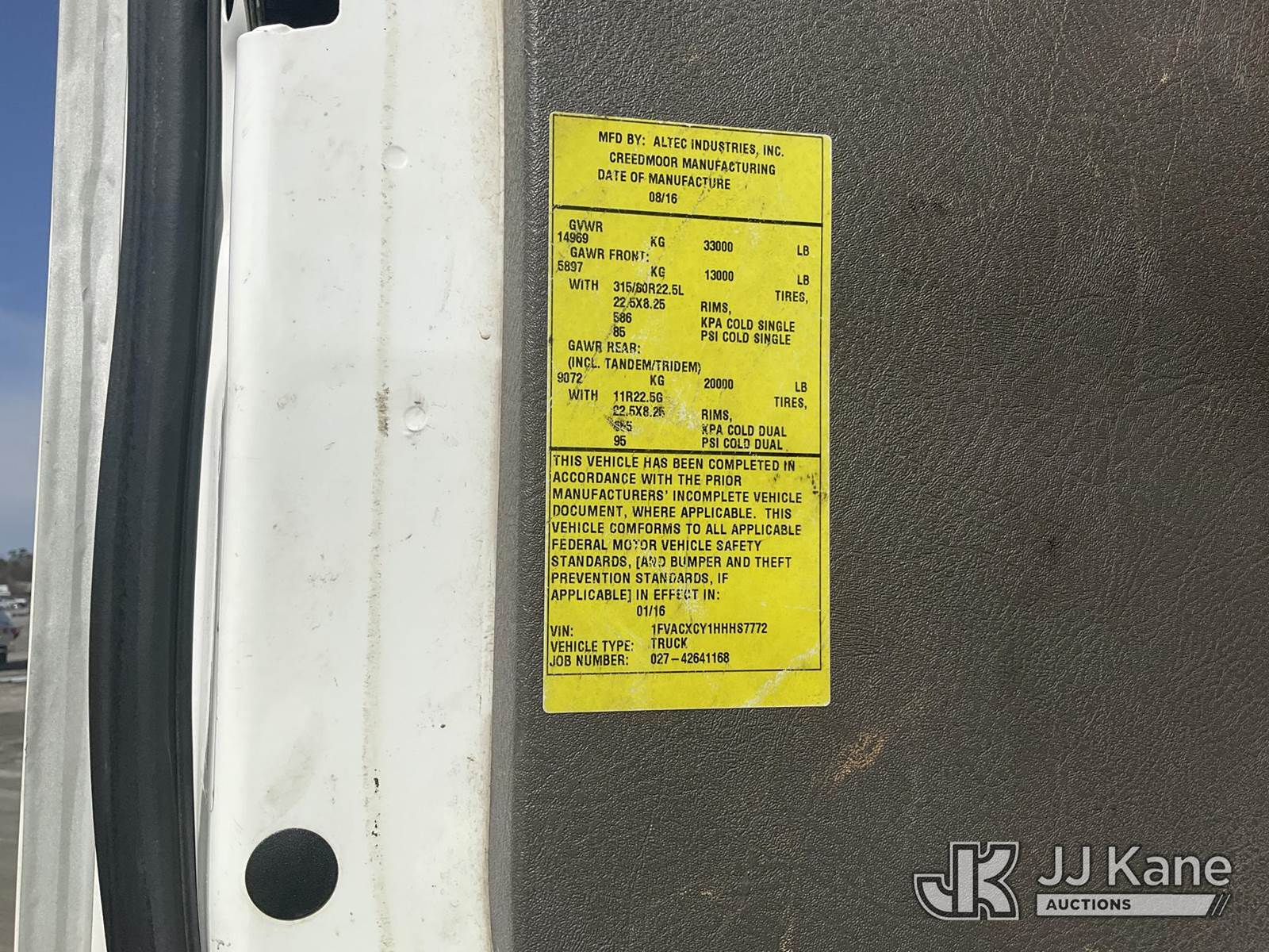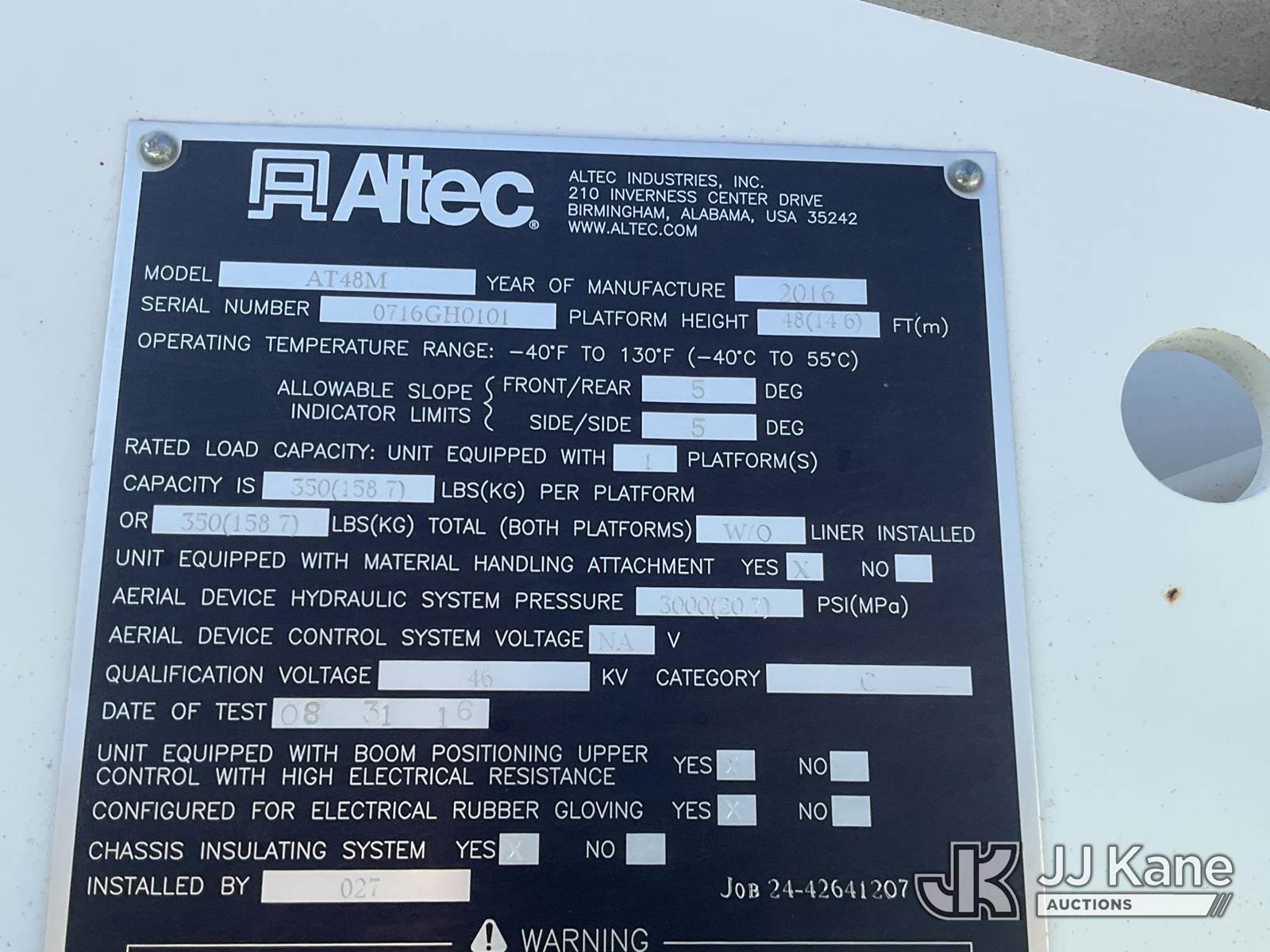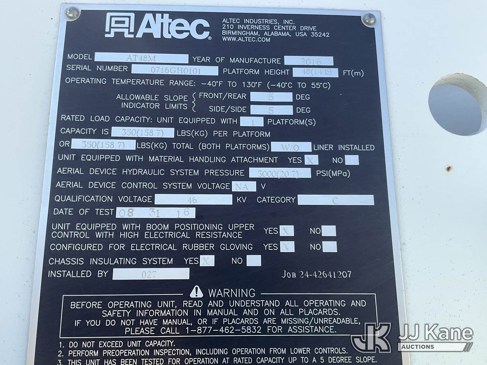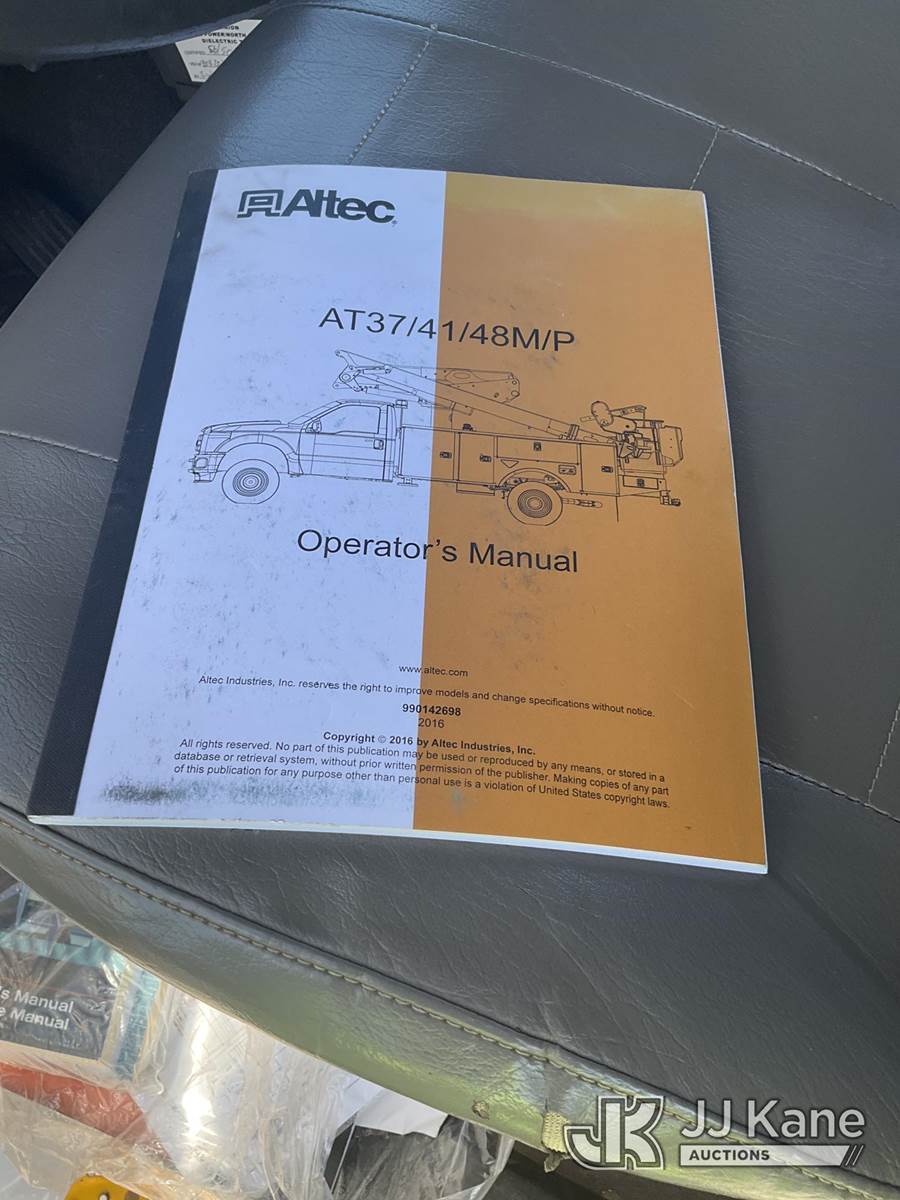 Altec AT48M, 53 ft, Articulating & Telescopic Material Handling Bucket Truck s/n 0716GH0101, with Two-Man Bucket, rear mounted on 2017 Freightliner M2 106 Medium Duty Utility Truck, 8.9L L6 DIESEL 4X2, Auto, A/C, (64,309 miles) (Runs, Moves & Upper Operates) (TITLE DELAY) This is a Titled Item NOTE: This unit is being sold AS IS/WHERE IS via Timed Auction and is located in Chester, VA. Inspection & preview days for this unit are the 2 business days prior to the first day of items closing for this auction, item is located at 13301 Great Coastal Dr Chester, VA 23836 and hours of operations are 8a-3p. For pre-sale questions, please contact Doug Caton @ 804-807-4574. (Manuals provided in cab) Sales Tax Collected Based on Residency Title To Come From Leasing Company In 30 Days(Buyer is responsible for removal. Assistance by consignor or JJ Kane Auctions is not assured.)