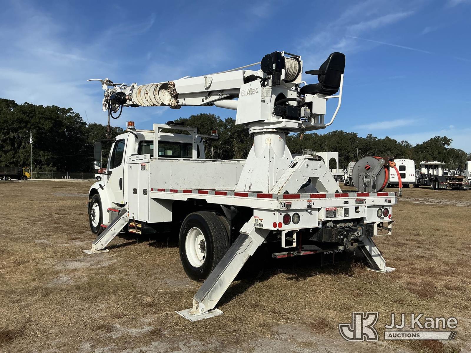 Altec DC47-TR, 23,790 Lb Digger Derrick s/n 0816FU2096, with 47 ft. sheave height, 3 section hyd boom, 2 spd digger, heel winch, pole guides, riding console & 4 hyd outriggers, rear mounted on 2017 Freightliner M2 106 Flatbed/Utility Truck, 6.7L L6 diesel, Auto, 4X2, A/C, (101,425 miles) (Runs, Moves & Operates)(Paint Issues) (Reads 7,005 hours) This is a Titled Item NOTE: This unit is being sold AS IS/WHERE IS via Timed Auction and is located in Thonotosassa, FL. Inspection & preview days for this unit are the 2 business days prior to the first day of items closing for this auction, item is located at 11720 N US 301 Thonotosassa, Fl 33592 and hours of operations are 8a-4p. For pre-sale questions, please contact Office Staff @ (813) 986-2485. (Buyer is responsible for removal. Assistance by consignor or JJ Kane Auctioneers is not assured.)