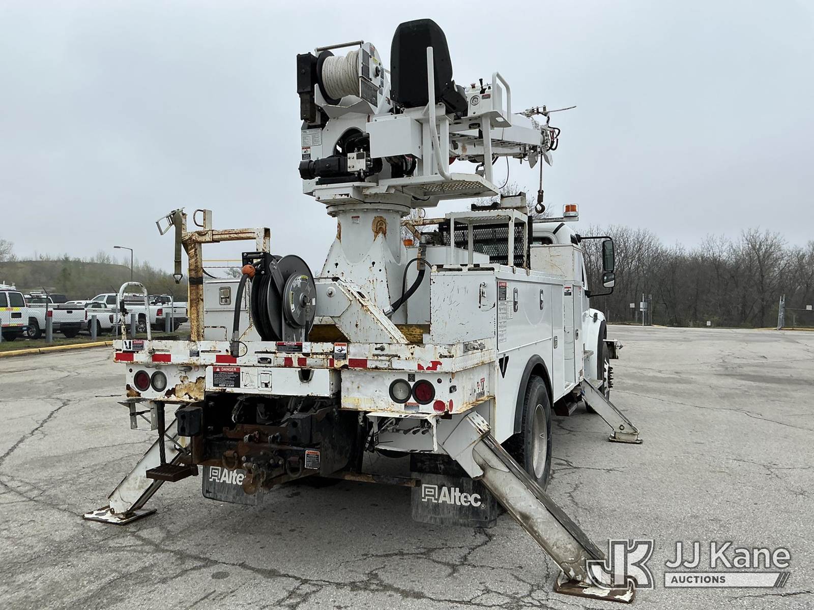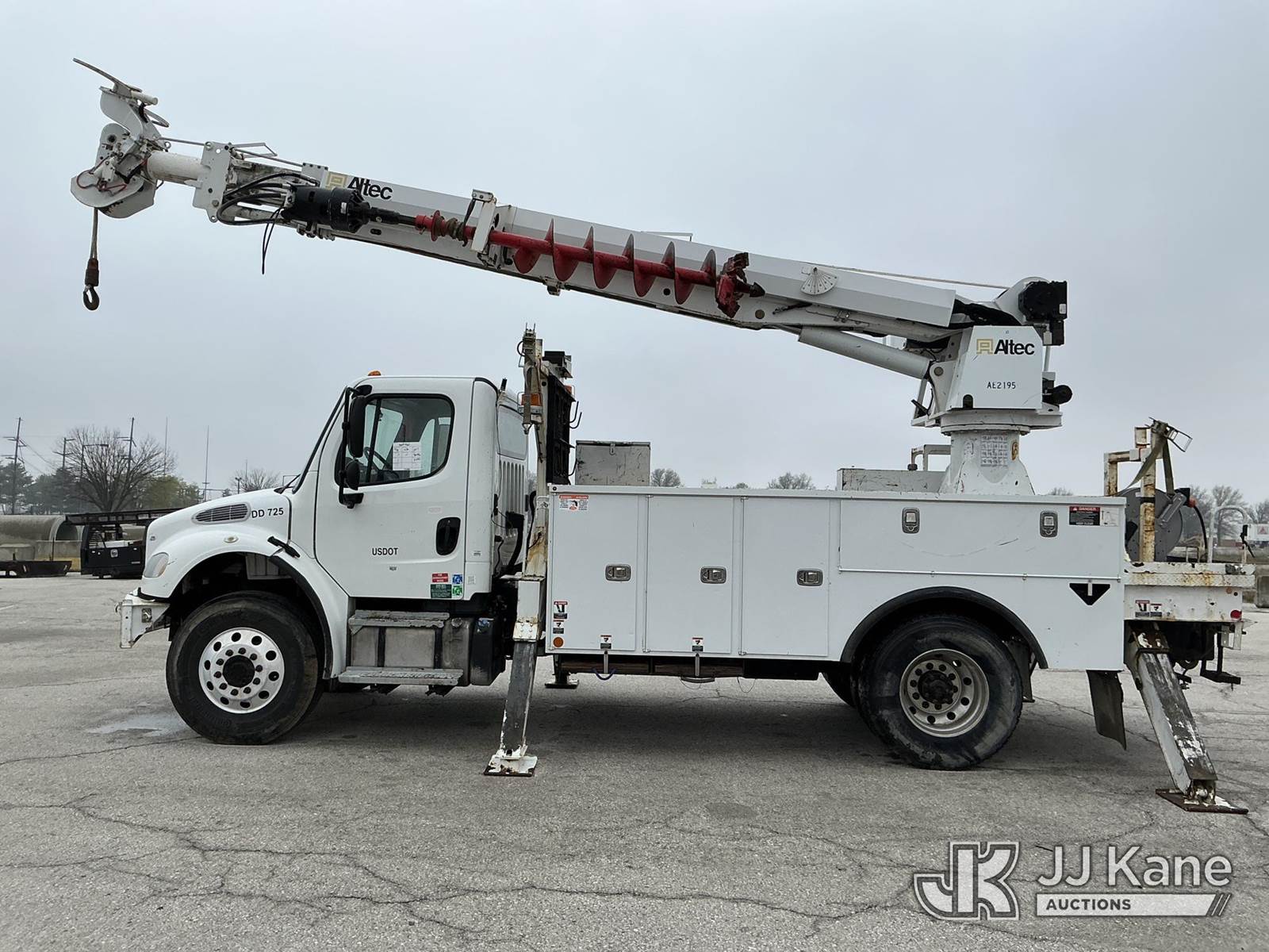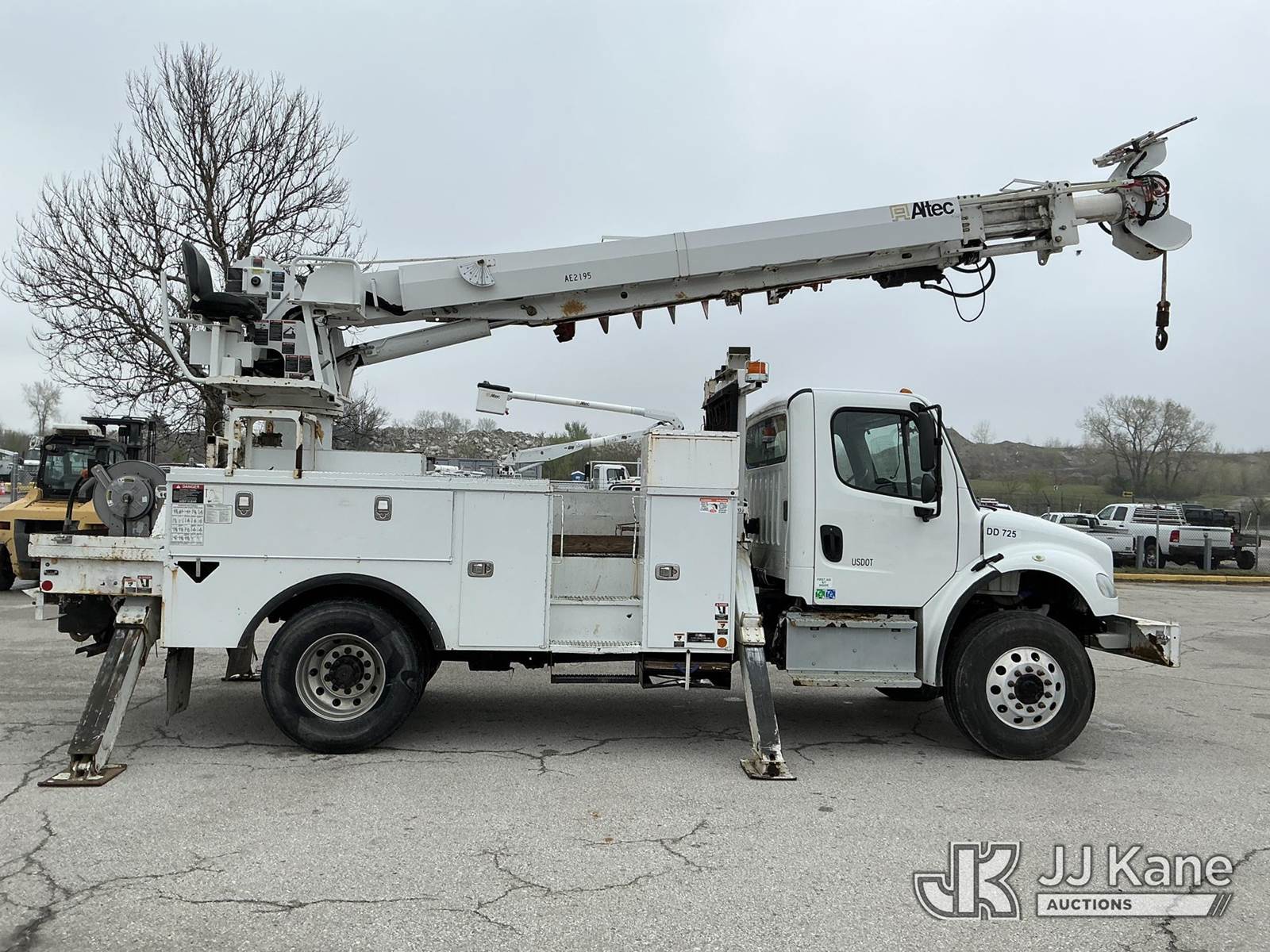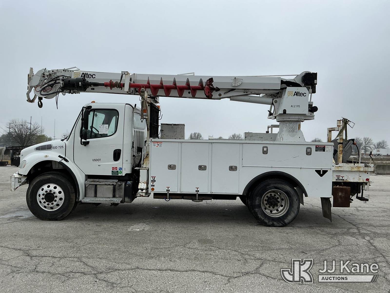 Altec DC47-TR, 23,790 Lb Digger Derrick s/n 0916EU2129, with 47 Ft. Sheave Height, Heel Winch, 2 Spd. Digger, Pole Guide, Riding Seat, 4 Hydraulic Outriggers, rear mounted on 2017 Freightliner M2 106 Utility Truck, 6.7L L6 DIESEL 4X4, Auto, A/C, (76,146 miles) (Runs, Moves & Upper Operates) (Seller States: Needs Tires, Front & Rear Bushings, Boom Flares, Dual Sheave At Boom, Rope Assembly, Auger Stow Bracket) (Reads 8,049 hours) This is a Titled Item NOTE: This unit is being sold AS IS/WHERE IS via Timed Auction and is located in Kansas City, MO. Inspection & preview days for this unit are the 2 business days prior to the first day of items closing for this auction, item is located at 962 Tel Aviv Ave Kansas City, MO 64153 and hours of operations are 8a-4p. For pre-sale questions, please contact Ricky McPherson @ (816) 610-2250. (Manuals provided in cab) (Buyer is responsible for removal. Assistance by consignor or JJ Kane Auctions is not assured.)