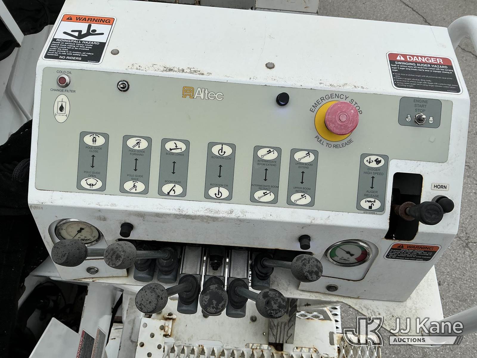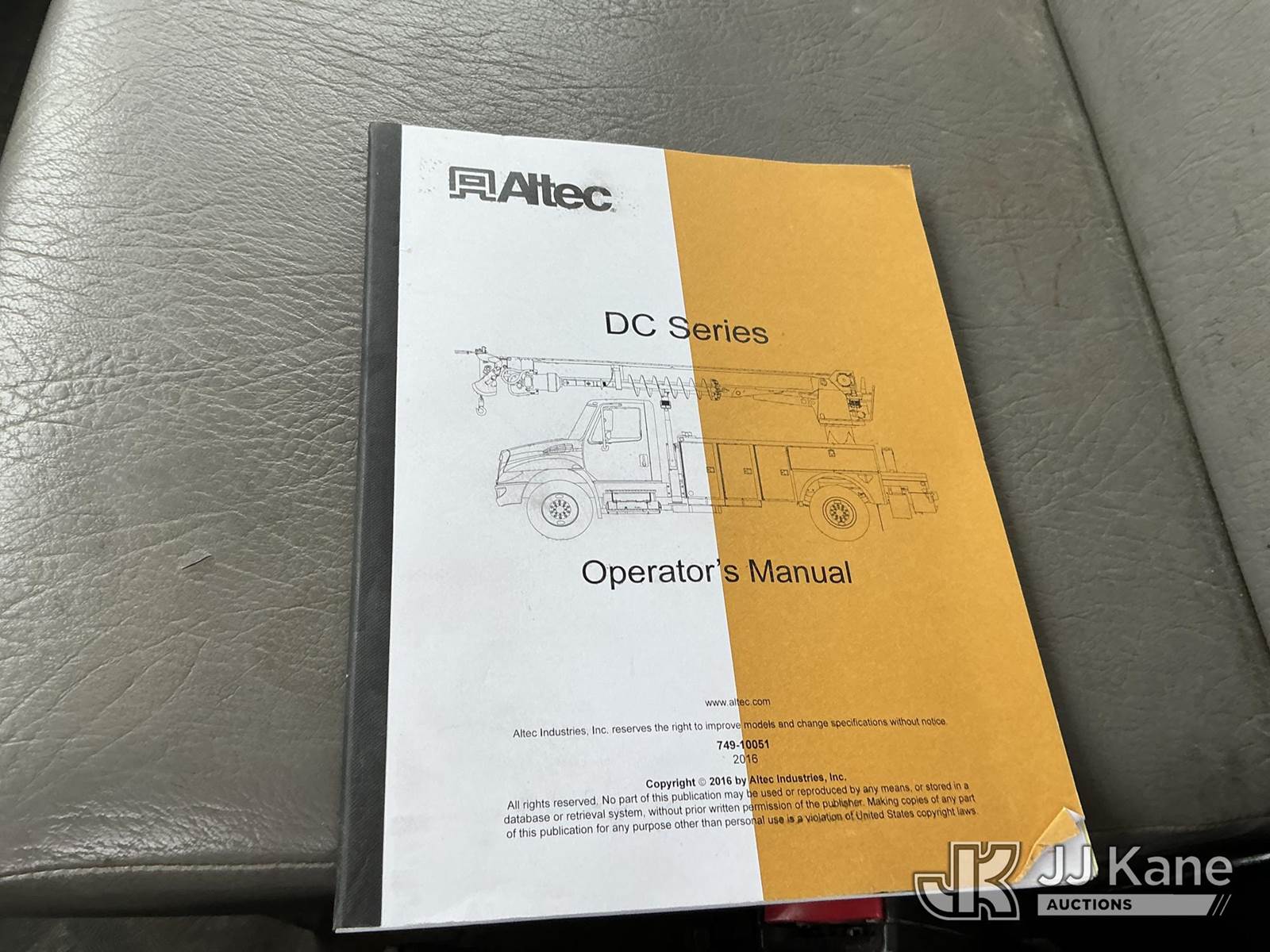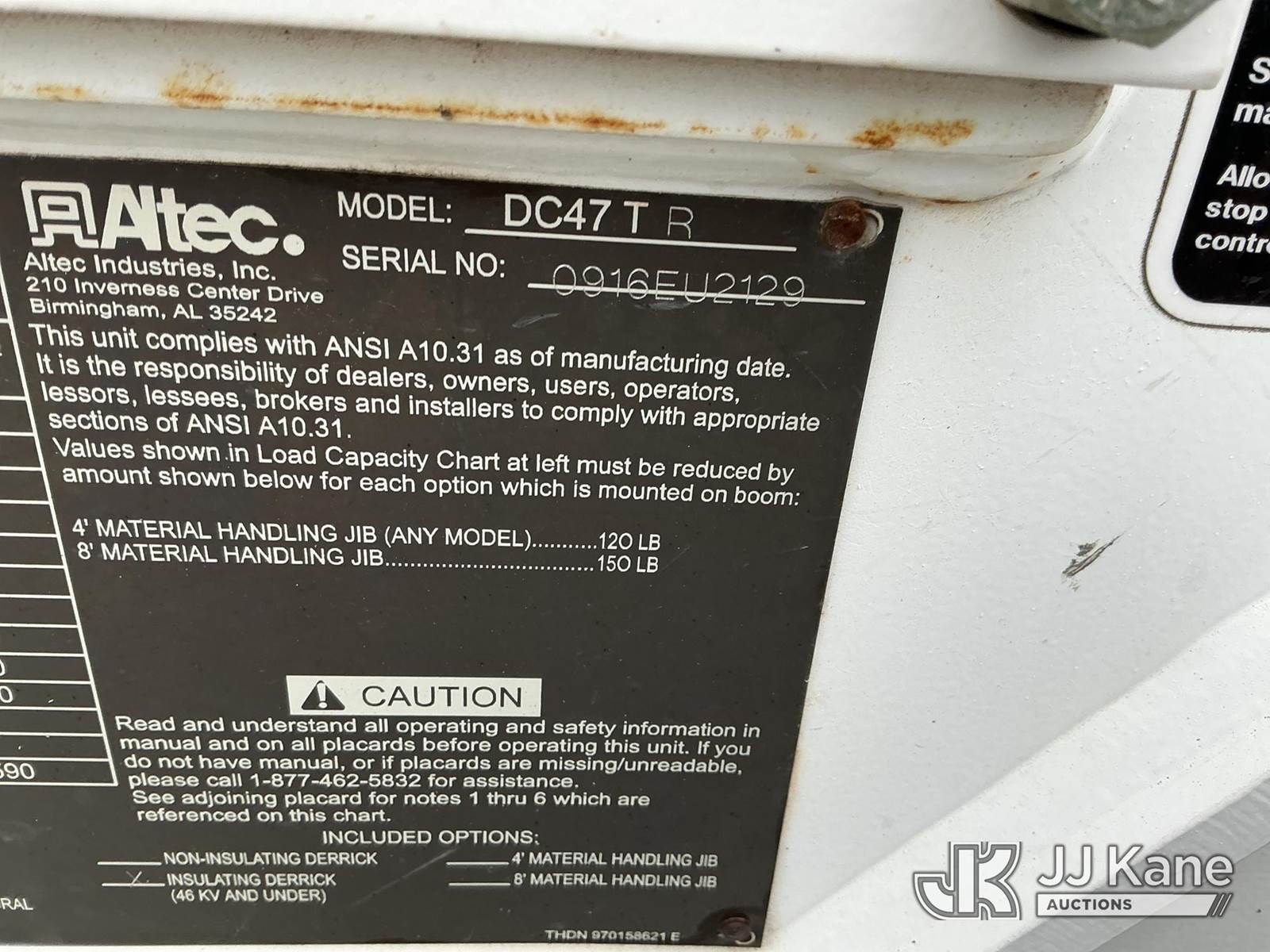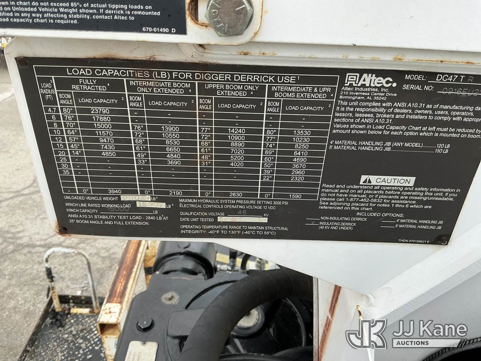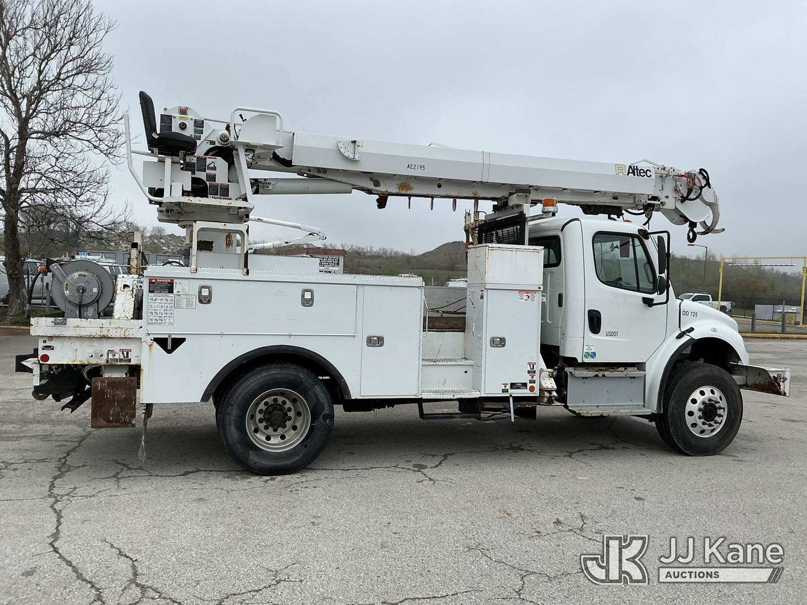 Altec DC47-TR, 23,790 Lb Digger Derrick s/n 0916EU2129, with 47 Ft. Sheave Height, Heel Winch, 2 Spd. Digger, Pole Guide, Riding Seat, 4 Hydraulic Outriggers, rear mounted on 2017 Freightliner M2 106 Utility Truck, 6.7L L6 DIESEL 4X4, Auto, A/C, (76,146 miles) (Runs, Moves & Upper Operates) (Seller States: Needs Tires, Front & Rear Bushings, Boom Flares, Dual Sheave At Boom, Rope Assembly, Auger Stow Bracket) (Reads 8,049 hours) This is a Titled Item NOTE: This unit is being sold AS IS/WHERE IS via Timed Auction and is located in Kansas City, MO. Inspection & preview days for this unit are the 2 business days prior to the first day of items closing for this auction, item is located at 962 Tel Aviv Ave Kansas City, MO 64153 and hours of operations are 8a-4p. For pre-sale questions, please contact Ricky McPherson @ (816) 610-2250. (Manuals provided in cab) (Buyer is responsible for removal. Assistance by consignor or JJ Kane Auctions is not assured.)