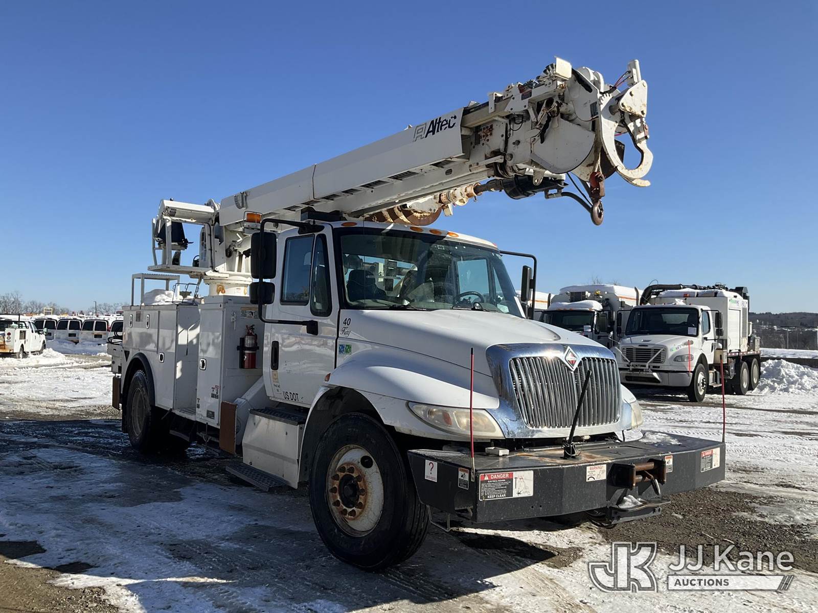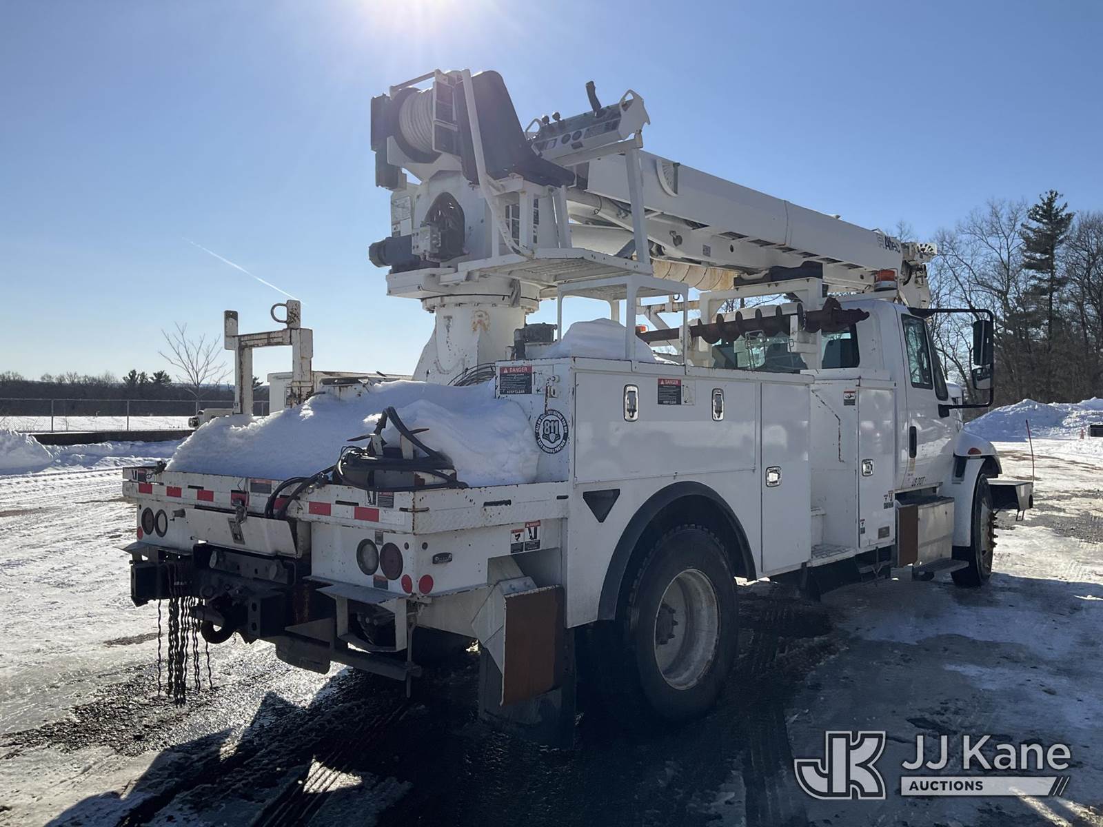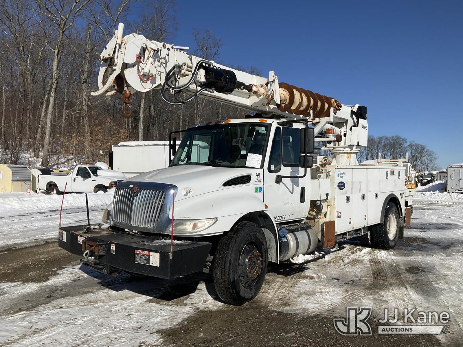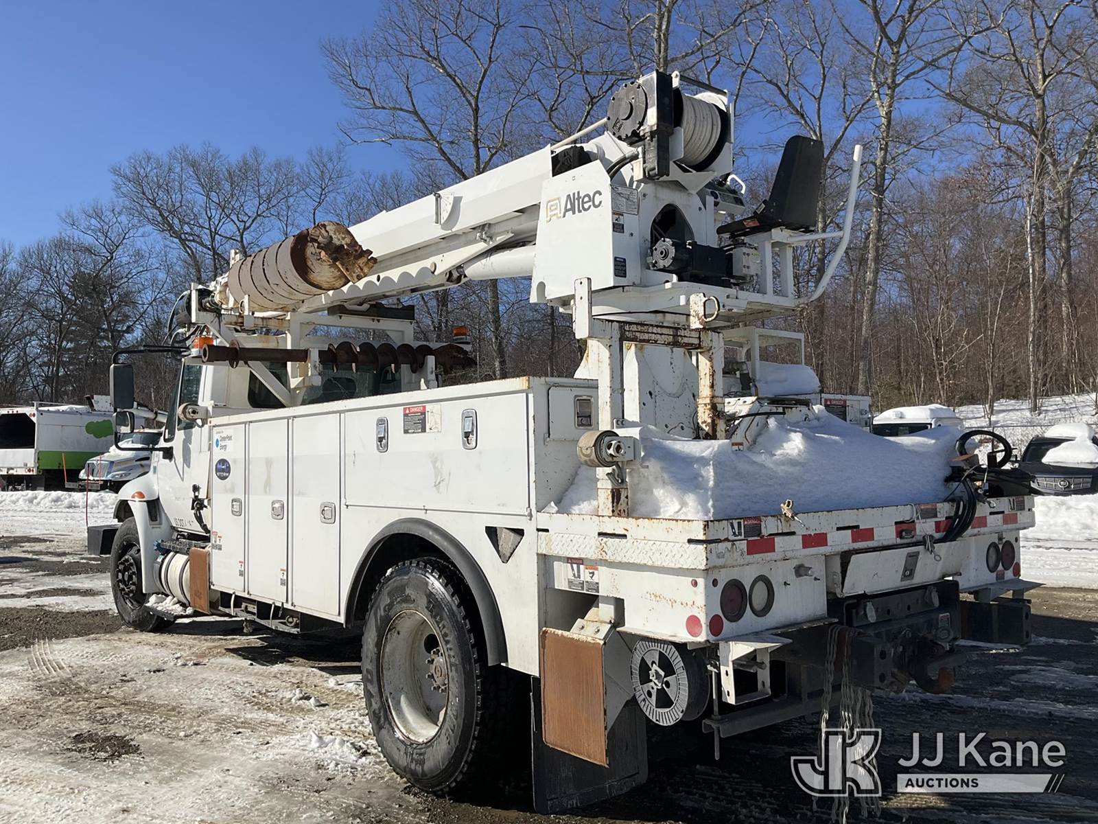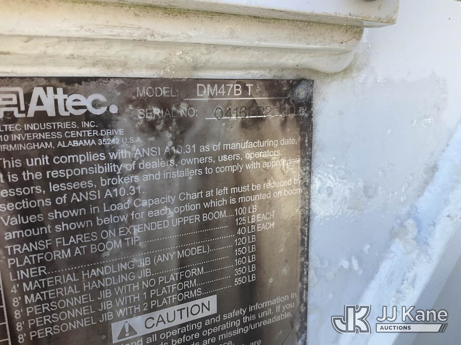 Altec DM47-BTR, 23,790 Lb Digger Derrick s/n 0416FR2390, with 45 ft sheave height. 3 section hyd boom, heel winch, pole guides, ride on controls & 4 hyd outriggers, rear mounted on 2017 International DuraStar 4300 Utility Truck, Cummins 6.7L 4X2, diesel, Auto, A/C, (69,857 miles) (Runs & Moves) (Upper Condition Unknown, No Response From Outrigger Controls) (Reads 7,697 hours) This is a Titled Item NOTE: This unit is being sold AS IS/WHERE IS via Timed Auction and is located in Shrewsbury, MA. Inspection & preview days for this unit are the 2 business days prior to the first day of items closing for this auction, item is located at 11 Fortune Blvd Shrewsbury, MA 01545 and hours of operations are 8a-4p. For pre-sale questions, please contact Rob Gifford @ (508) 864-4126. (Manuals provided in cab) (Buyer is responsible for removal. Assistance by consignor or JJ Kane Auctions is not assured.)