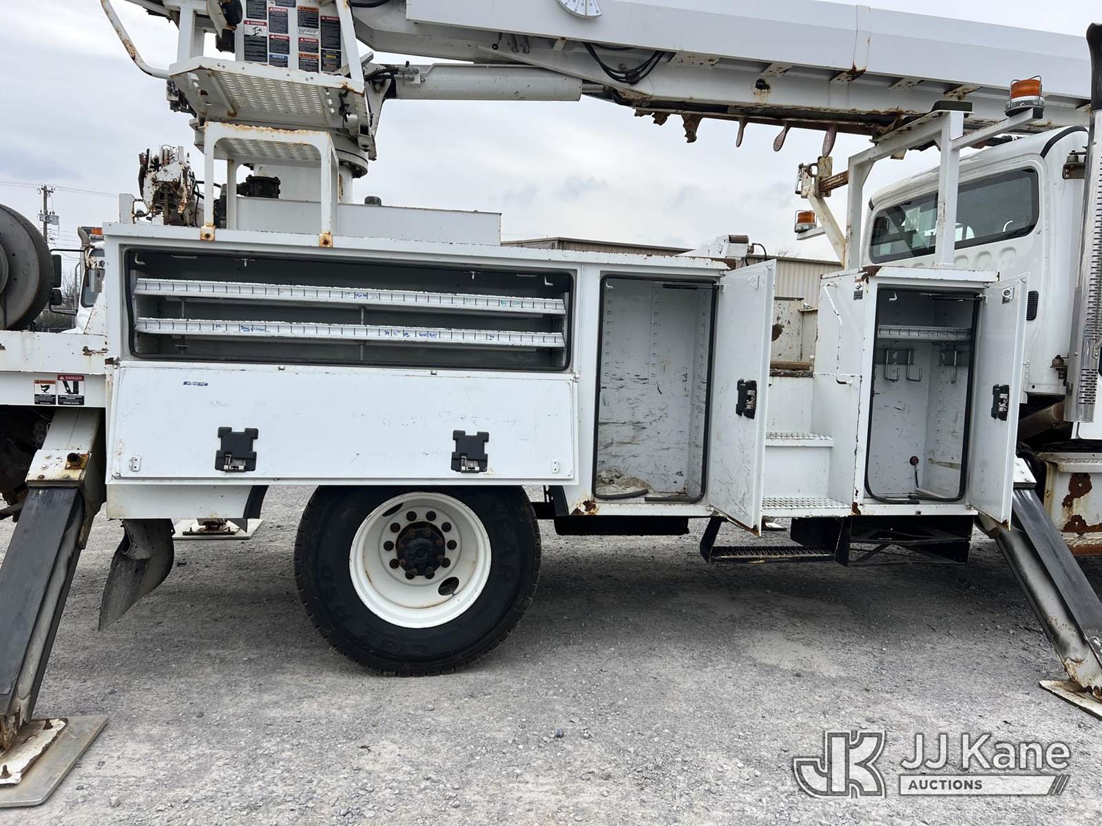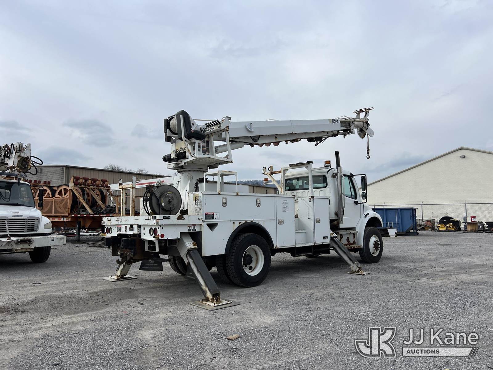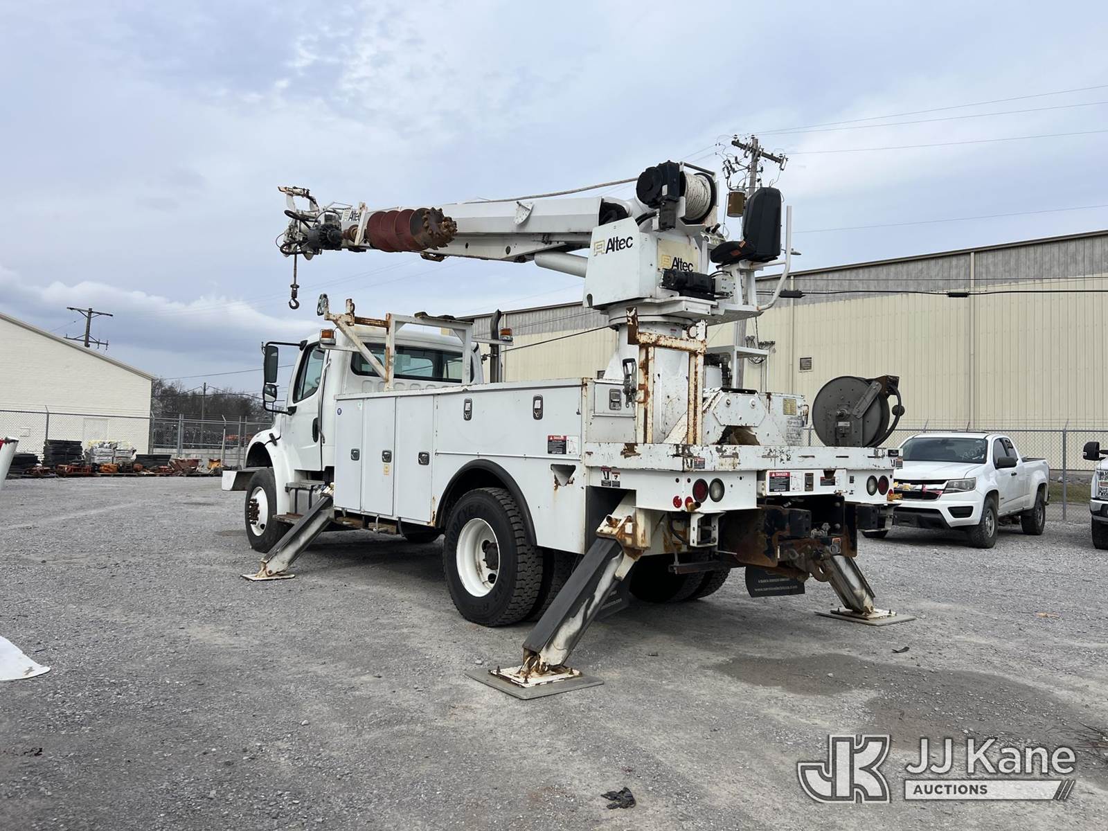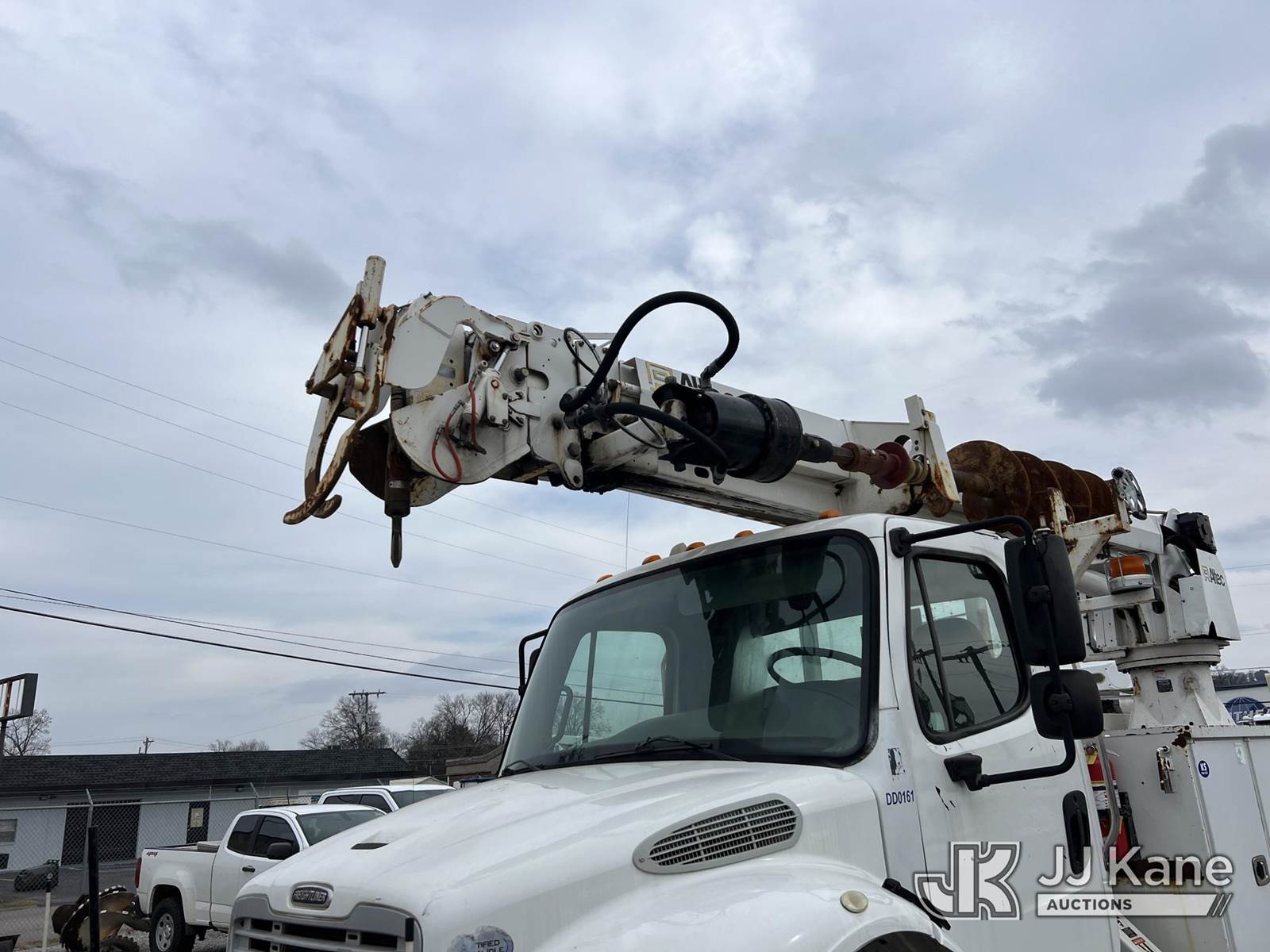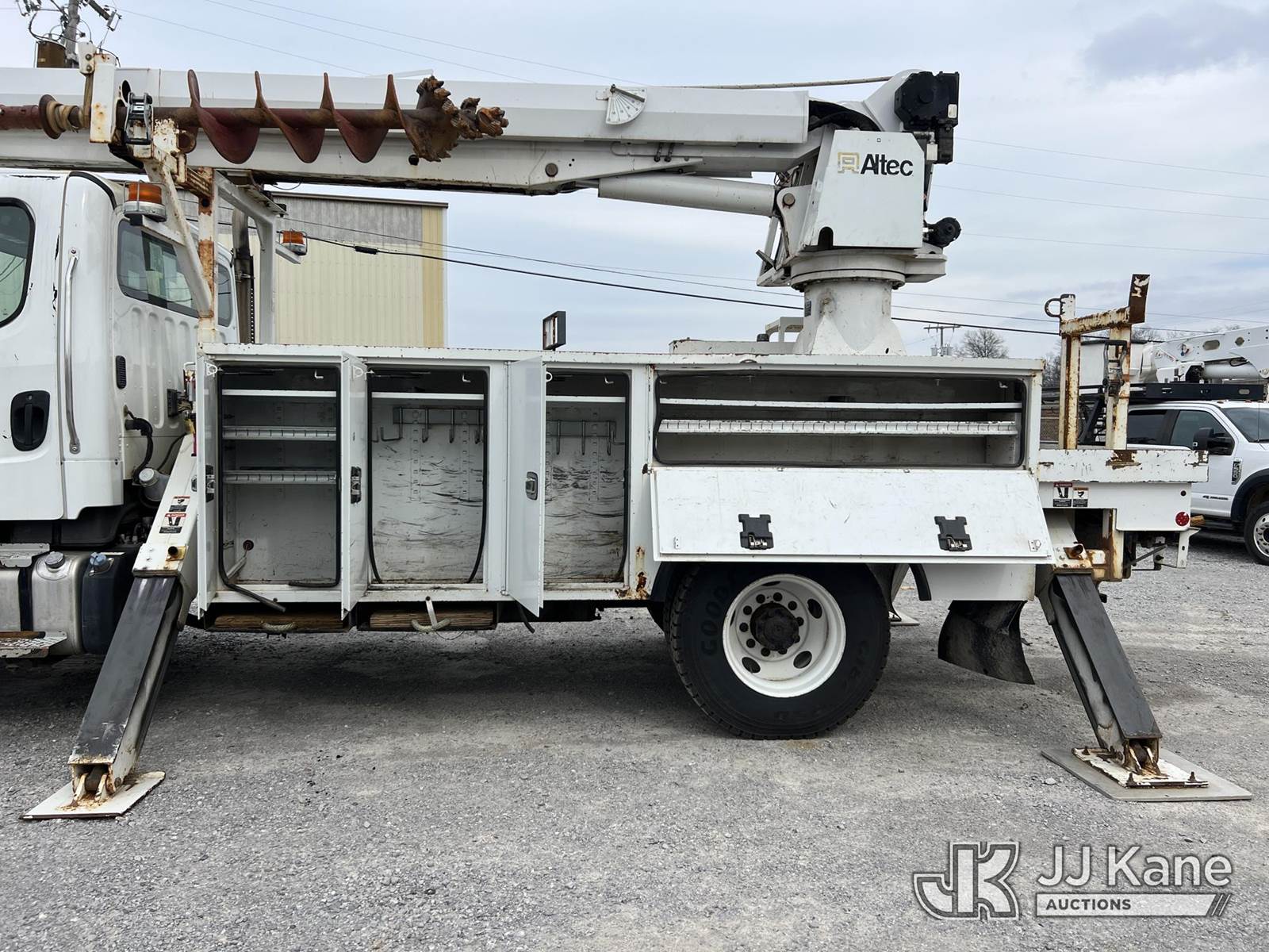 Altec DM47B TR, 23,790 Lb Digger Derrick s/n 0716FR2650, with 47 ft sheave height, 3 section hyd boom, 2-spd digger, heel winch, pole guides, riding console & 4 hyd outriggers, rear mounted on 2017 Freightliner M2 106 4x4 Utility Truck, Cummins ISB 6.7L Auto, A/C, with front winch, (99,772 miles) (Runs, Moves & Upper Operates) (ABS Light On, Body/Rust Damage) This is a Titled Item NOTE: This unit is being sold AS IS/WHERE IS via Timed Auction and is located in Chattanooga, TN. For more information & removal arrangements please contact Dylan Evans @ 205-936-1094. (Manuals provided in cab) (Buyer is responsible for removal. Assistance by consignor or JJ Kane Auctions is not assured.)