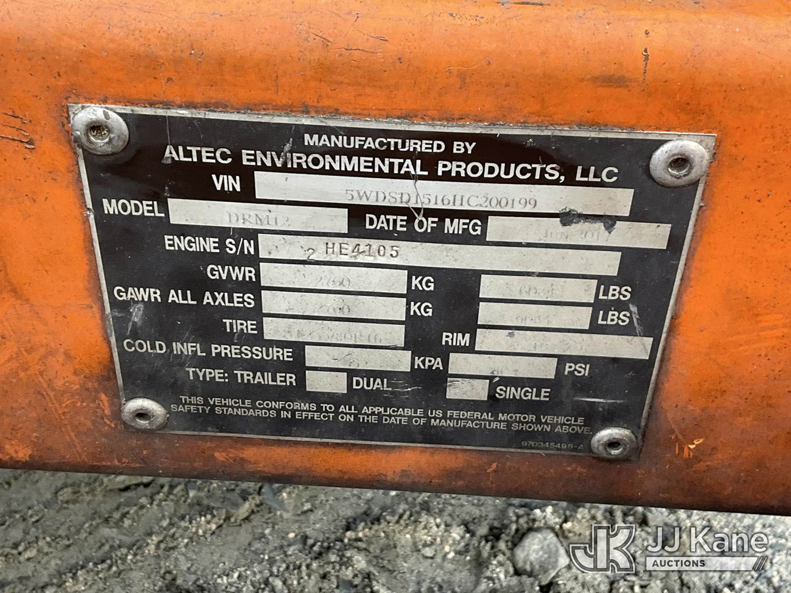 2017 Altec DRM12 Chipper (12in Drum), s/n 5WDSD1516HC200199, Kubota diesel, (CERTIFICATE OF ORIGIN No Title) (Not Running, Condition Unknown) (Seller States: Injector Pump Needs Replaced) (Reads 728 hours) NOTE: This unit is being sold AS IS/WHERE IS via Timed Auction and is located in China Grove, NC. Inspection & preview days for this unit are the 2 business days prior to the first day of items closing for this auction, item is located at 820 E NC Hwy 152 China Grove, NC 28023 and hours of operations are 8a-4p. For pre-sale questions, please contact Office Staff @ (704) 674-1113. (Buyer is responsible for removal. Assistance by consignor or JJ Kane Auctions is not assured.)
