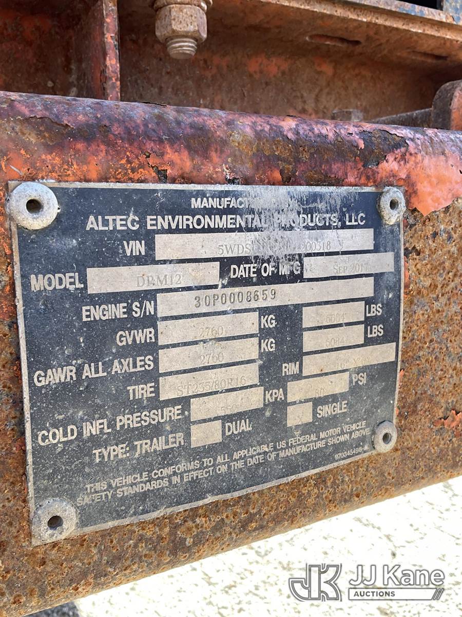 2017 Altec DRM12 Chipper (12in Drum), s/n 5WDSD151XHC200318, 4-cyl gas, (4.17.26 Certificate of Origin No Title) (Ignition Switch Damage-Unable To Turn Key-Condition Unknown) (Seller States: Needs New Clutch) (Reads 1,780 hours) NOTE: This unit is being sold AS IS/WHERE IS via Timed Auction and is located in South Beloit, IL. Inspection & preview days for this unit are the 2 business days prior to the first day of items closing for this auction, item is located at 14354 Dearborn Ave South Beloit, IL and hours of operations are 8a-4p. For pre-sale questions, please contact Derek Eklund at (608) 904-0618 or (derek.eklund@jjkane.com). (Buyer is responsible for removal. Assistance by consignor or JJ Kane Auctions is not assured.)