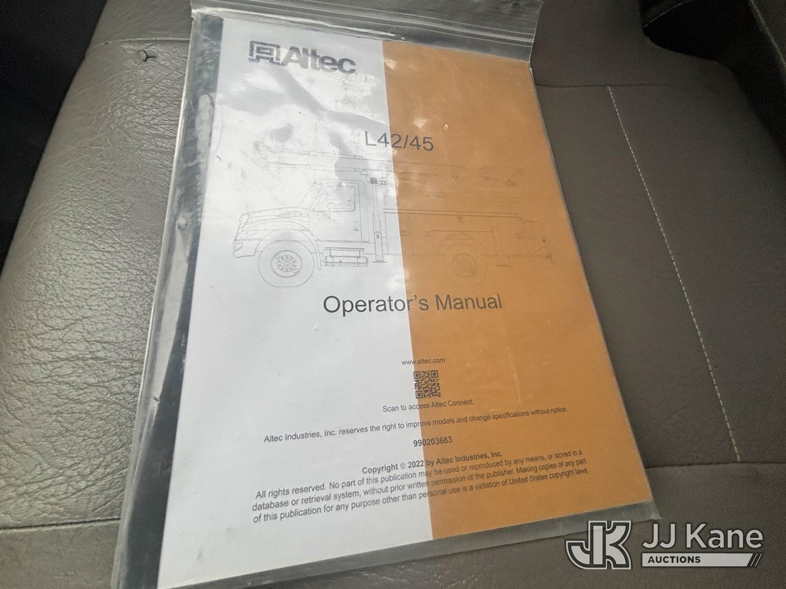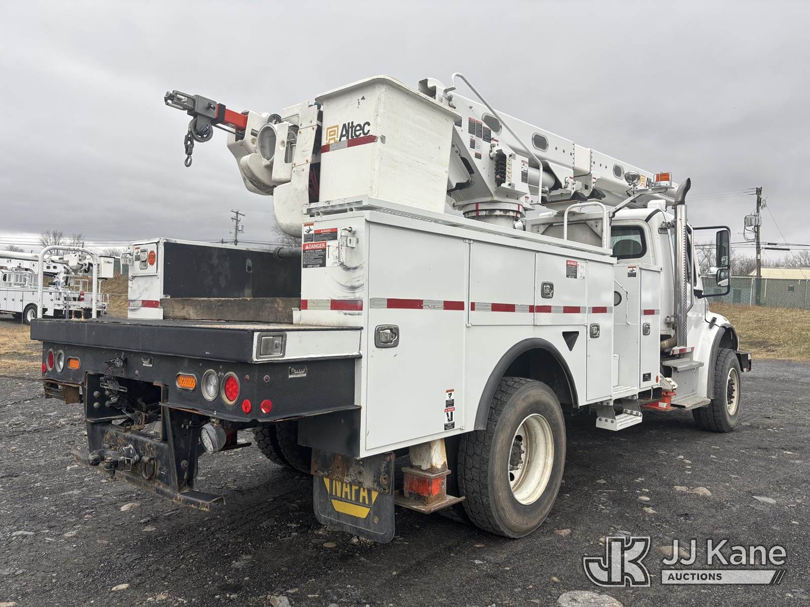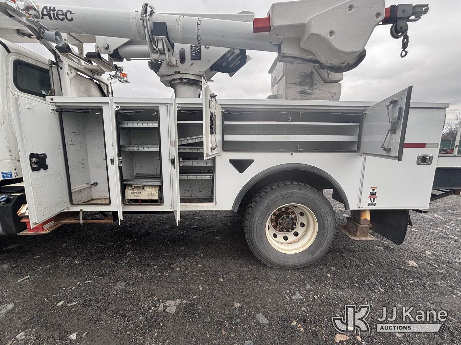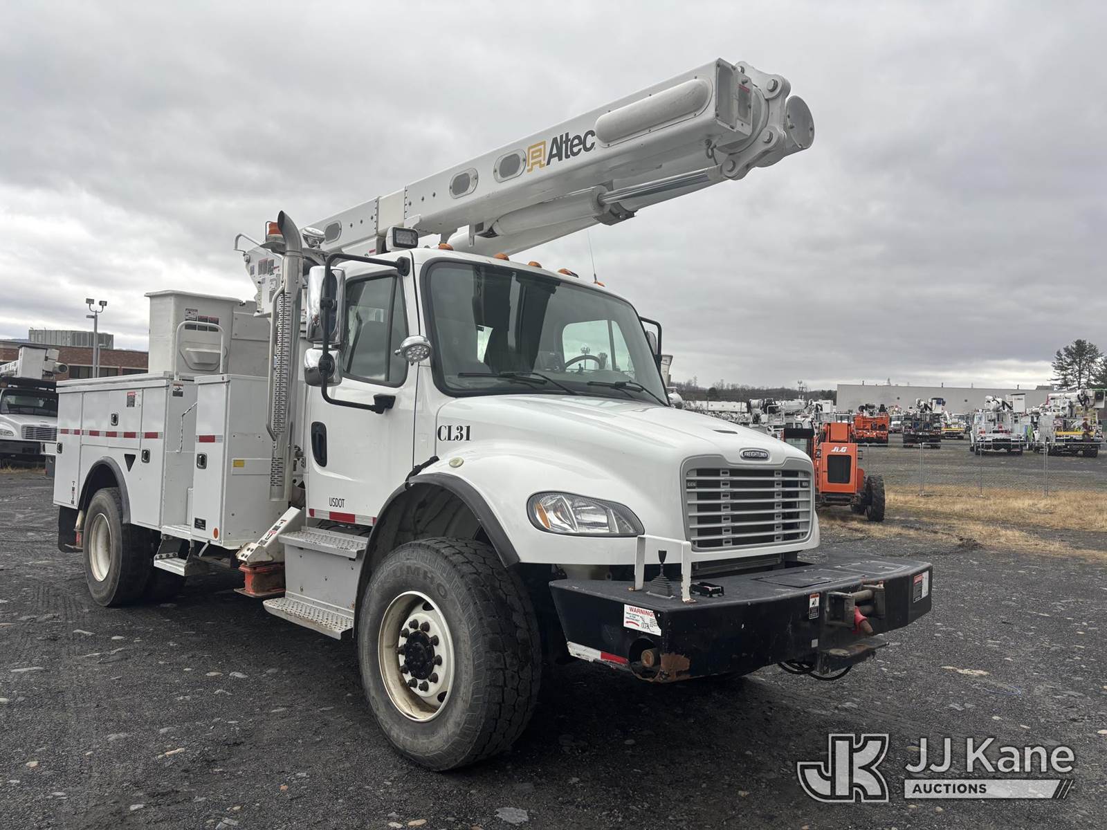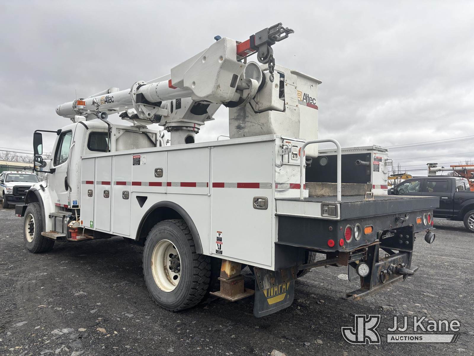Altec L45M, 50 ft, Over-Center Material Handling Bucket Truck s/n 1016DQ1144, with single man bucket & 4 hyd outriggers, center mounted on 2017 Freightliner M2 106 4x4 Utility Truck, 6.7L L6 Diesel, Auto, A/C, with Front End Winch With Cable Winch & Inverter, (75,341 miles) (Runs & Moves, Does Not Operate, PTO Does Not Engage, Condition Unknown, Scratches, Dings, & Dents, Bad Main Boom Bearings, Booms Tip Covers Damaged, Rust Across Body) (Reads 6,037 hours) This is a Titled Item NOTE: This unit is being sold AS IS/WHERE IS via Timed Auction and is located in Plains, PA. Inspection & preview days for this unit are the 2 business days prior to the first day of items closing for this auction, item is located at 250 Laird St Plains, PA 18705 and hours of operations are 8a-4p.For pre-sale questions, please contact Mary Darlington @ (570) 899-4930 or Mary.Darlington@JJKane.com. (Missing manuals, See Auction Company for Manufacturers Information to obtain manuals) (Buyer is responsible for removal. Assistance by consignor or JJ Kane Auctions is not assured.)