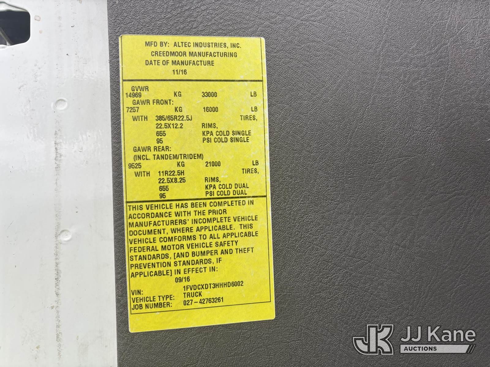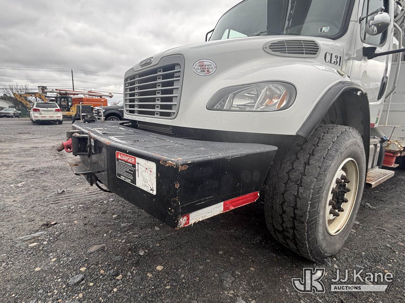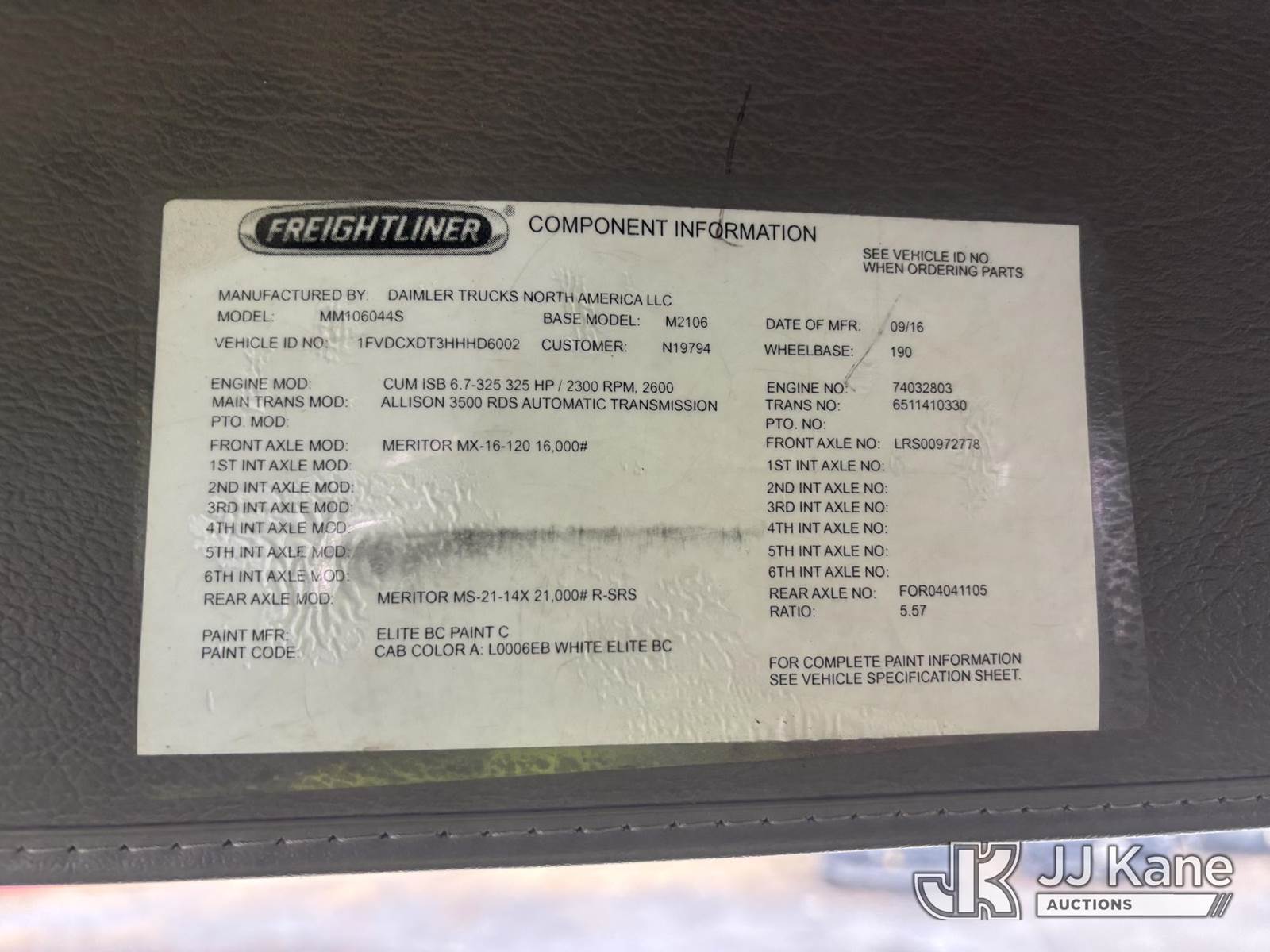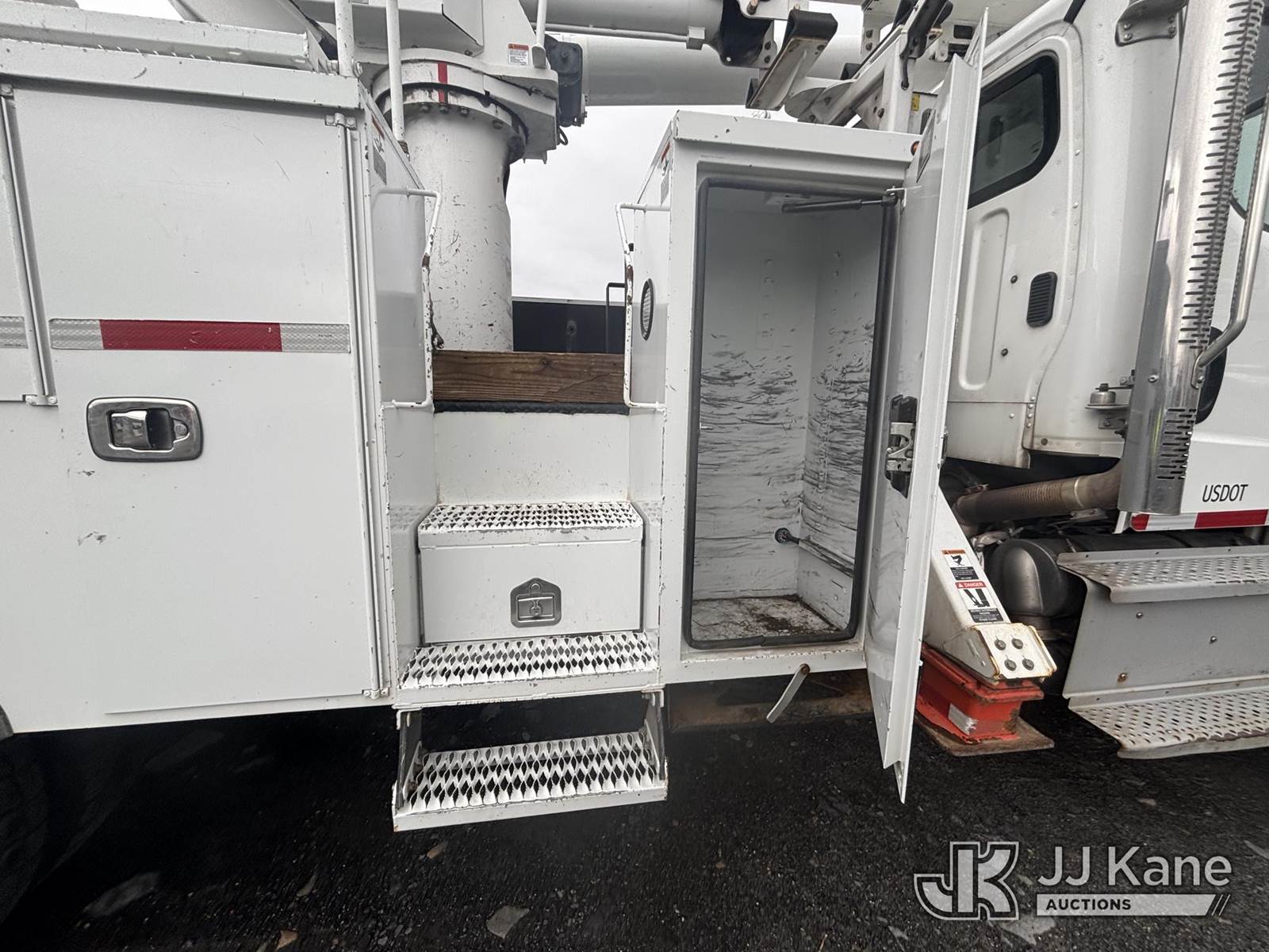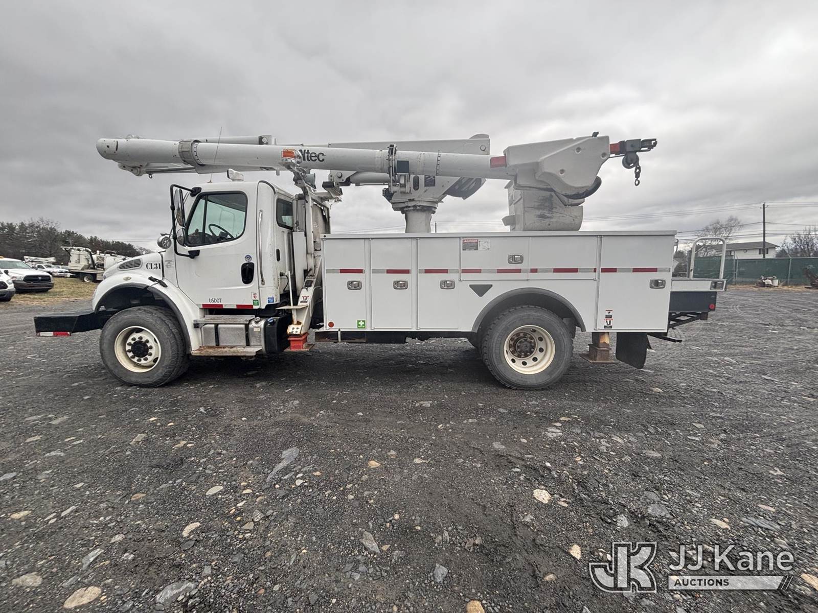 Altec L45M, 50 ft, Over-Center Material Handling Bucket Truck s/n 1016DQ1144, with single man bucket & 4 hyd outriggers, center mounted on 2017 Freightliner M2 106 4x4 Utility Truck, 6.7L L6 Diesel, Auto, A/C, with Front End Winch With Cable Winch & Inverter, (75,341 miles) (Runs & Moves, Does Not Operate, PTO Does Not Engage, Condition Unknown, Scratches, Dings, & Dents, Bad Main Boom Bearings, Booms Tip Covers Damaged, Rust Across Body) (Reads 6,037 hours) This is a Titled Item NOTE: This unit is being sold AS IS/WHERE IS via Timed Auction and is located in Plains, PA. Inspection & preview days for this unit are the 2 business days prior to the first day of items closing for this auction, item is located at 250 Laird St Plains, PA 18705 and hours of operations are 8a-4p.For pre-sale questions, please contact Mary Darlington @ (570) 899-4930 or Mary.Darlington@JJKane.com. (Missing manuals, See Auction Company for Manufacturers Information to obtain manuals) (Buyer is responsible for removal. Assistance by consignor or JJ Kane Auctions is not assured.)