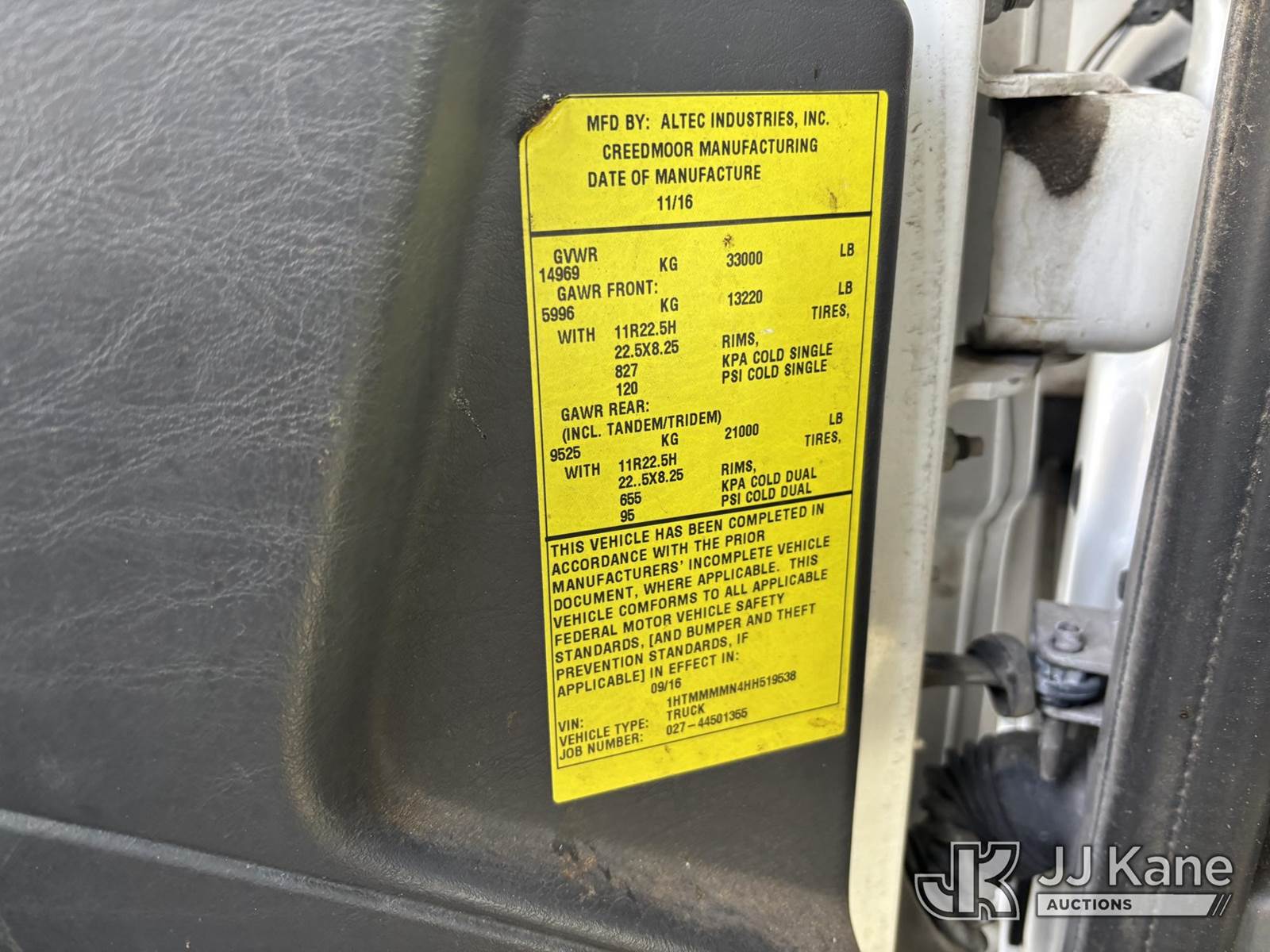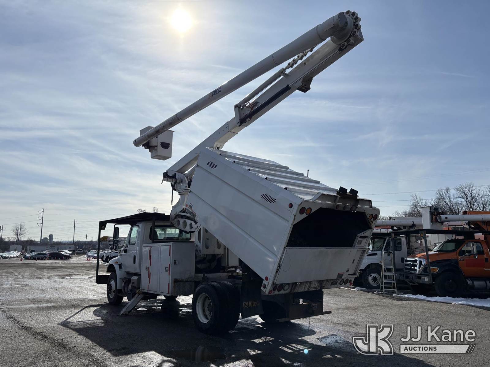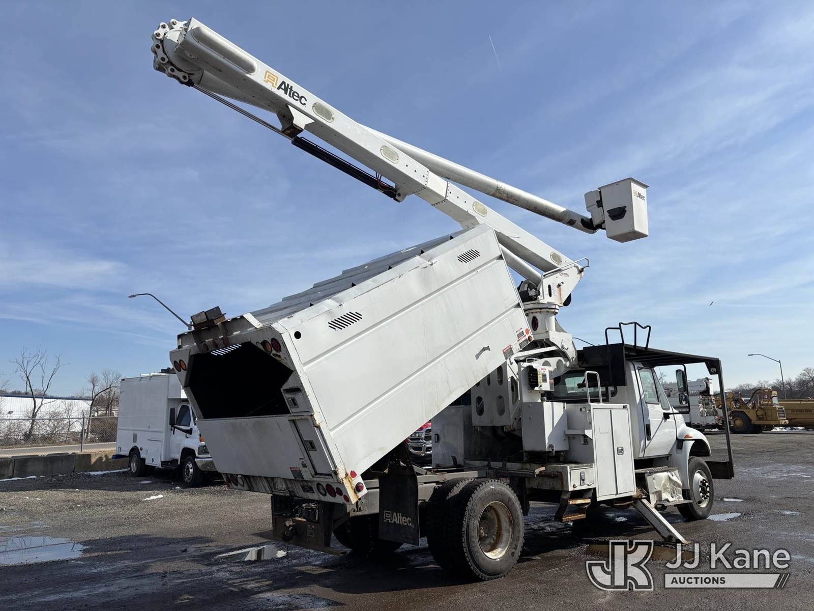 Altec LR7-60E70, 75 ft, Over-Center Elevator Bucket Truck s/n 1116FF5713, with single-man bucket, mounted behind cab on 2017 International 4300 Chipper Dump Truck, Cummins diesel, Auto, A/C, with 11ft Body, (36,455 miles) (Runs, Moves & Upper Operates, Dent In Cab Corner, Dent In Exhaust Shield) This is a Titled Item NOTE: This unit is being sold AS IS/WHERE IS via Timed Auction and is located in Plymouth Meeting, PA. Inspection & preview days for this unit are the 2 business days prior to the first day of items closing for this auction, item is located at 1402 Conshohocken Rd Plymouth Meeting, PA 19462 and hours of operations are 8a-4p. For pre-sale questions, please contact Bruce Thomas @ (267) 887-0392 or bruce.thomas.jr@jjkane.com. (Manuals provided in cab) (Buyer is responsible for removal. Assistance by consignor or JJ Kane Auctions is not assured.)