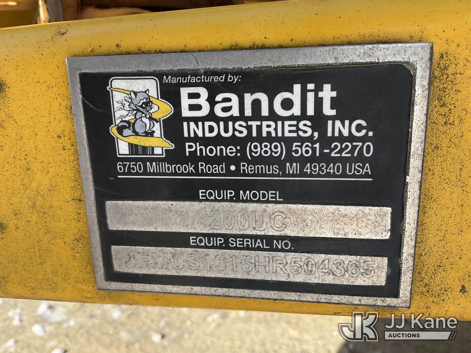 2017 Bandit 200UC Chipper (12in Disc), s/n 4FMUS1615HR504365, Kohler diesel, (No Title) (Not Running, No Crank, Missing Engine Covers) (Reads 1,688 hours) NOTE: This unit is being sold AS IS/WHERE IS via Timed Auction and is located in Shrewsbury, MA. Inspection & preview days for this unit are the 2 business days prior to the first day of items closing for this auction, item is located at 11 Fortune Blvd Shrewsbury, MA 01545 and hours of operations are 8a-4p. For pre-sale questions, please contact Rob Gifford @ (508) 864-4126. (Buyer is responsible for removal. Assistance by consignor or JJ Kane Auctions is not assured.)