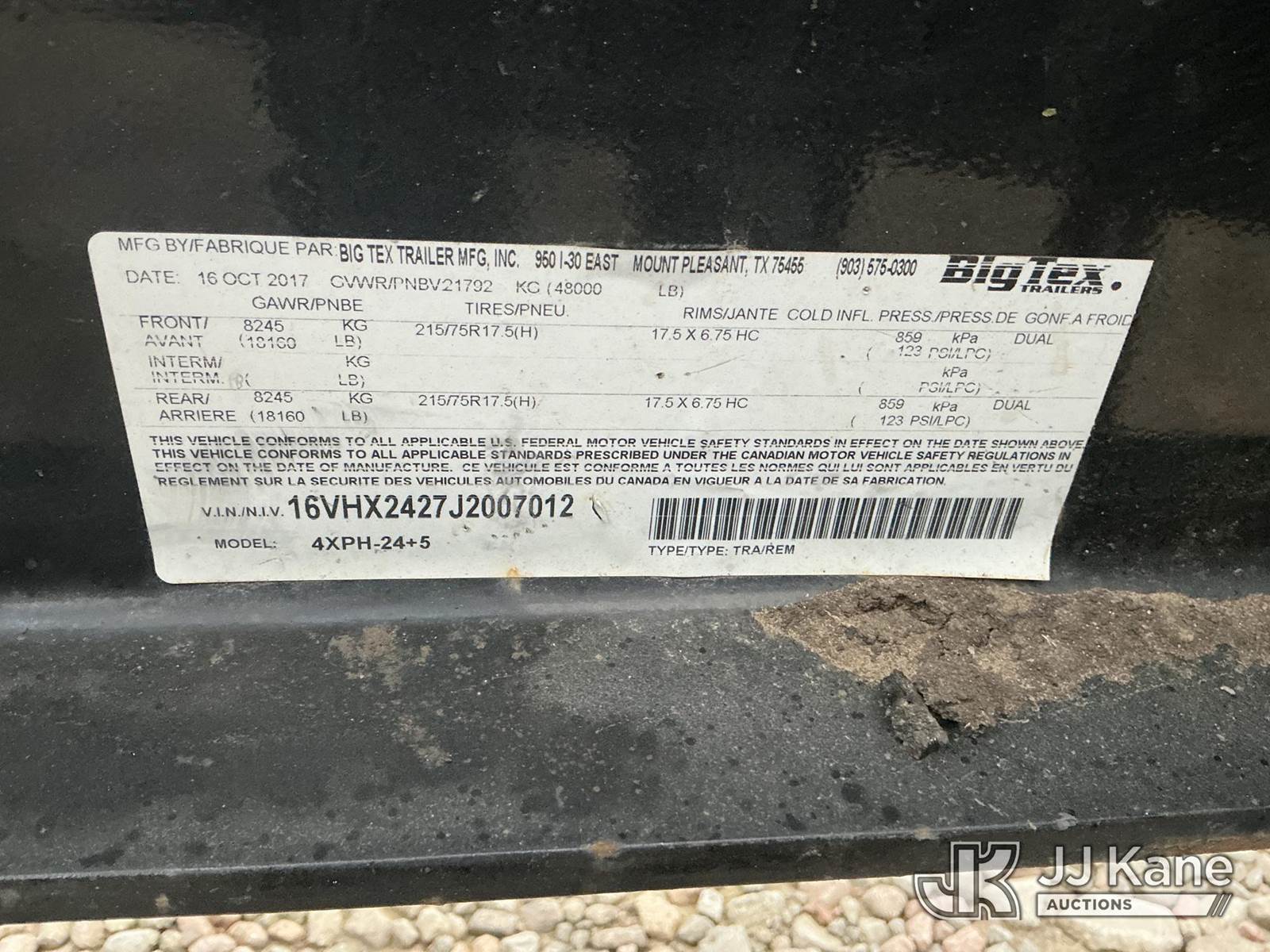 2017 Big Tex 4XPH-25+5 Equipment Trailer, with Air brakes, pintle hitch, This is a Titled Item NOTE: This unit is being sold AS IS/WHERE IS via Timed Auction and is located in Dixon, CA. Inspection & preview days for this unit are the 2 business days prior to the first day of items closing for this auction, item is located at 8668 Sparling Ln Dixon, CA 95620 and hours of operations are 8a-4p. For pre-sale questions, please contact JJ Kane Staff at (707) 678-8060 (dixon@jjkane.com). Dealer License Number 45696. (Buyer is responsible for removal. Assistance by consignor or JJ Kane Auctions is not assured.)
