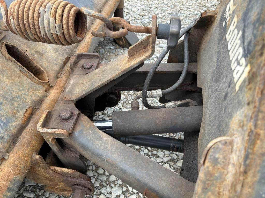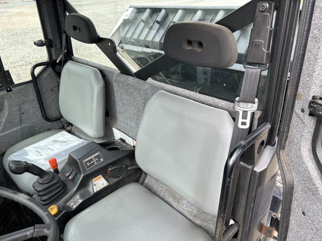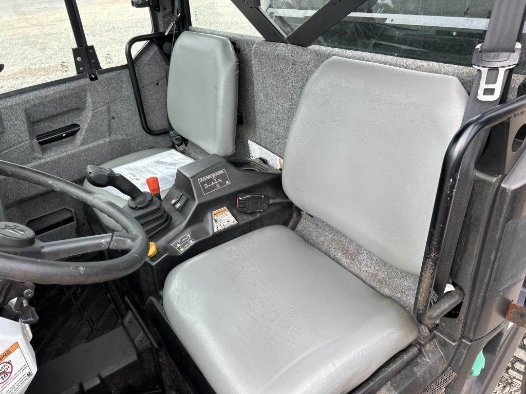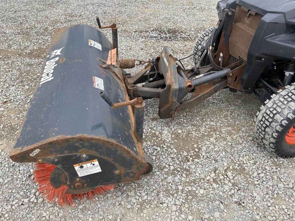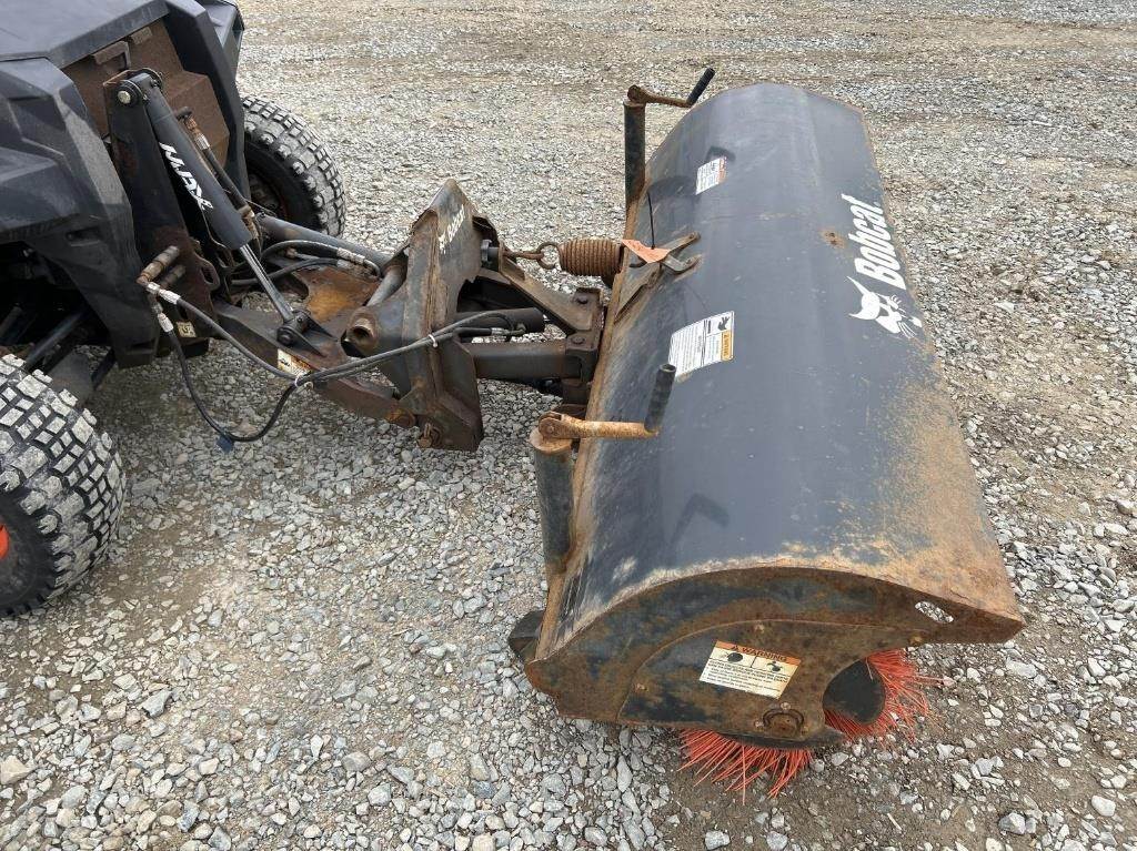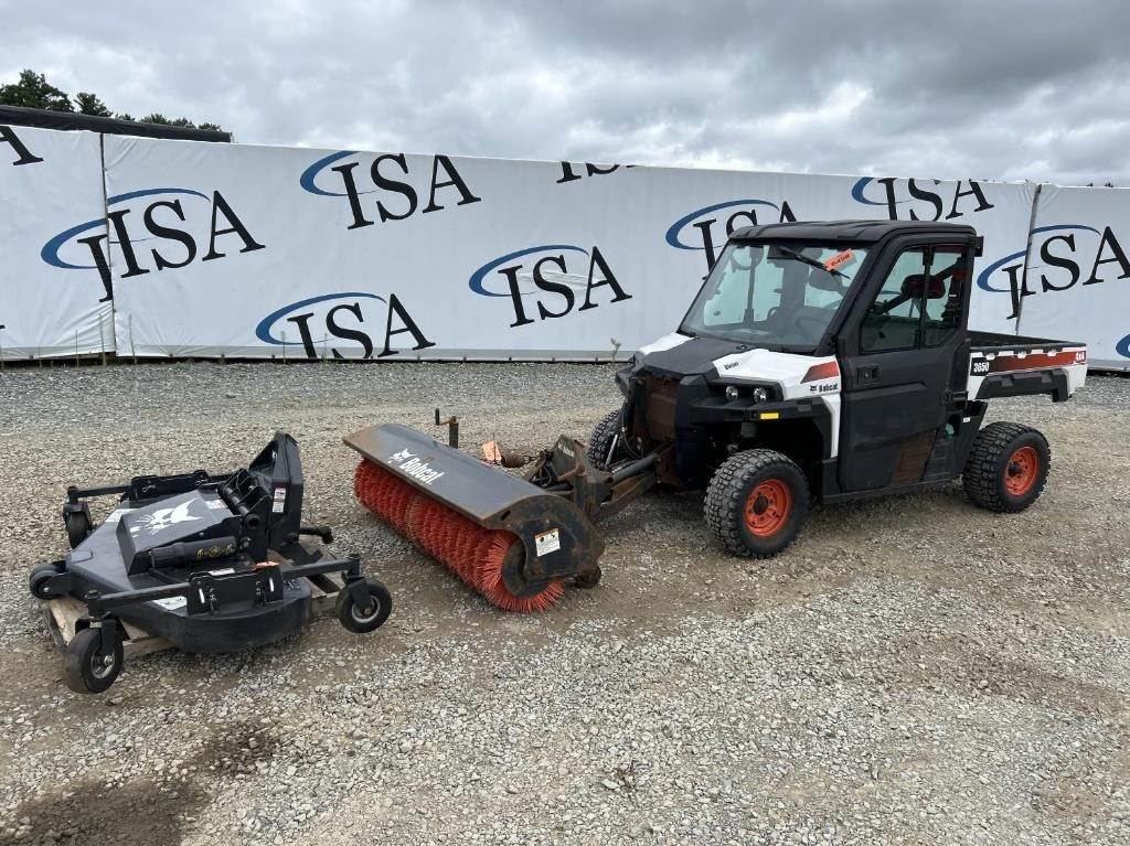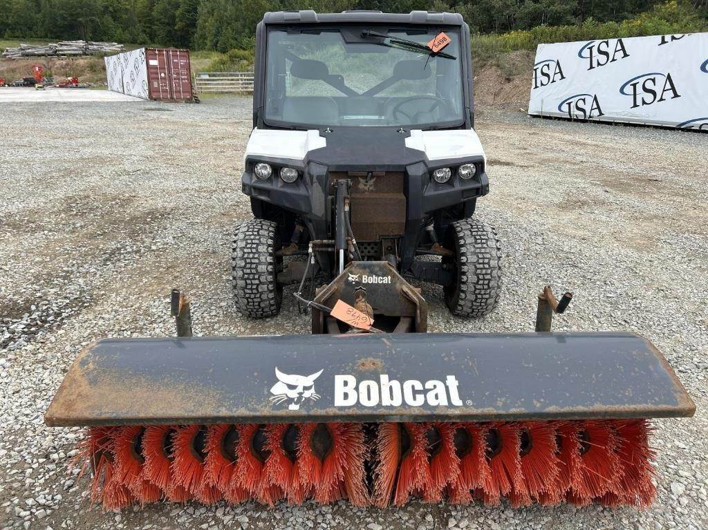 Location: ISA Yard: Merrill, WI Kohler Single Cylinder 1028cc Diesel Engine, Hydrostatic Transmission, 4x4, PTO, Hydraulic Box Tilt, Approx. 48" Box Length, 2" Receiver Hitch, EROPS, Joystick Control, Heat/AC, 25x10.00-12, Approx. 72" Bobcat Hydraulic Sweeper, 66" Bobcat Mower, Bill Of Sale Only VIN / Serial: AW4400641