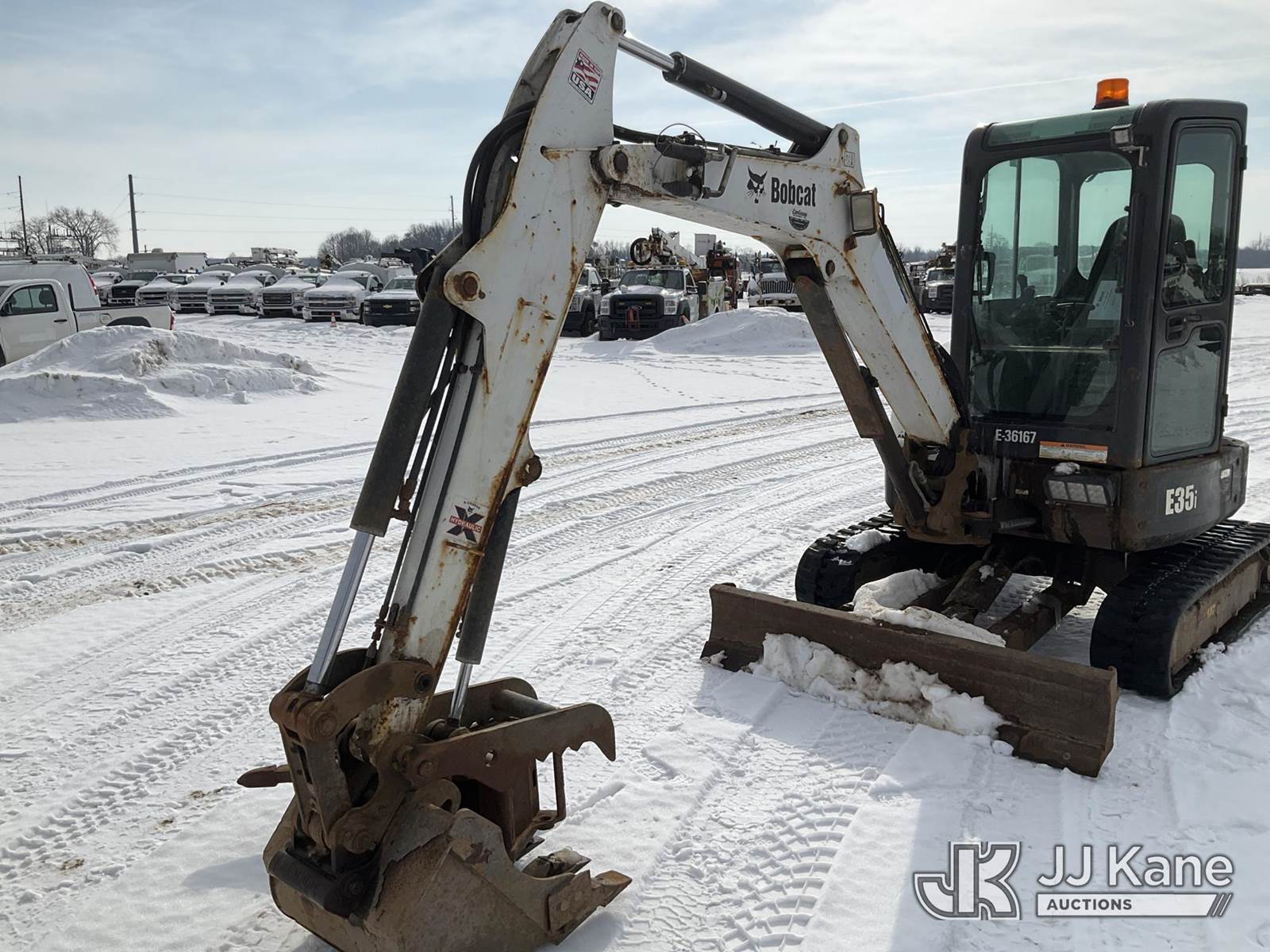 2017 Bobcat E35 Mini Hydraulic Excavator, s/n AUYM14094, Kubota diesel, Hydraulic Drive, A/C, with hydraulic thumb attachment, pick attachment, rubber tracks, backfill blade with hydraulic angle, auxiliary hydraulics, EROPS, (Runs, Moves & Operates) (Reads 1,757 hours) NOTE: This unit is being sold AS IS/WHERE IS via Timed Auction and is located in Charlotte, MI. Inspection & preview days for this unit are the 2 business days prior to the first day of items closing for this auction, item is located at 750 Island Hwy Charlotte, MI 48813 and hours of operations are 8a-4p. For pre-sale questions, please contact Corey Cook at (517) 983-0796 or corey.cook@jjkane.com (Buyer is responsible for removal. Assistance by consignor or JJ Kane Auctions is not assured.)