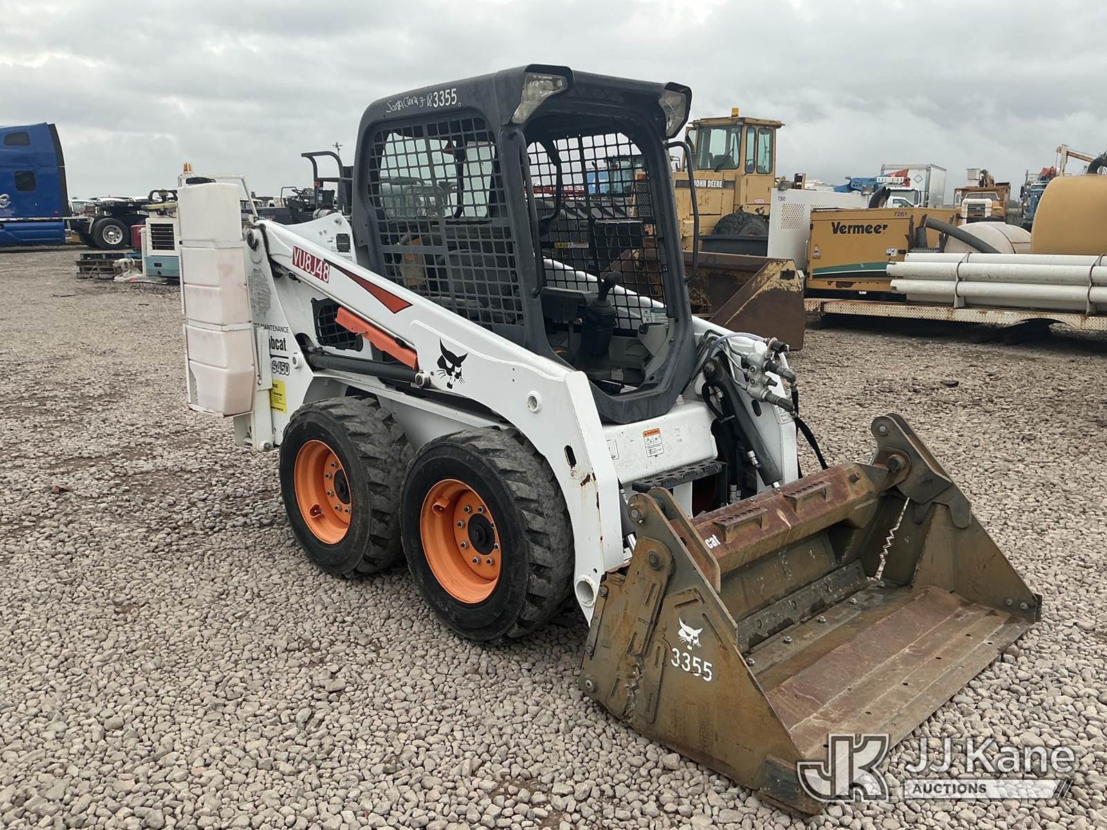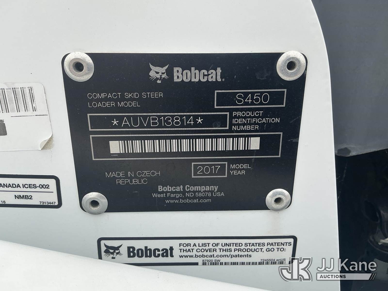2017 Bobcat S450 Solid Tired Skid Steer Loader, s/n AUVB13814, 3-cyl diesel, Hydrostatic, with 4 in 1 bucket & ROPS, (Runs & Operates ) (Reads 182 hours) NOTE: This unit is being sold AS IS/WHERE IS via Timed Auction and is located in Dixon, CA. Inspection & preview days for this unit are the 2 business days prior to the first day of items closing for this auction, item is located at 8668 Sparling Ln Dixon, CA 95620 and hours of operations are 8a-4p. For pre-sale questions, please contact JJ Kane Staff at (707) 678-8060 (dixon@jjkane.com). Dealer License Number 45696. (Buyer is responsible for removal. Assistance by consignor or JJ Kane Auctions is not assured.)