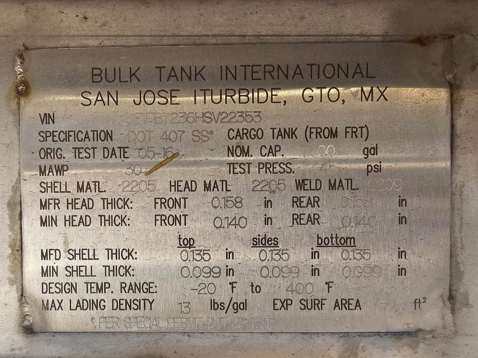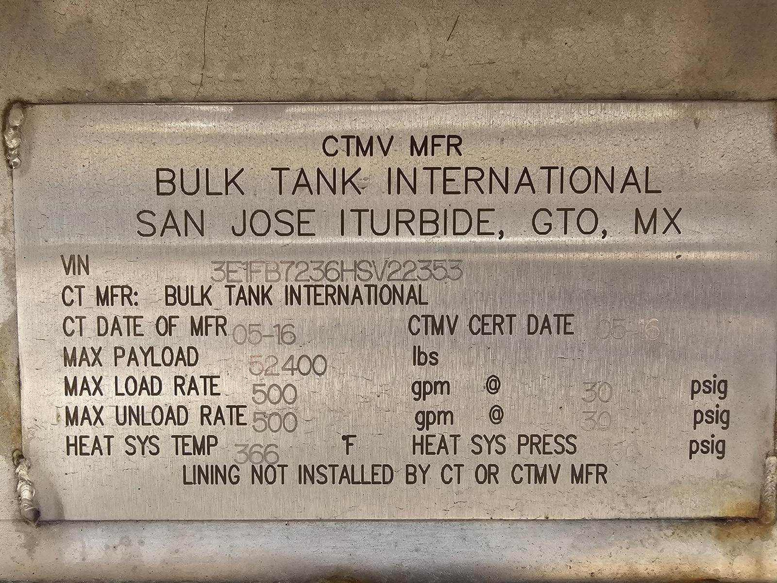 2016 BULK, -DOT 407, -316 STAINLESS STEEL, -7000 GALLON, -STRAIGHT ROUND SMOOTH BORE BARREL, -IN-TRANSIT HEAT, -SINGLE COMPARTMENT, -REAR...