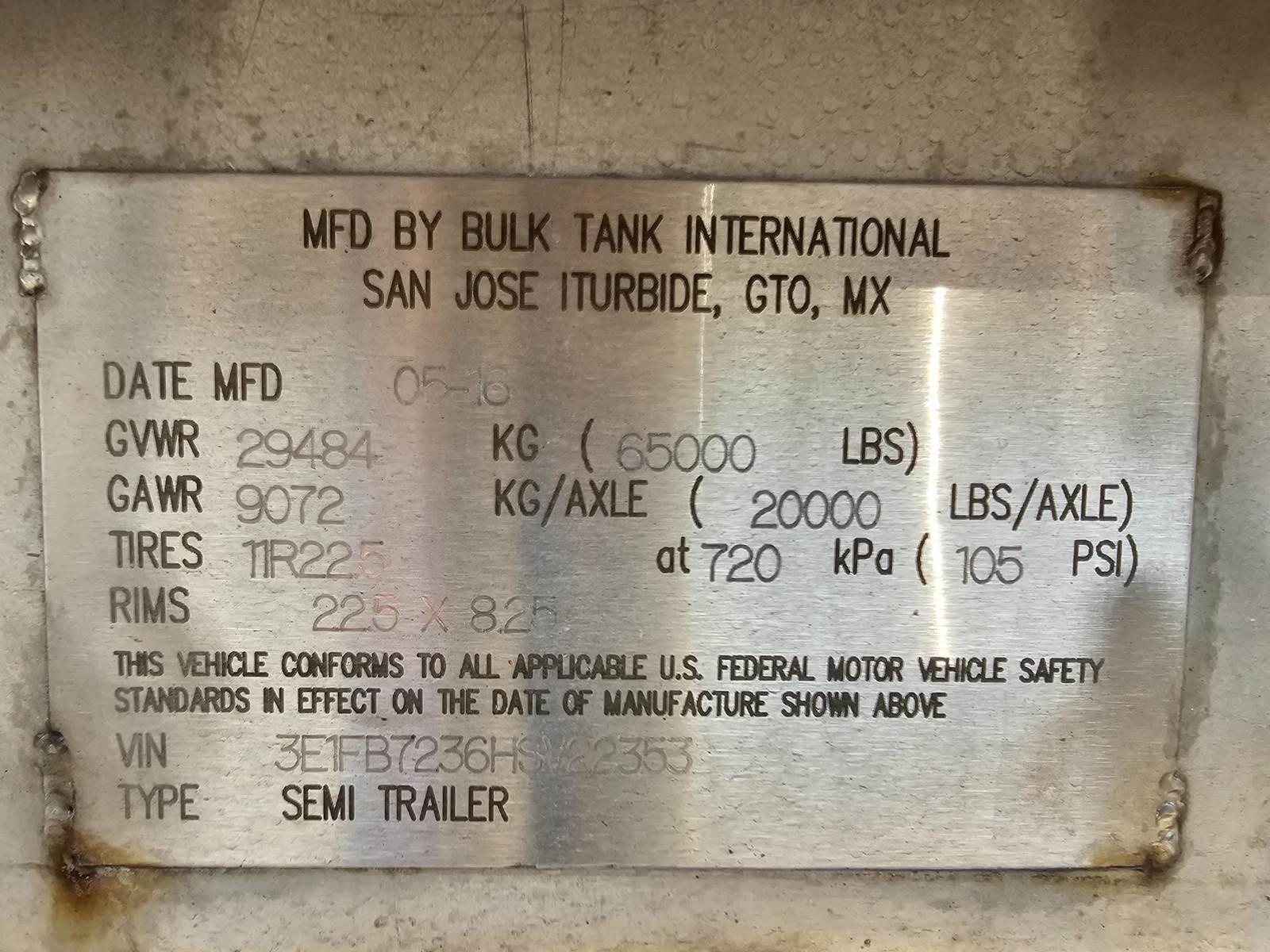 -Chemical Tank Trailer, -7200 Gallon, -1 Compartment, -Spring Ride,