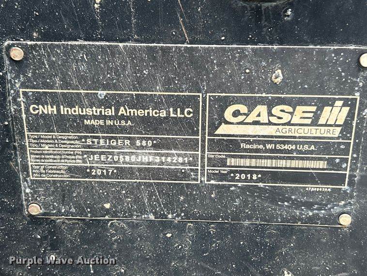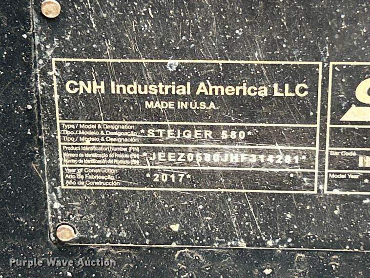2018 Case IH Steiger 540S 4WD tractor, Hours: 4,375 on meter, Serial: JEEZ0540TGF314023, Engine, Case FPT, Displacement: 12.9L, Cylinders:...