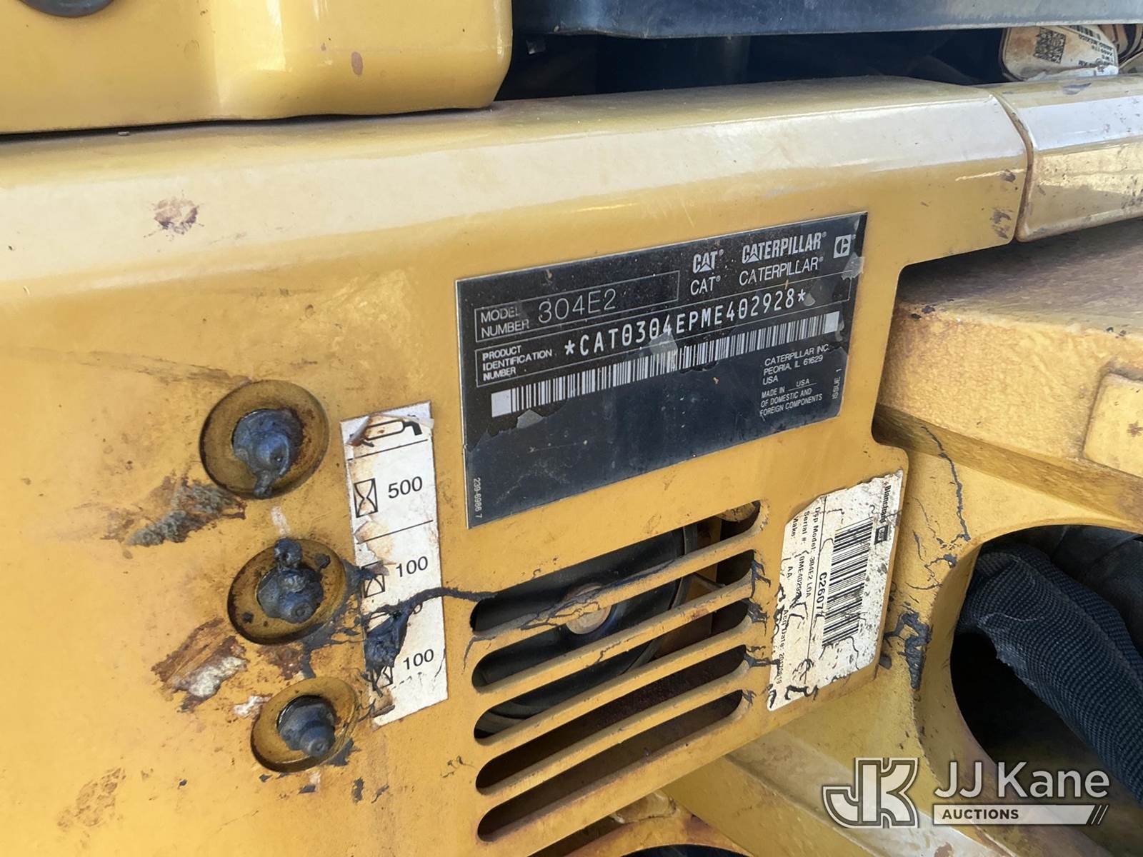 2017 Caterpillar 304E2 Mini Hydraulic Excavator, s/n CAT0304EPME402928, Cat C2.4 Hydrostatic, diesel, with ROPS, four way backfill blade, and 12in digging bucket, (Runs & Operates) (Reads 2,350 hours) NOTE: This unit is being sold AS IS/WHERE IS via Timed Auction and is located in Florence, SC. For more information & removal arrangements please contact Pete Klimek @ 843-323-6538. (Buyer is responsible for removal. Assistance by consignor or JJ Kane Auctioneers is not assured.)