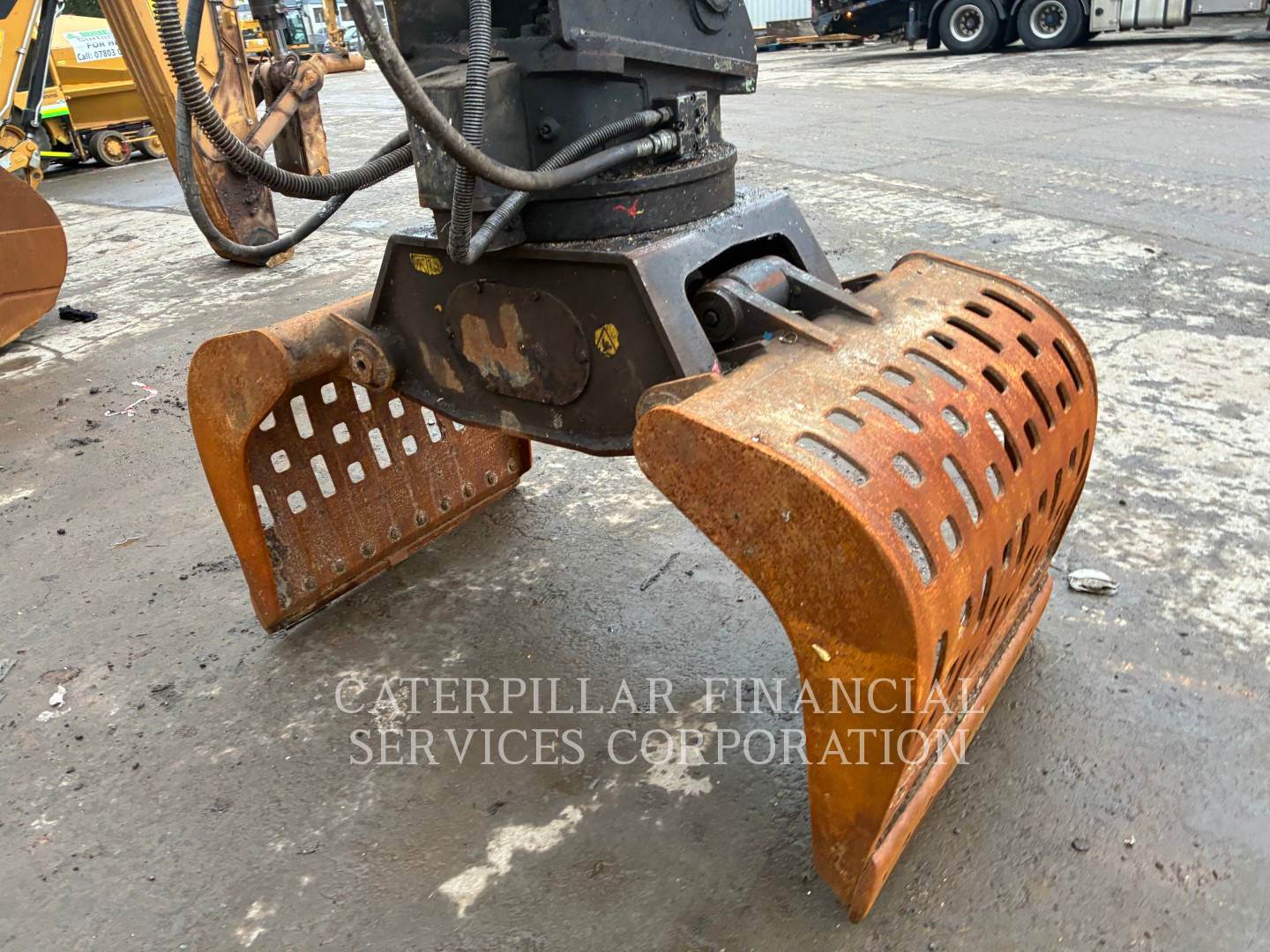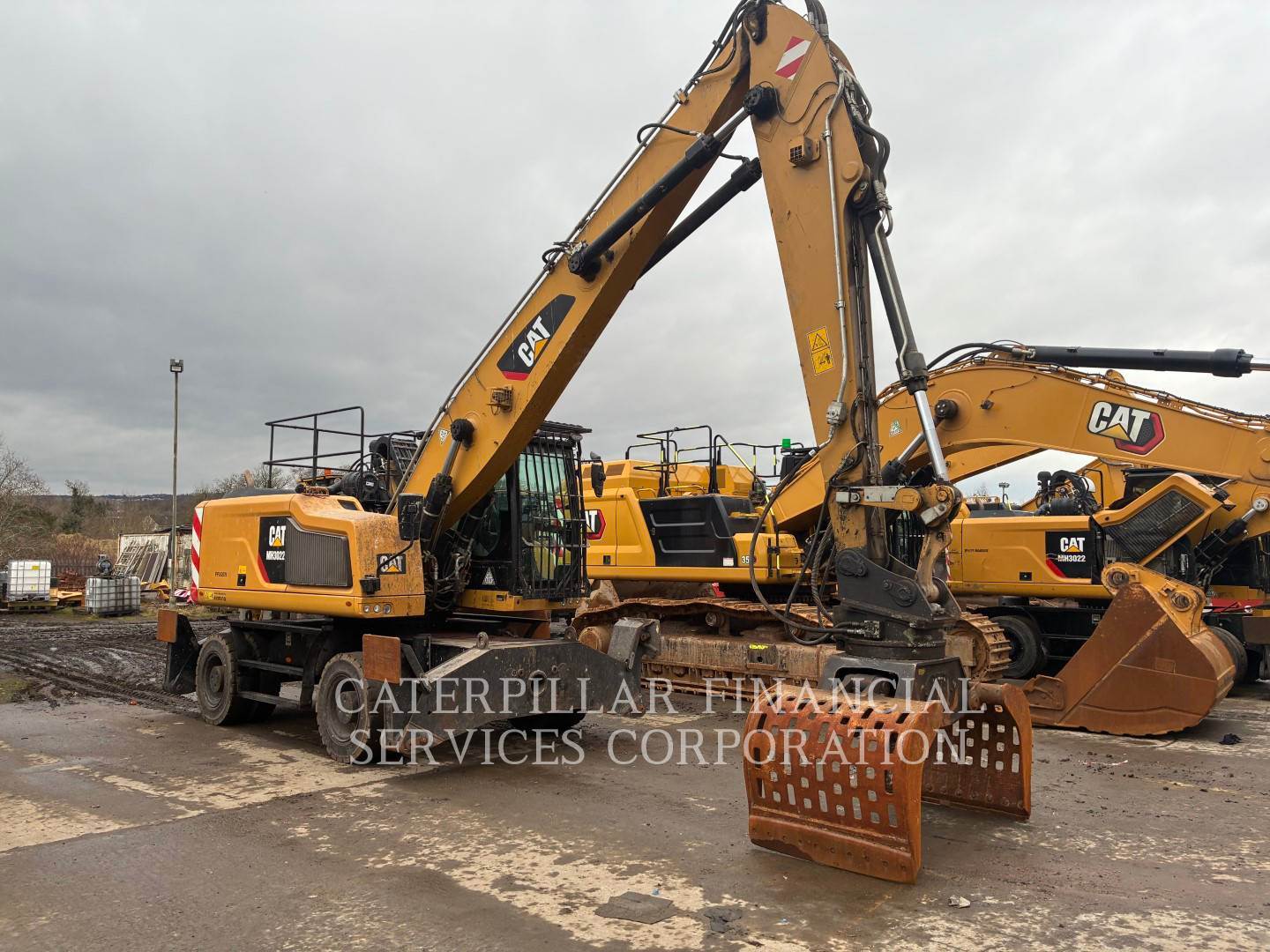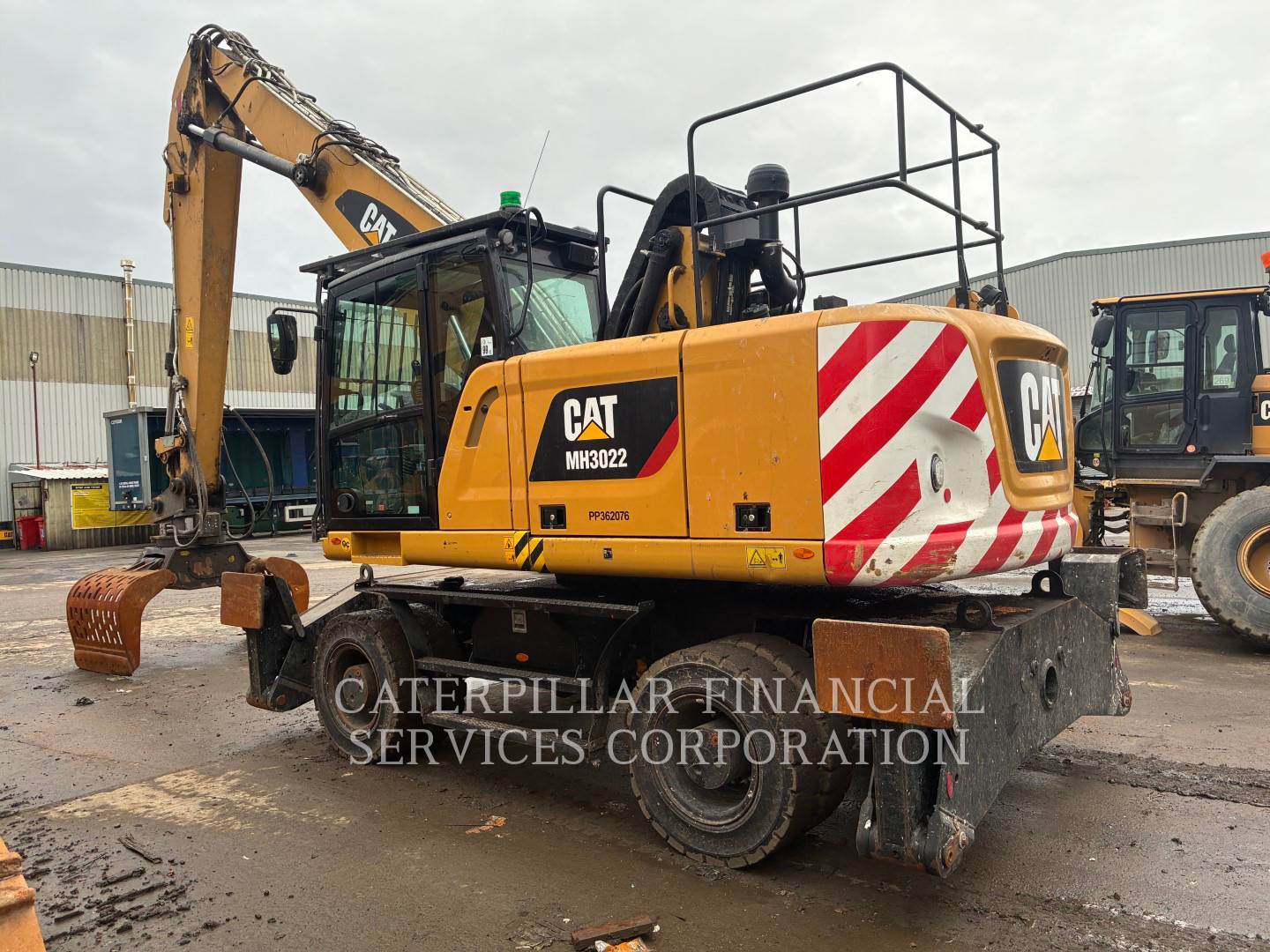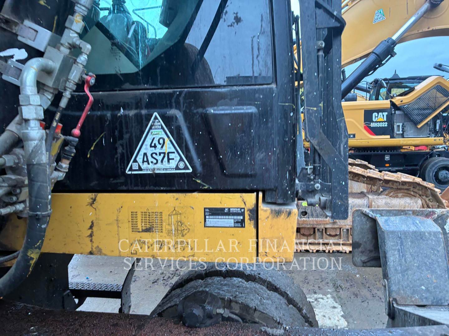 Machine fitted with Cat autolube, G315B grab, Hydraulic high rise cab, 4x stabilizer legs, Datatag, reverse and side camera, amber and green beacons.