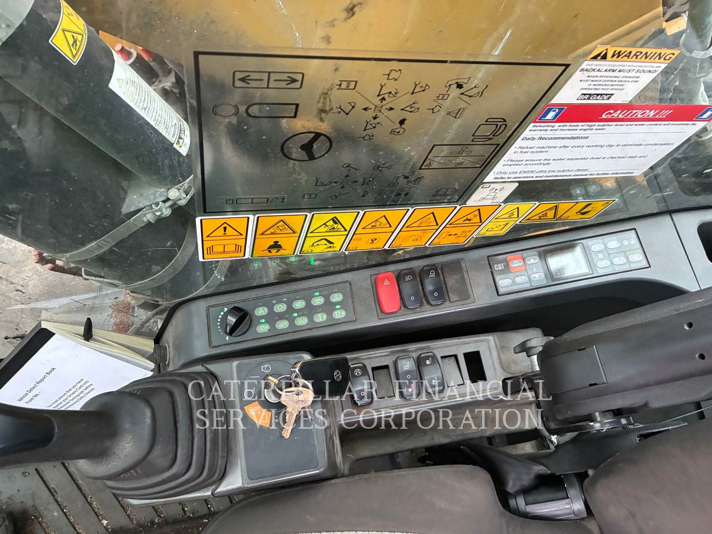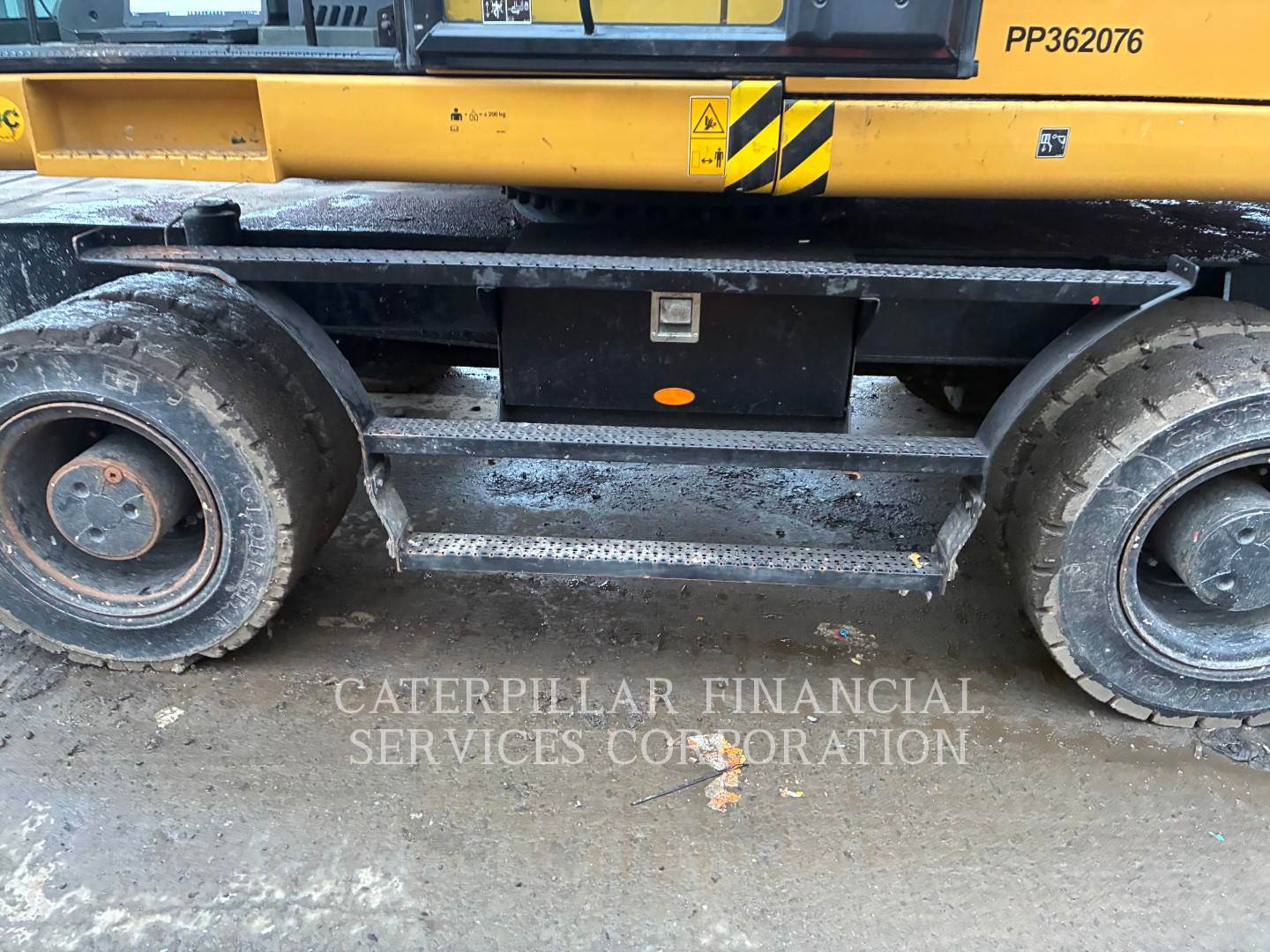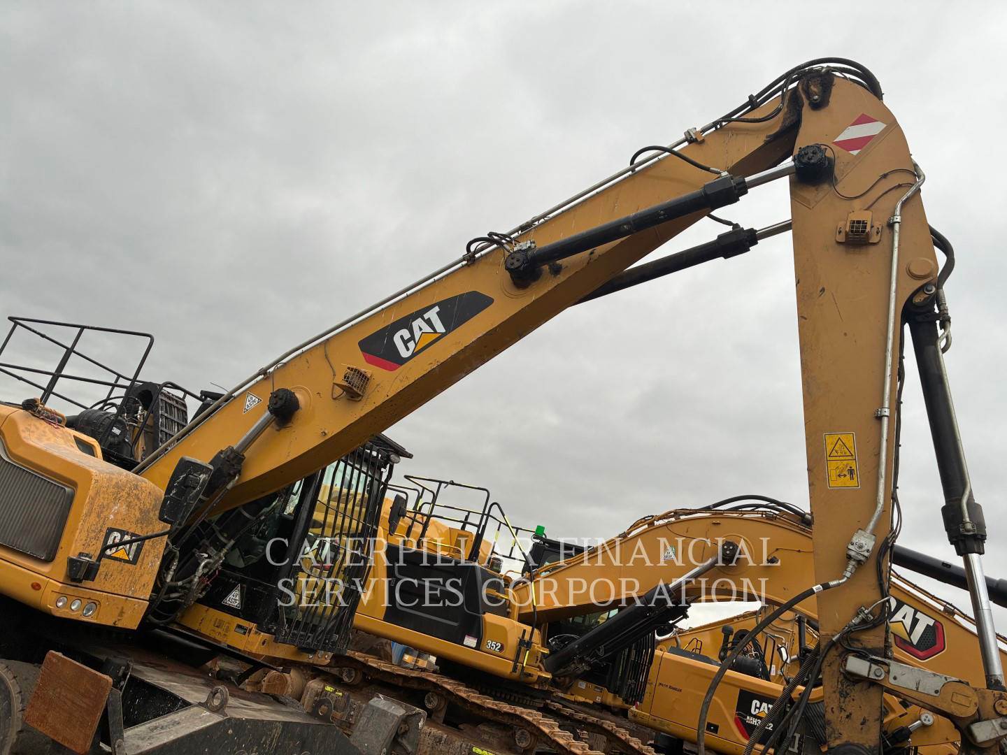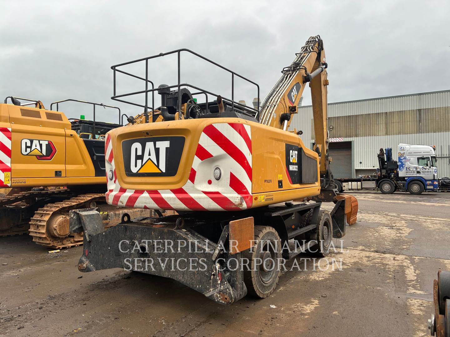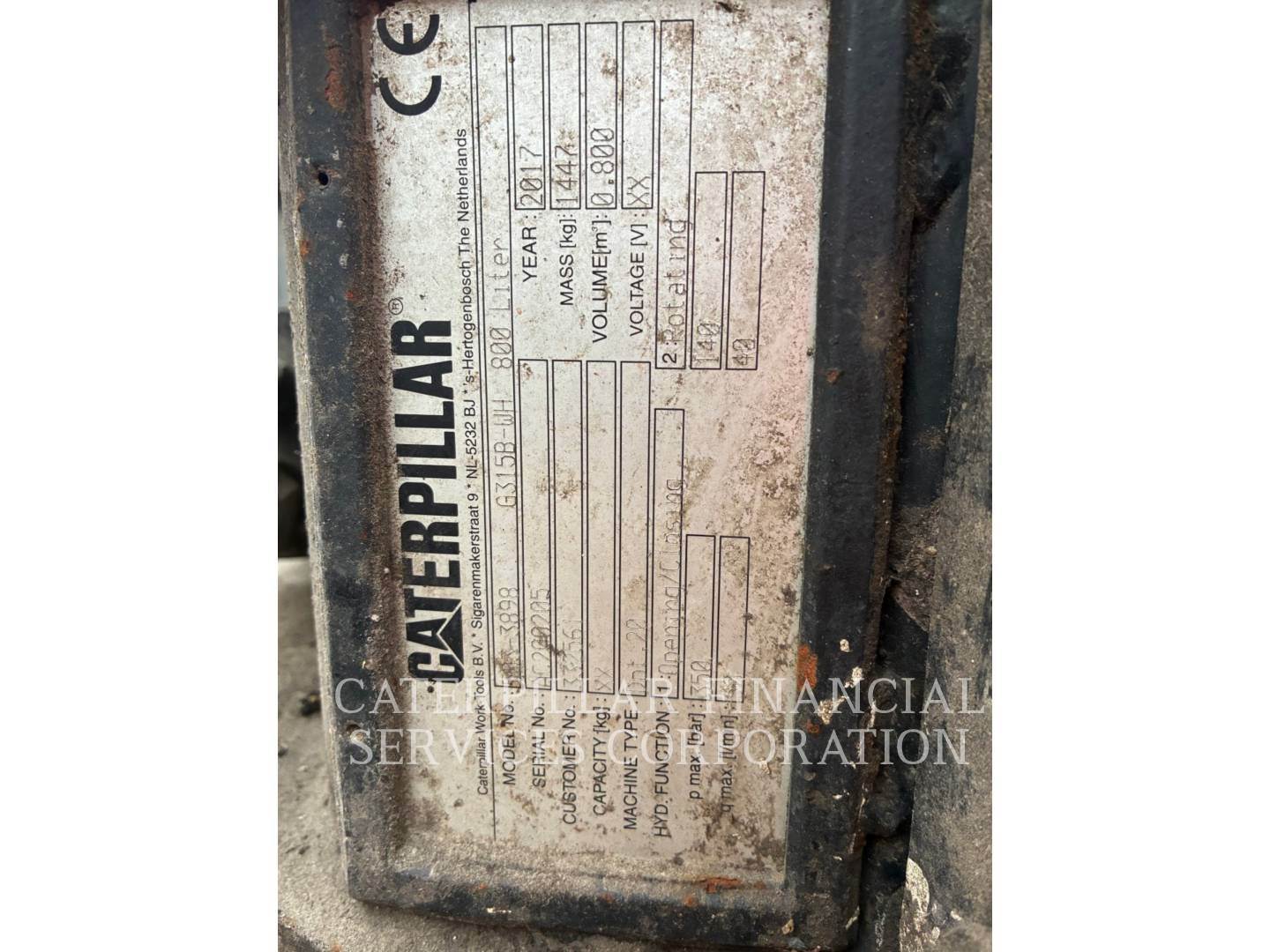 Machine fitted with Cat autolube, G315B grab, Hydraulic high rise cab, 4x stabilizer legs, Datatag, reverse and side camera, amber and green beacons.