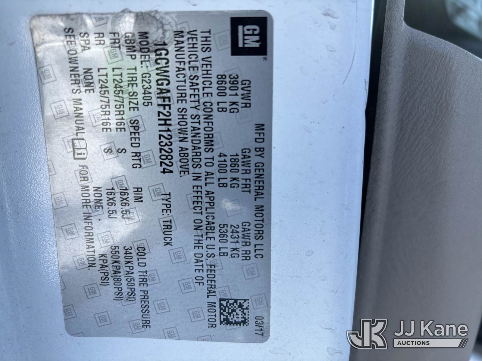 2017 Chevrolet 2500 Cargo Van, 8-cyl gas, 2wd, Auto, A/C, with Ladder Rack & Inverter, True Mileage Unknown (Not Running, Does Not Get Power, Must Tow, Interior Cab Panels Driver Door Unsecured, Dents & Broken Body Panel On Passenger Side, Rust, Seller States: Bad Engine) This is a Titled Item NOTE: This unit is being sold AS IS/WHERE IS via Timed Auction and is located in Plains, PA. Inspection & preview days for this unit are the 2 business days prior to the first day of items closing for this auction, item is located at 250 Laird St Plains, PA 18705 and hours of operations are 8a-4p.For pre-sale questions, please contact Mary Darlington @ (570) 899-4930 or Mary.Darlington@JJKane.com. (Buyer is responsible for removal. Assistance by consignor or JJ Kane Auctions is not assured.)