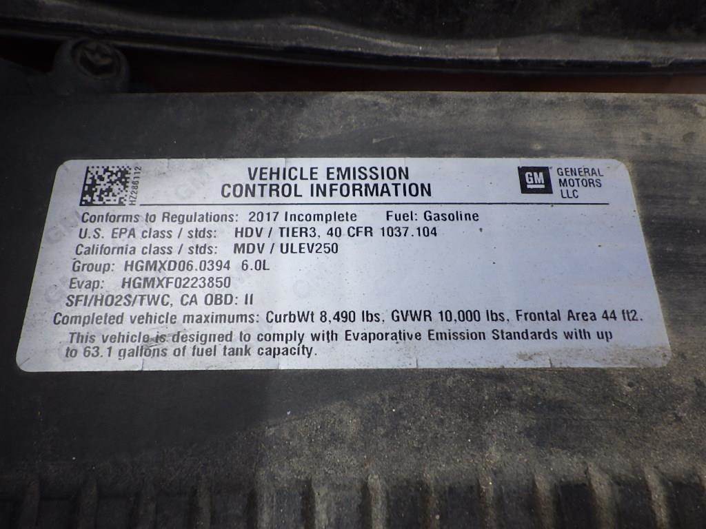 VIN: 1GB0CUEG2HZ286112 6.0L Gas, Automatic, A/C/Heat, AM/FM/Bluetooth, Steering Wheel Audio Controls, Trailer Brake Controller, Back Up Camera, Cruise Control, Power Windows/Locks/Mirrors, Cloth Interior, 8' Utility Bed, Bedliner, Utility Boxes, Lumber Rack, Tow Package, Spring Suspension, 245/75R17 Tires, GVWR 9,300lbs, Odometer Reading: 108,178 Disclaimer: Mileage and hours are visually observed and not verified.
