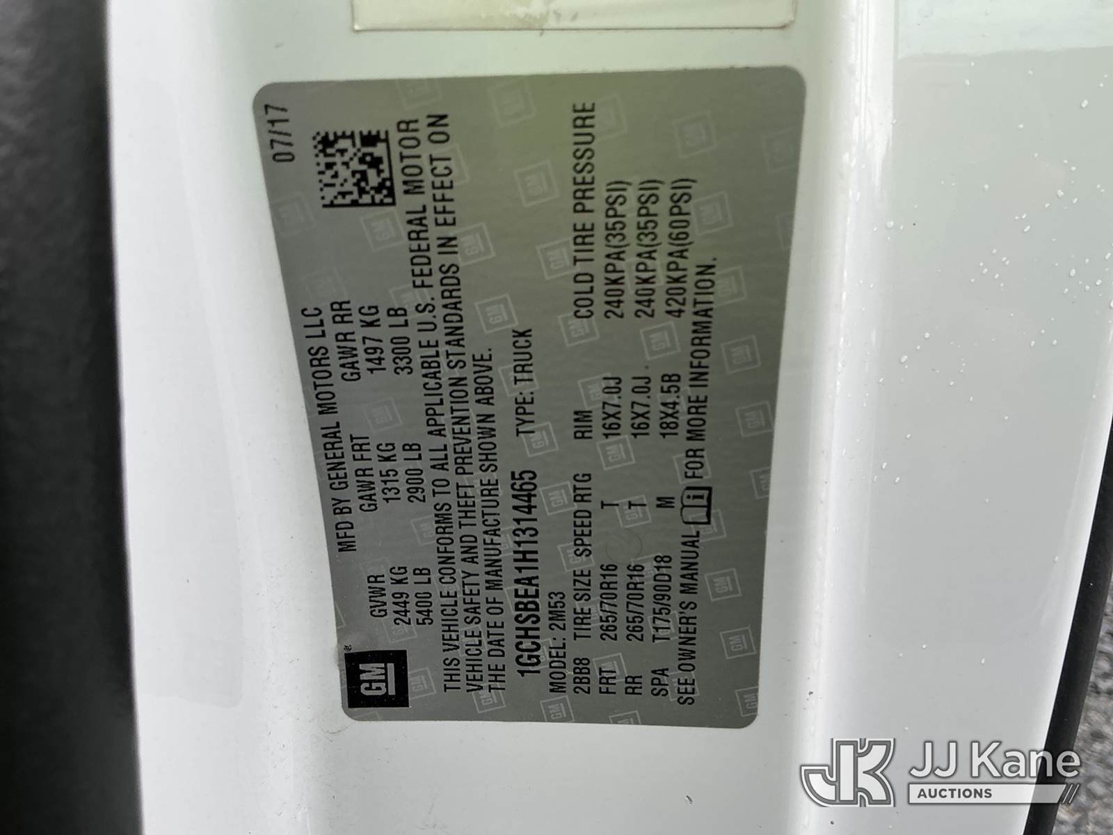 2017 Chevrolet Colorado Extended-Cab Pickup Truck, 4-cyl gas, Auto, A/C, (134,185 miles) (Runs & Moves ) This is a Titled Item NOTE: This unit is being sold AS IS/WHERE IS via Timed Auction and is located in China Grove, NC. Inspection & preview days for this unit are the 2 business days prior to the first day of items closing for this auction, item is located at 820 E NC Hwy 152 China Grove, NC 28023 and hours of operations are 8a-4p. For pre-sale questions, please contact Office Staff @ (704) 674-1113. (Buyer is responsible for removal. Assistance by consignor or JJ Kane Auctions is not assured.)