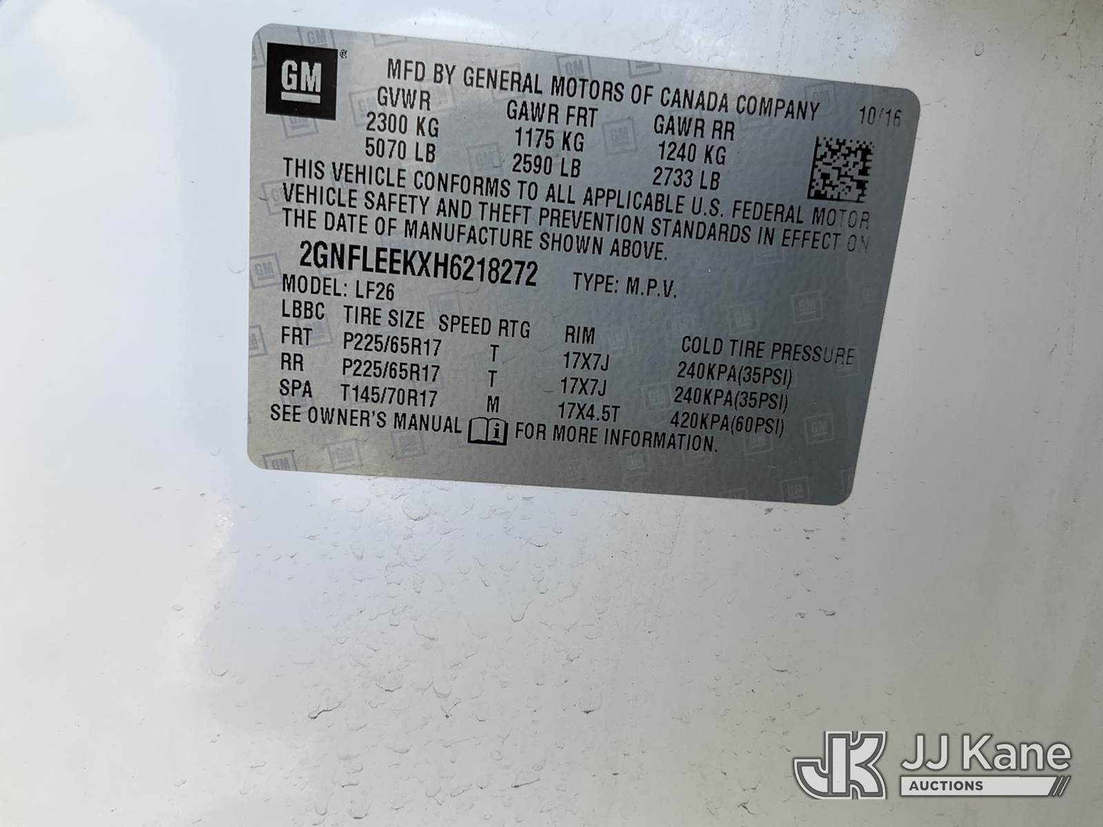 2017 Chevrolet Equinox AWD 4-Door Sport Utility Vehicle, 4-cyl gas, Auto, A/C, (77,008 miles) (Runs & Moves) This is a Titled Item NOTE: This unit is being sold AS IS/WHERE IS via Timed Auction and is located in Salt Lake City, UT. Inspection & preview days for this unit are the 2 business days prior to the first day of items closing for this auction, item is located at 2353 N Redwood Rd Salt Lake City, UT 84116 and hours of operations are 8a-4p. Titles executed exactly as bidder registered. Ensure your name and/or business name and address in JJ Kane and/or ProxiBid is correct before bidding. For pre-sale questions, please contact Office Staff @ (801) 519-0123. (Buyer is responsible for removal. Assistance by consignor or JJ Kane Auctions is not assured.)