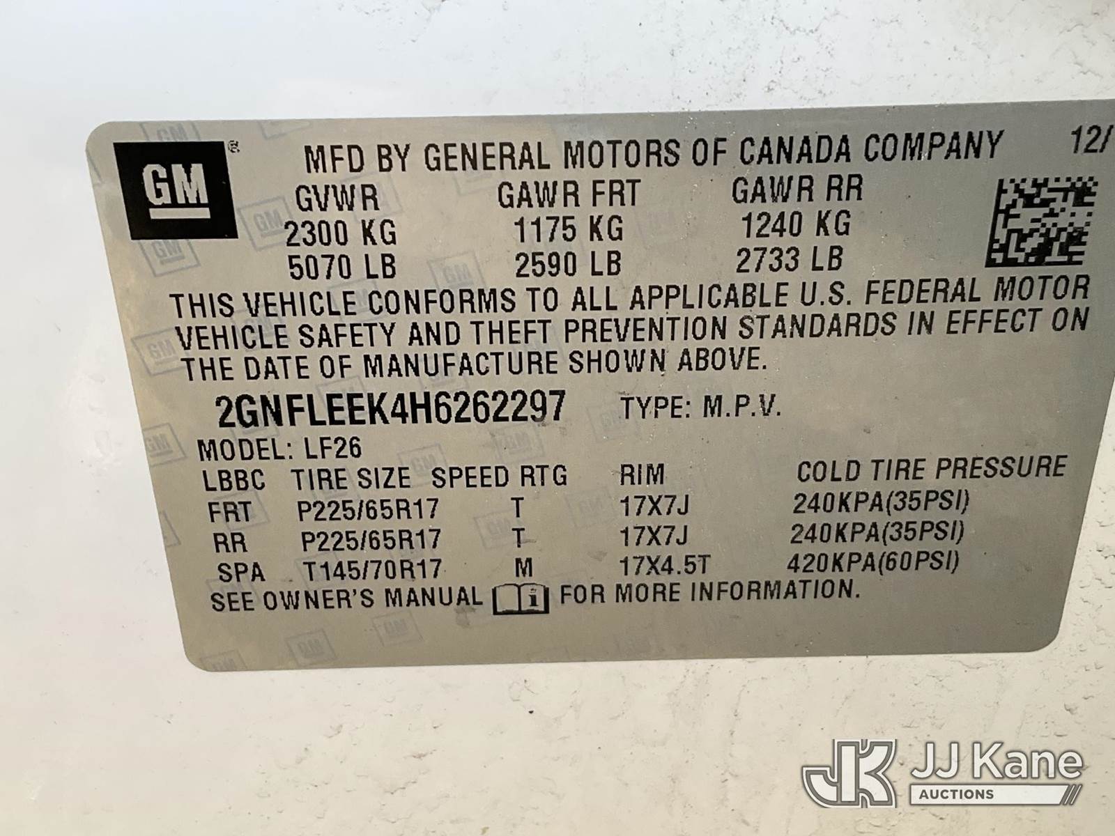2017 Chevrolet Equinox LS AWD 4-Door Sport Utility Vehicle, 2.4L L4 DOHC 16V FFV Gas, Auto, A/C, (157,967 miles) (Runs, Jump To Start, Moves, Bad Exhaust, Minor Body/Rust Damage) (Removal is by Appointment Only, Buyer MUST make a appointment prior to picking up, Buyer/Transporter Must have PAID IN FULL RELEASE. No onsite assistance available, Please Come prepared.) This is a Titled Item NOTE: This unit is being sold AS IS/WHERE IS via Timed Auction and is located in Wells, ME. Inspection & preview days for this unit are by appointment only; please contact us at contact@jjkane.com or 84-Go-JJKane for more details. (Buyer is responsible for removal. Assistance by consignor or JJ Kane Auctions is not assured.)