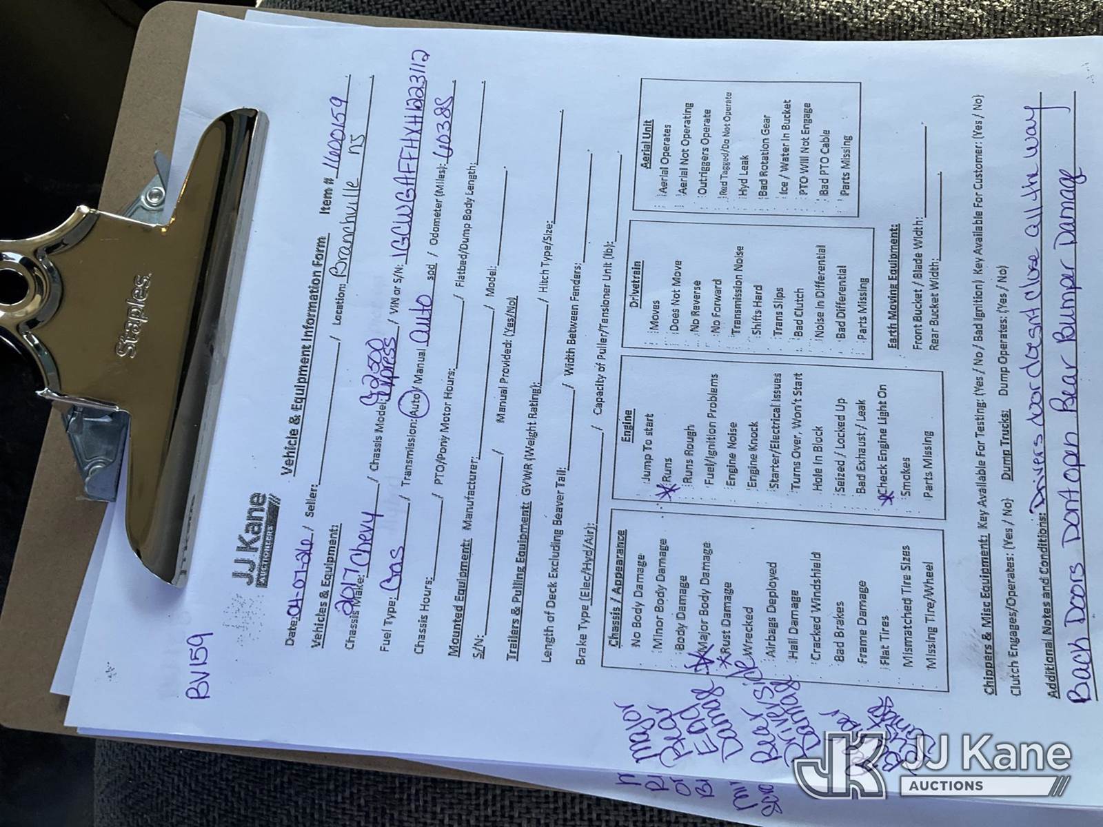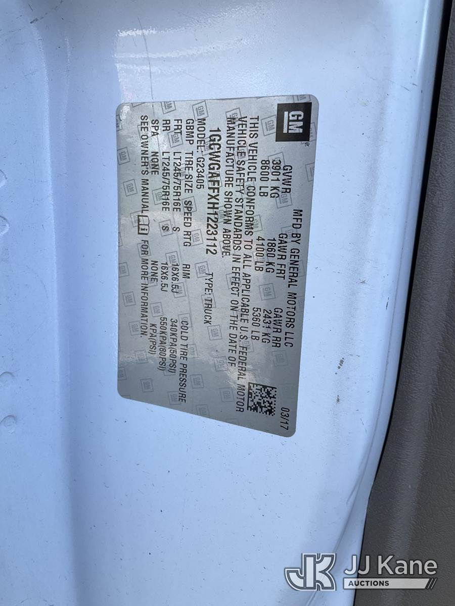 2017 Chevrolet Express G2500 Cargo Van, 8-cyl gas, Auto, A/C, (60,388 miles) (Runs & Moves, MAJOR Damage to Back, Engine Light On) (Removal is by Appointment Only, Buyer MUST make a appointment prior to picking up, Buyer/Transporter Must have PAID IN FULL RELEASE. No onsite assistance available, Please Come prepared.) This is a Titled Item NOTE: This unit is being sold AS IS/WHERE IS via Timed Auction and is located in Branchville, NJ. Inspection & preview days for this unit are by appointment only; please contact us at contact@jjkane.com or 84-Go-JJKane for more details. For pre-sale questions, please contact the on-site office @ (973) 948-2026 or wtrbranchville@gmail.com. (Buyer is responsible for removal. Assistance by consignor or JJ Kane Auctions is not assured.)