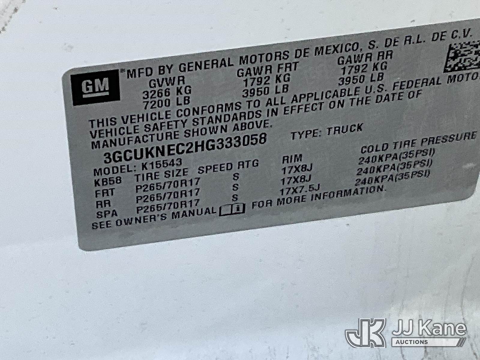 2017 Chevrolet Silverado 1500 4x4 Crew-Cab Pickup Truck, 8-cyl gas, Auto, A/C, with bed cover & bed slide, (131,725 miles) (Runs & Moves) This is a Titled Item NOTE: This unit is being sold AS IS/WHERE IS via Timed Auction and is located in Salt Lake City, UT. Inspection & preview days for this unit are the 2 business days prior to the first day of items closing for this auction, item is located at 2353 N Redwood Rd Salt Lake City, UT 84116 and hours of operations are 8a-4p. Titles executed exactly as bidder registered. Ensure your name and/or business name and address in JJ Kane and/or ProxiBid is correct before bidding. For pre-sale questions, please contact Office Staff @ (801) 519-0123. (Buyer is responsible for removal. Assistance by consignor or JJ Kane Auctions is not assured.)