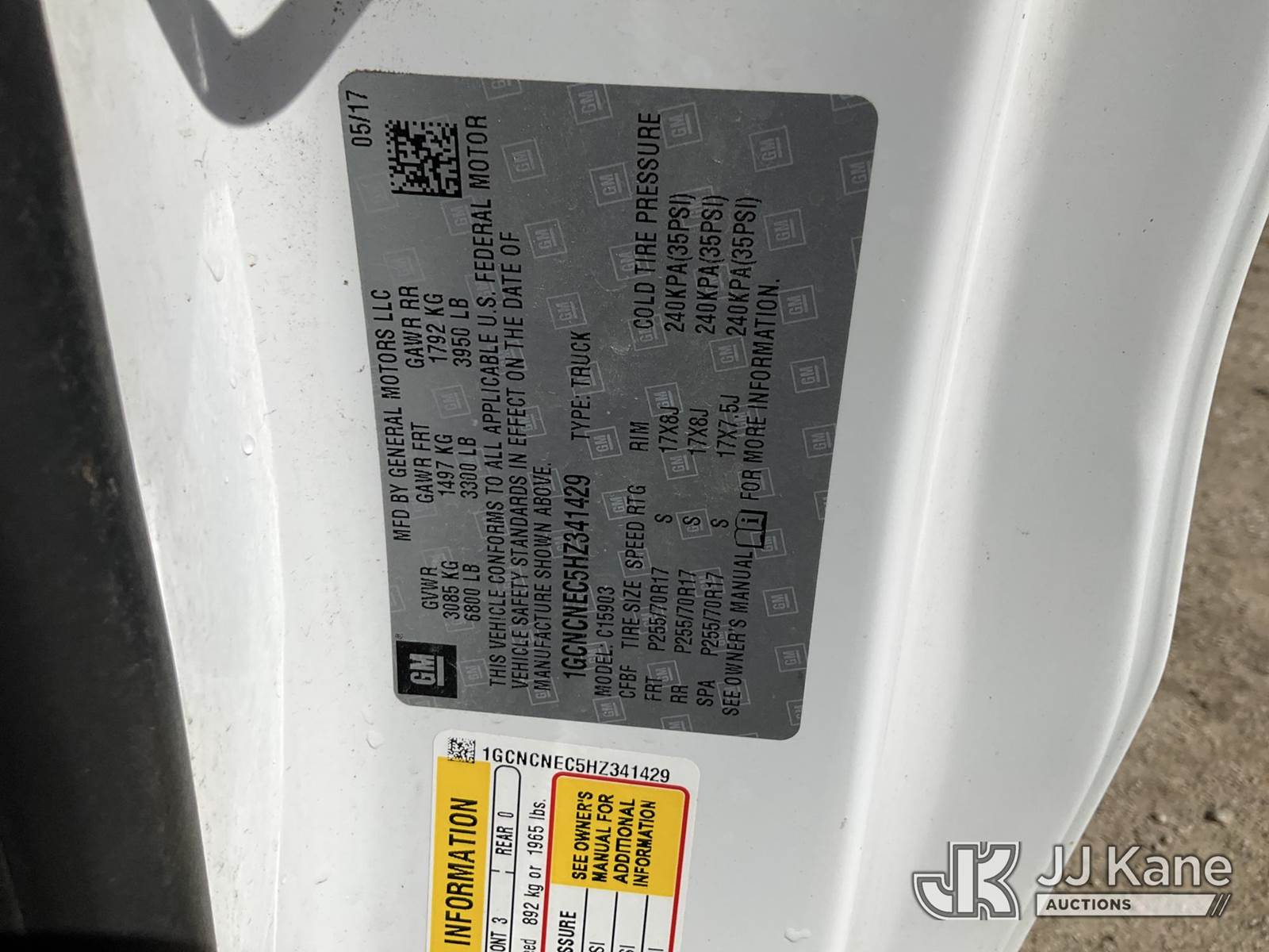 2017 Chevrolet Silverado 1500 Pickup Truck, 8-cyl gas, RWD, 6-Speed Automatic, A/C, (114,205 miles) (Runs & Moves) (Seller States: Transmission Issues Starting, Passenger Mirror missing) This is a Titled Item NOTE: This unit is being sold AS IS/WHERE IS via Timed Auction and is located in Des Moines, IA. Inspection & preview days for this unit are the 2 business days prior to the first day of items closing for this auction, item is located at 1600 NE 66th Ave Des Moines, IA 50313 and hours of operations are 8a-4p. For pre-sale questions, please contact Eric Stewart @ (515) 626-0492. (Buyer is responsible for removal. Assistance by consignor or JJ Kane Auctions is not assured.)