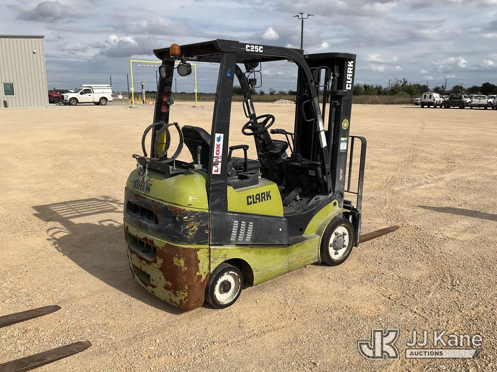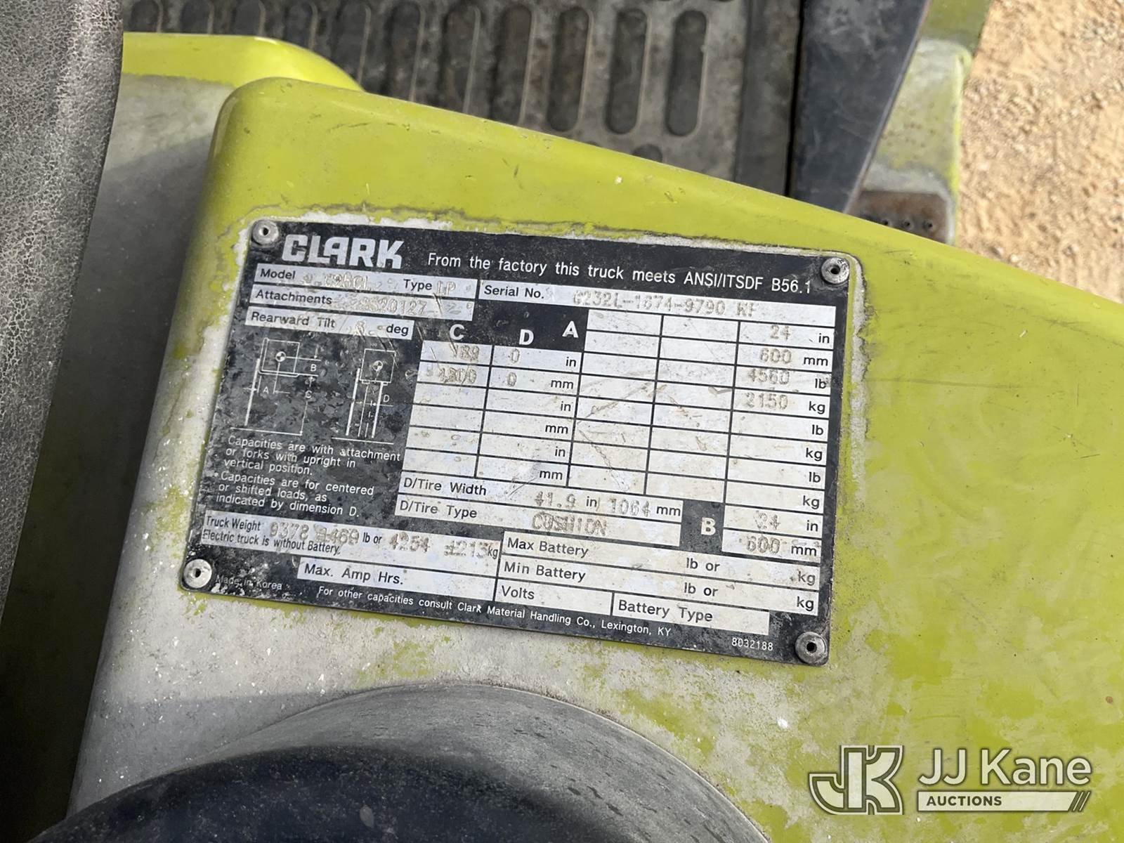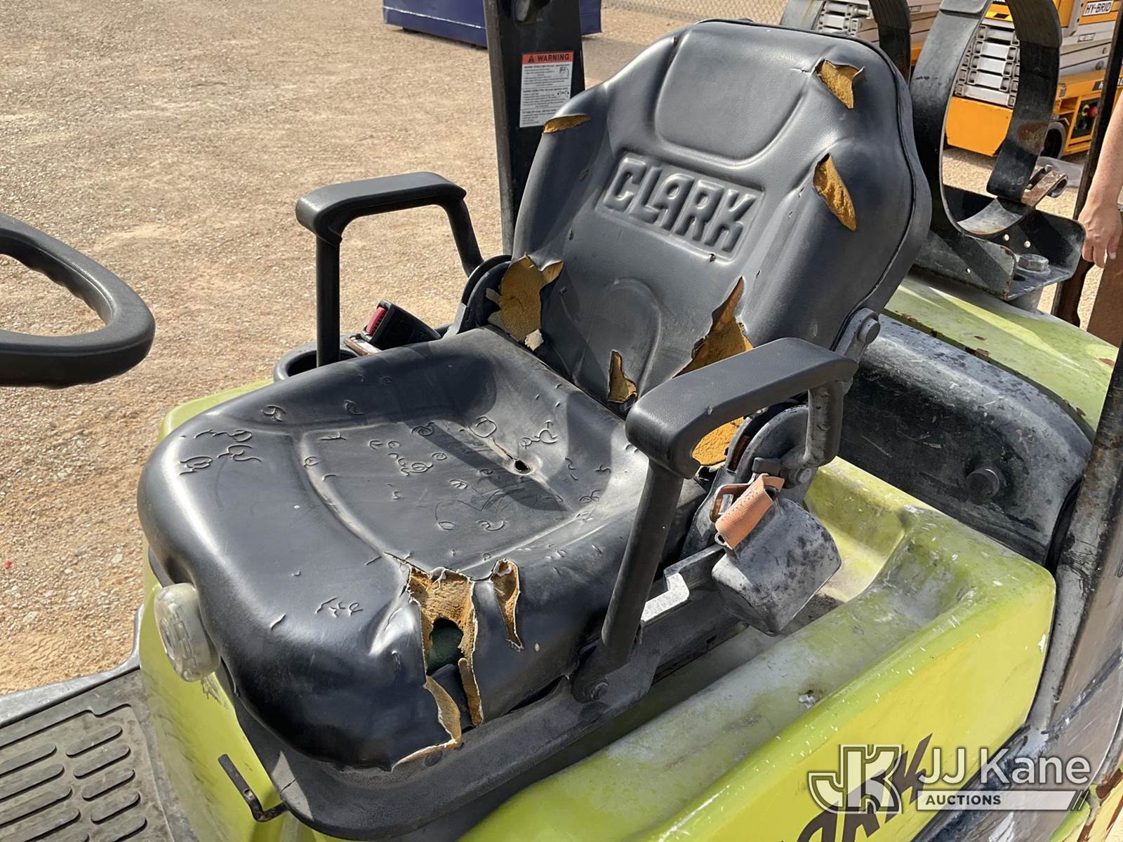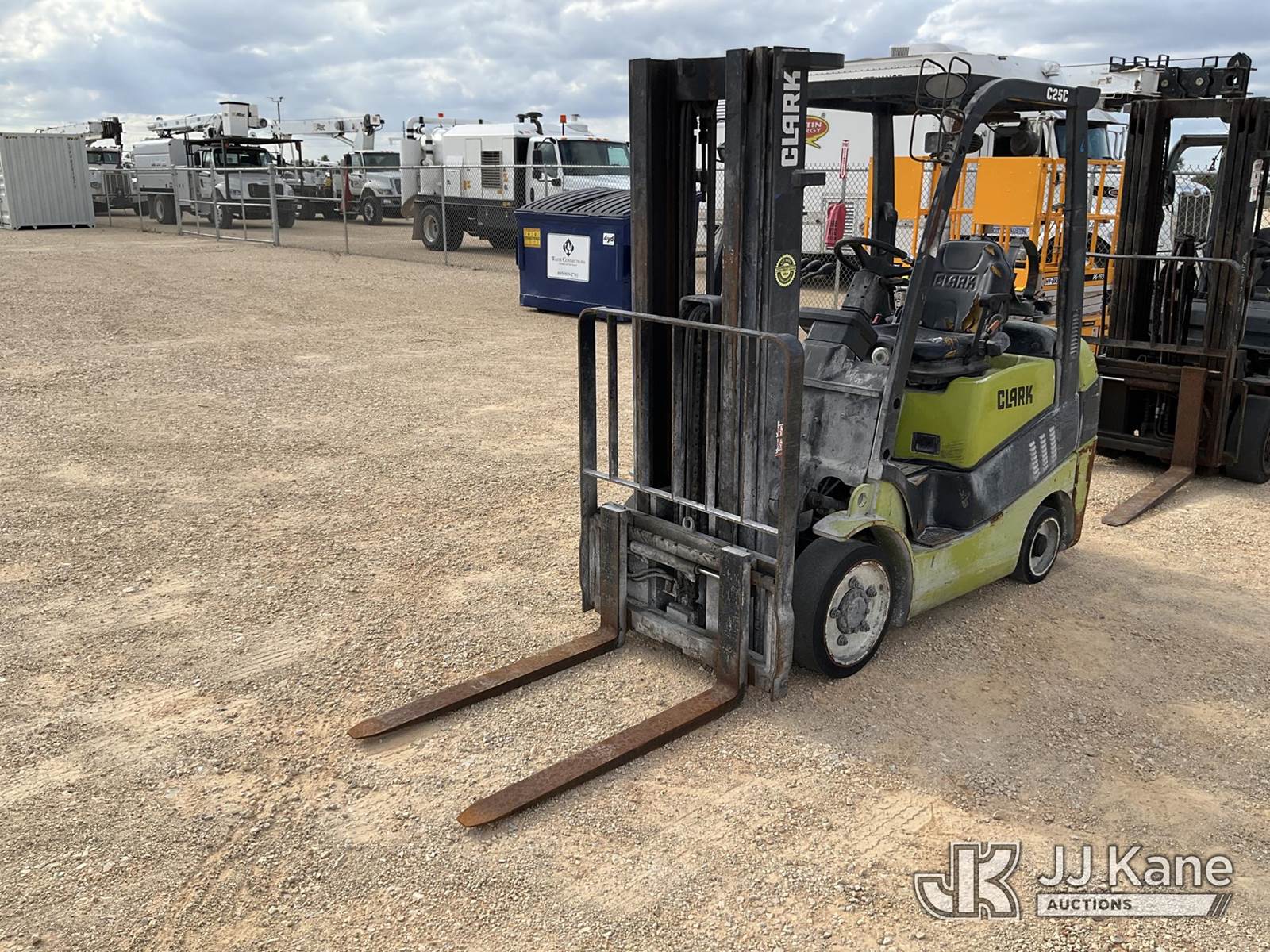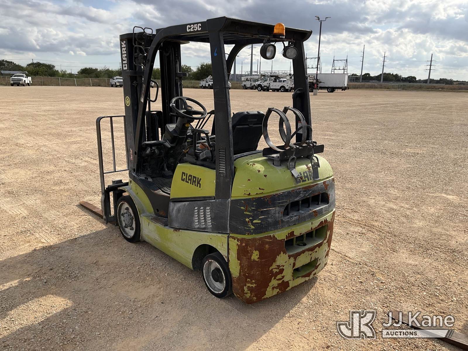 2017 Clark C25CL Cushion Tired Forklift, s/n C23L16949790KF, 2.4L Shuttle, LPG, with 4560lbs capacity, 189in fork height, (Not Running, Condition Unknown, No Key, No Propane/Fuel Source, Paint/Rust Damage) NOTE: This unit is being sold AS IS/WHERE IS via Timed Auction and is located in Marion, TX. Inspection & preview days for this unit are the 2 business days prior to the first day of items closing for this auction, item is located at 3292 S Santa Clara Rd Marion, TX 78124 and hours of operations are 8a-4p. For pre-sale questions, please contact Brian Jarrell @ 210-540-3147. (Buyer is responsible for removal. Assistance by consignor or JJ Kane Auctioneers is not assured.)