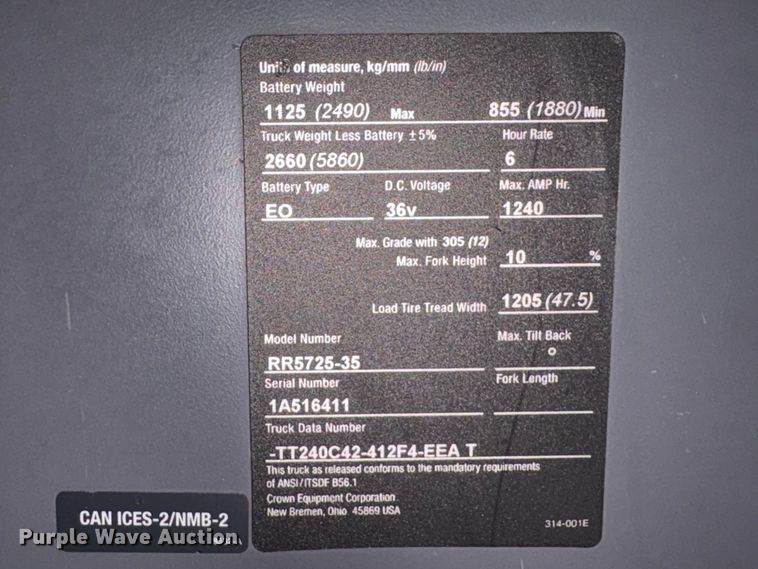 2017 Crown RR5725-35 reach truck