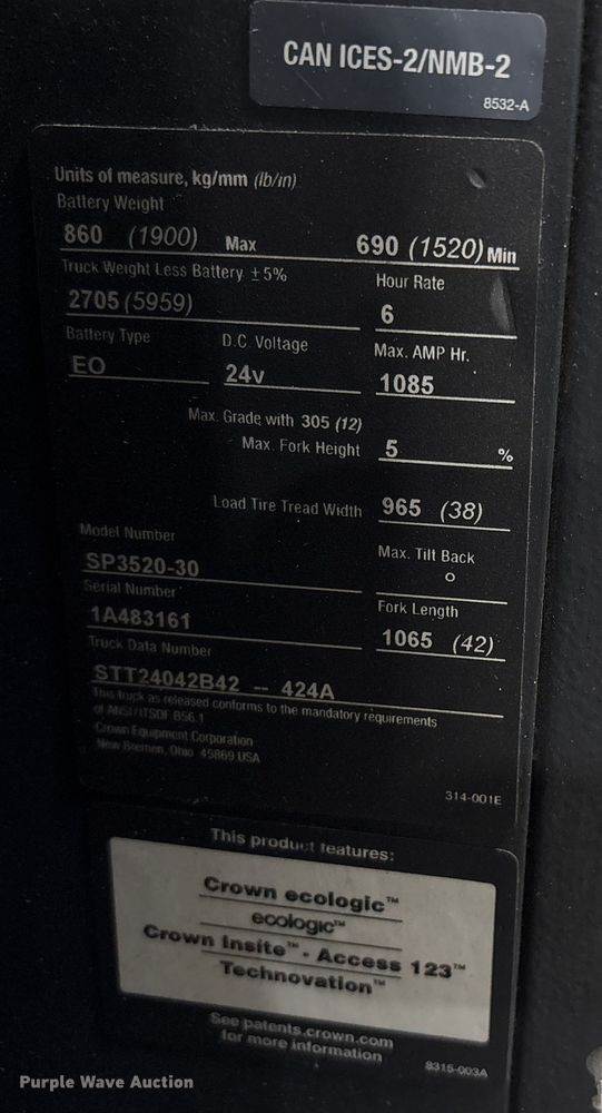 2017 Crown SP3500-30 order picker