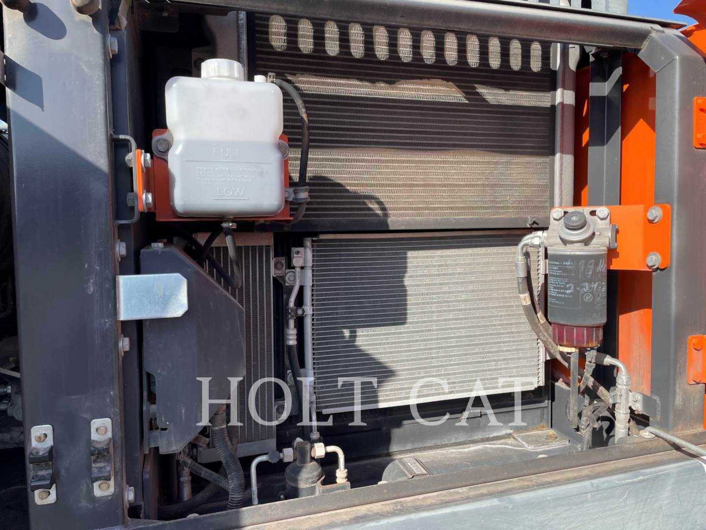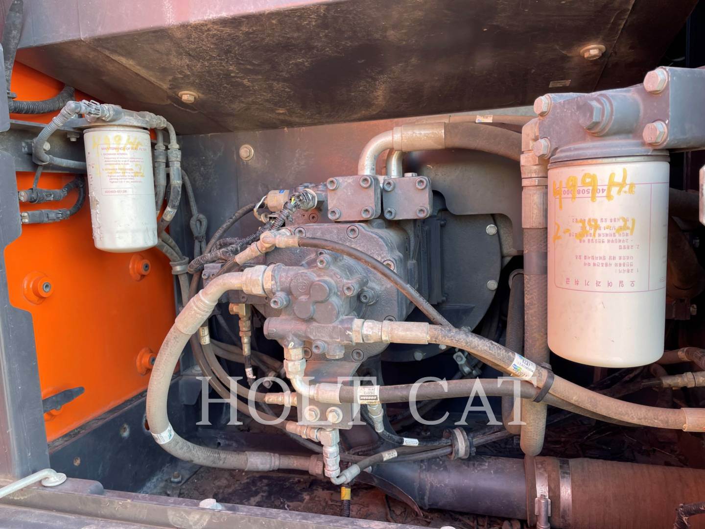 UNDERCARRIAGE IS GOOD, LOOKS TO HAVE EVEN WEAR ON BOTH SIDES, 25% WORN?